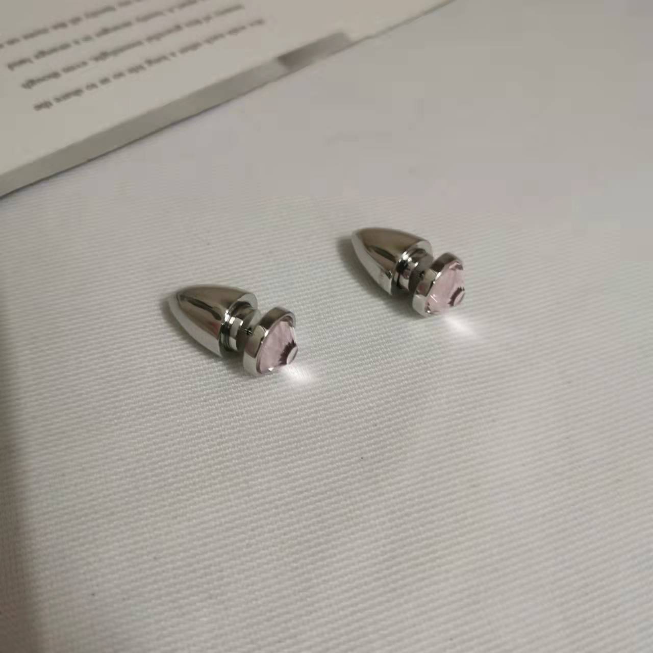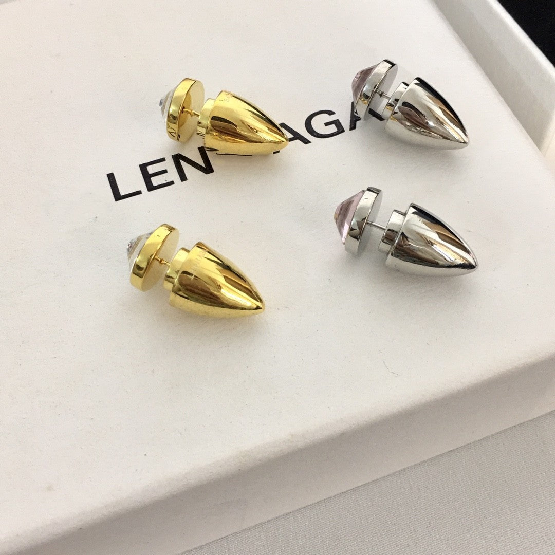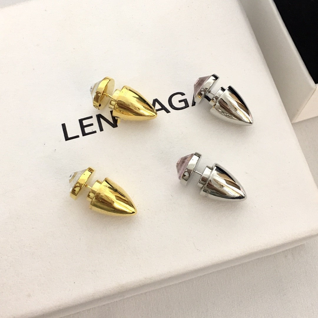 B家21新款水晶子弹耳钉女高级感气质个性INS风几何形光面镶钻耳环
