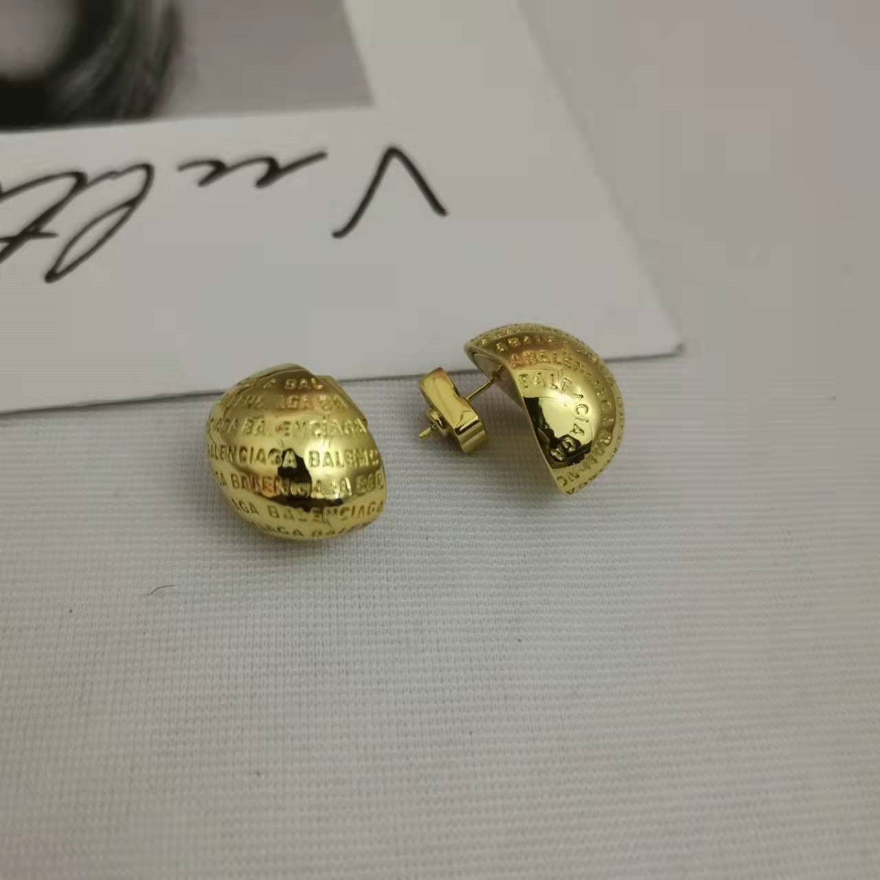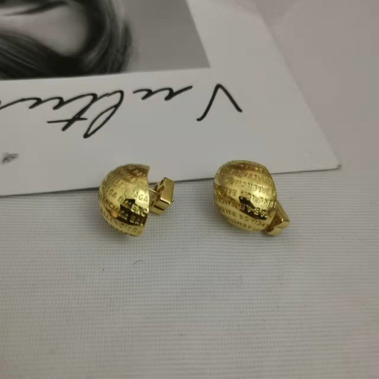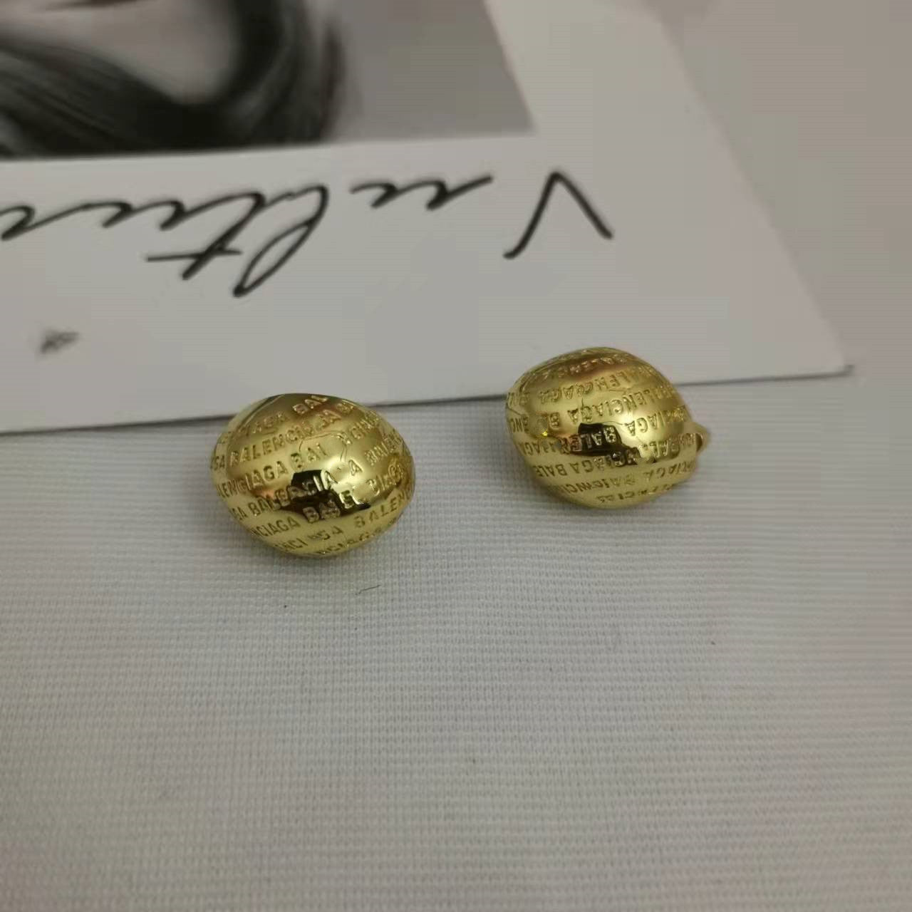 B家21新款蛋形字母耳钉女高级感气质港风镀金几何形光身圆球耳环