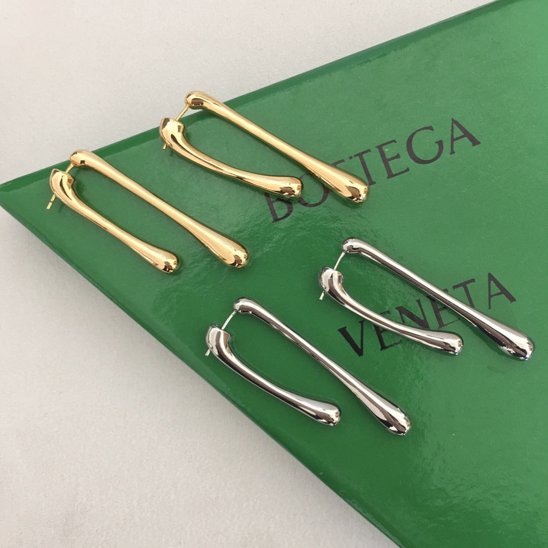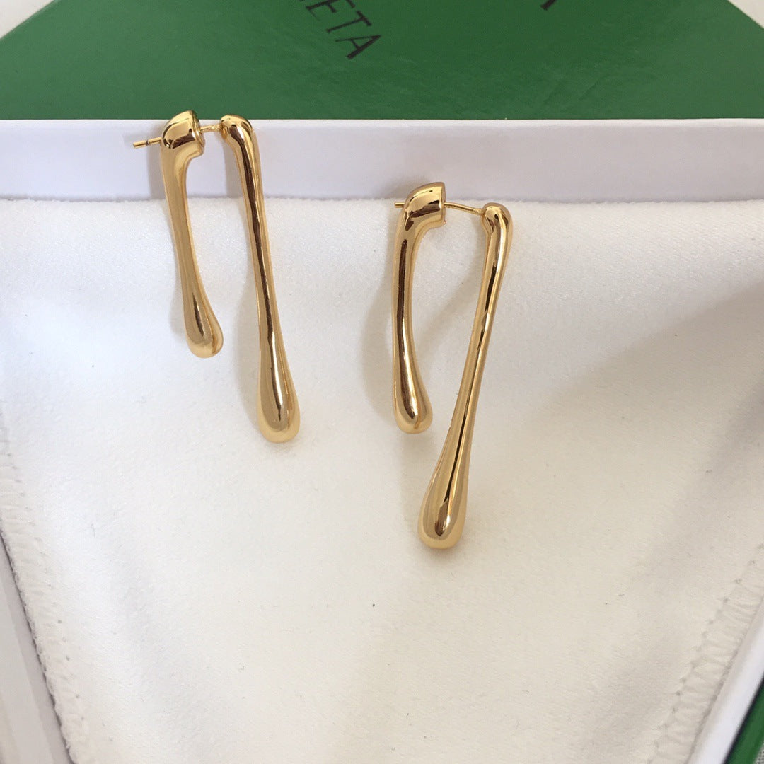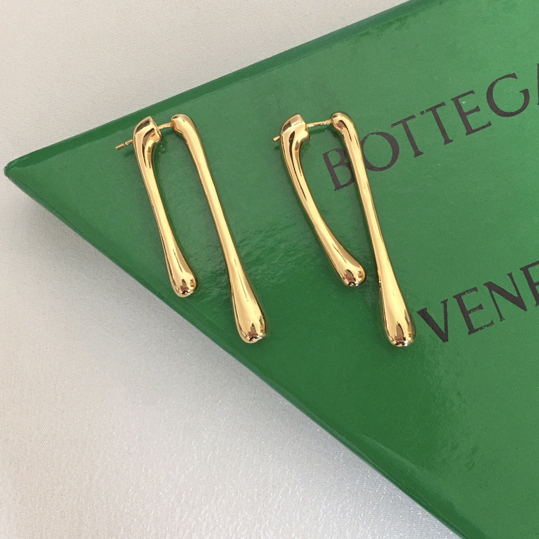 BV风22新款条形耳钉女个性高级感气质港风黄铜镀金长款几何耳环
