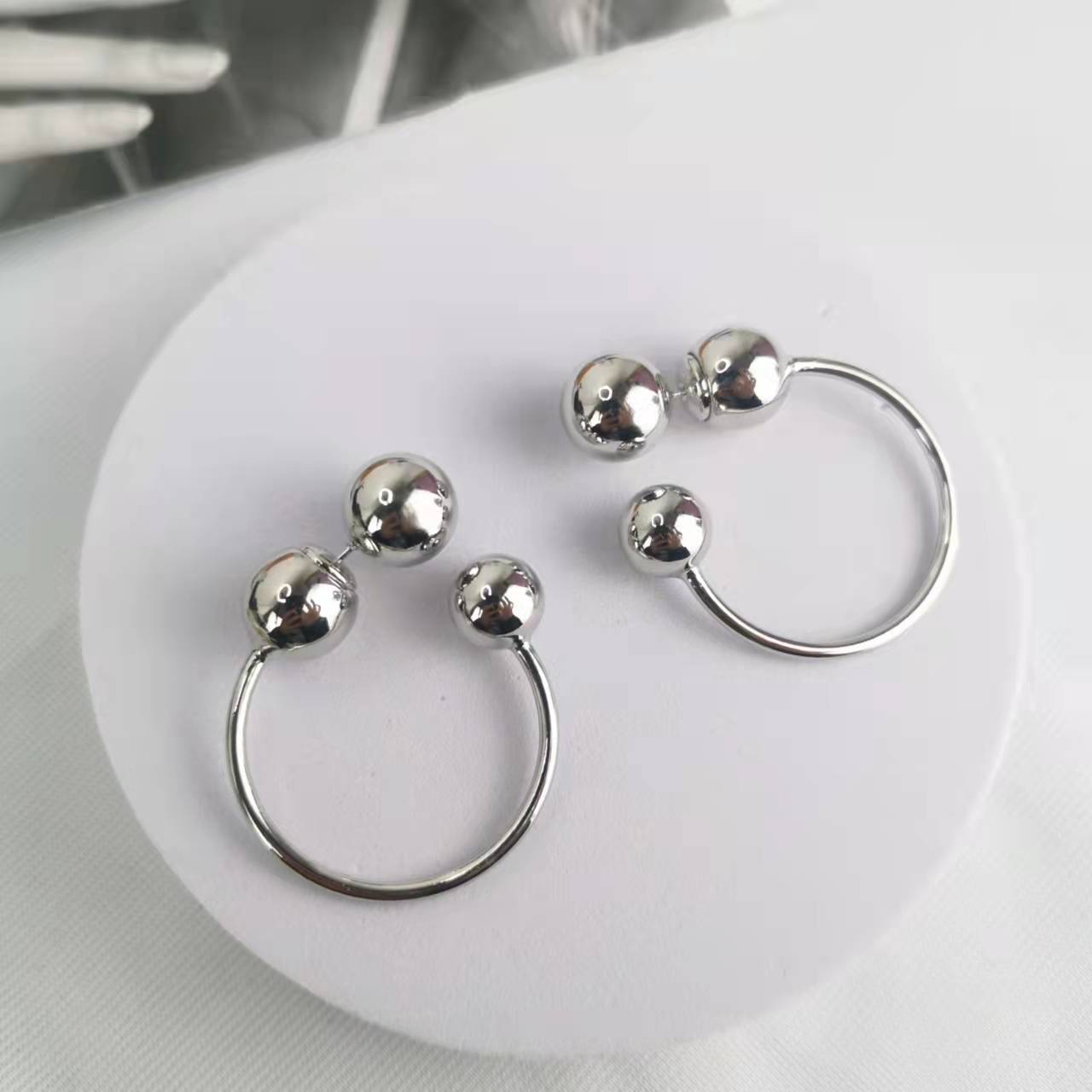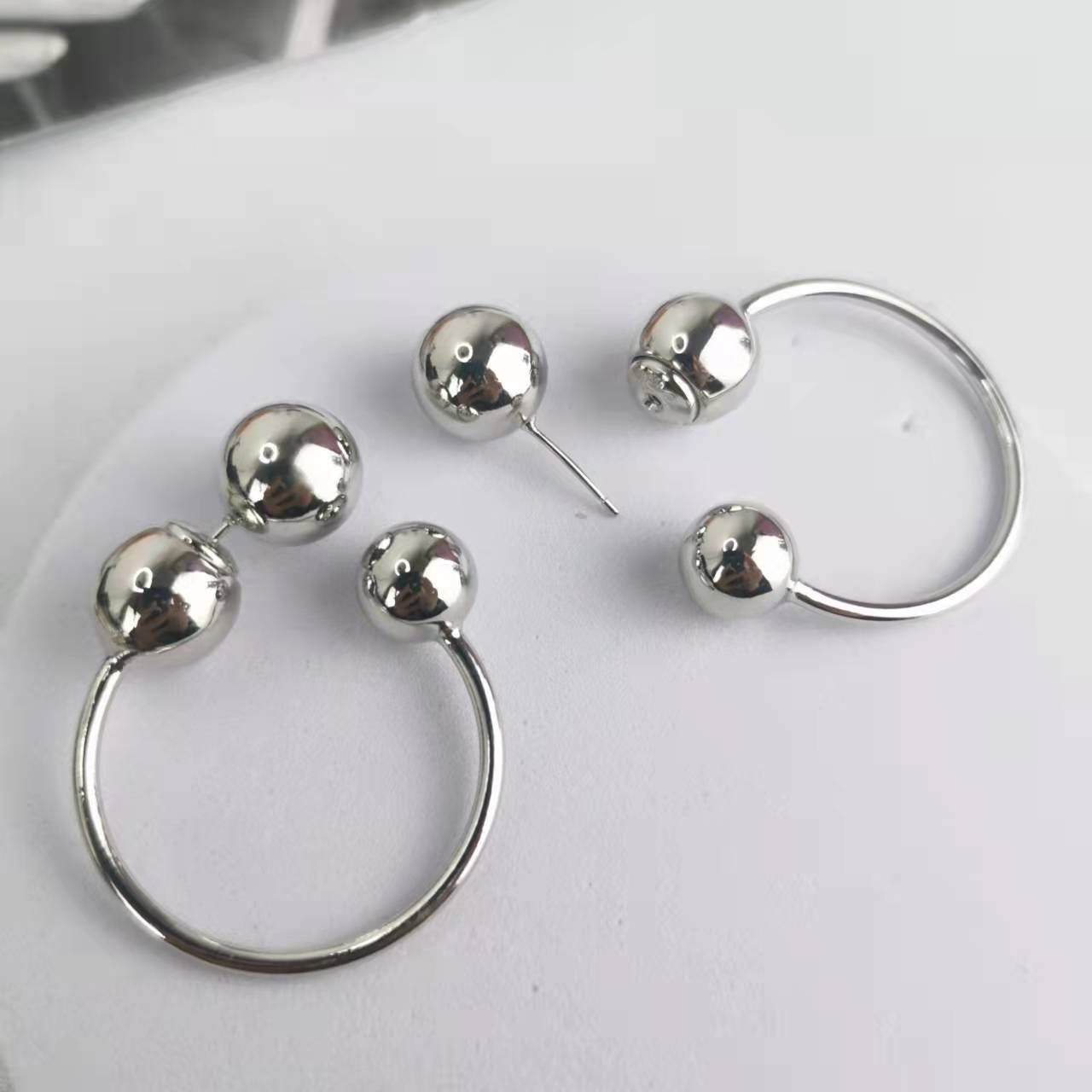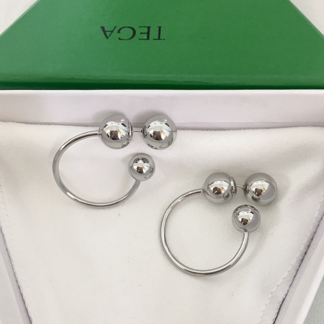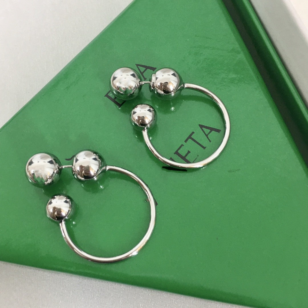 BV家22新款圆珠耳钉女环形气质极简欧美风后挂式光面几何大耳环
