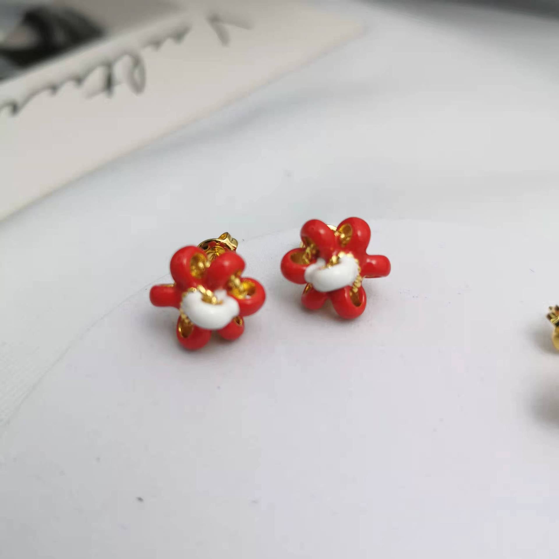 BV家22新款花朵珐琅耳钉女高级感气质滴釉几何小花拼色耳环