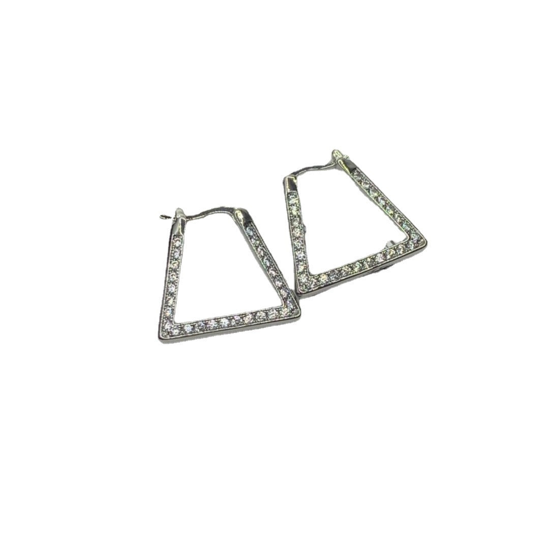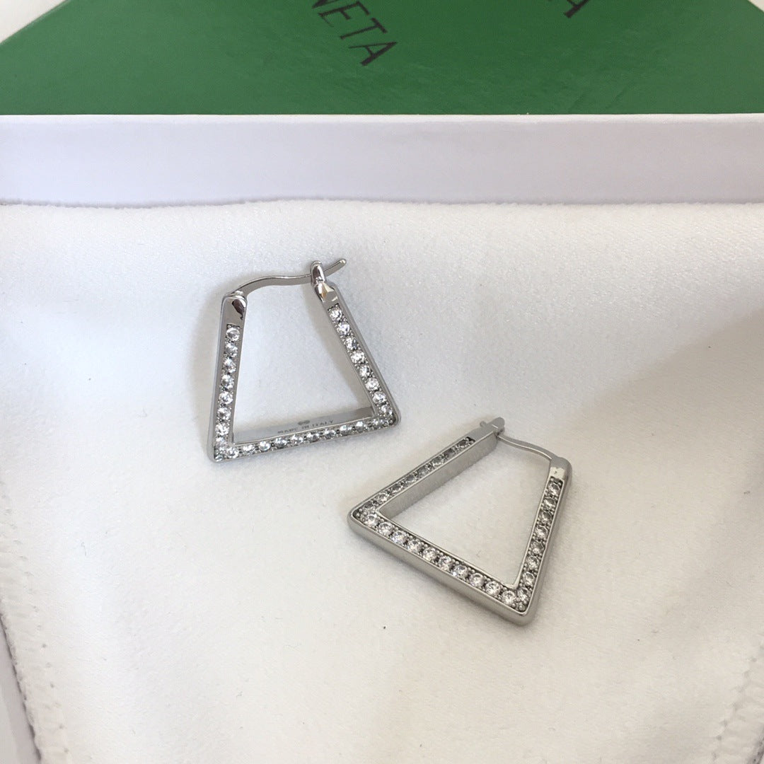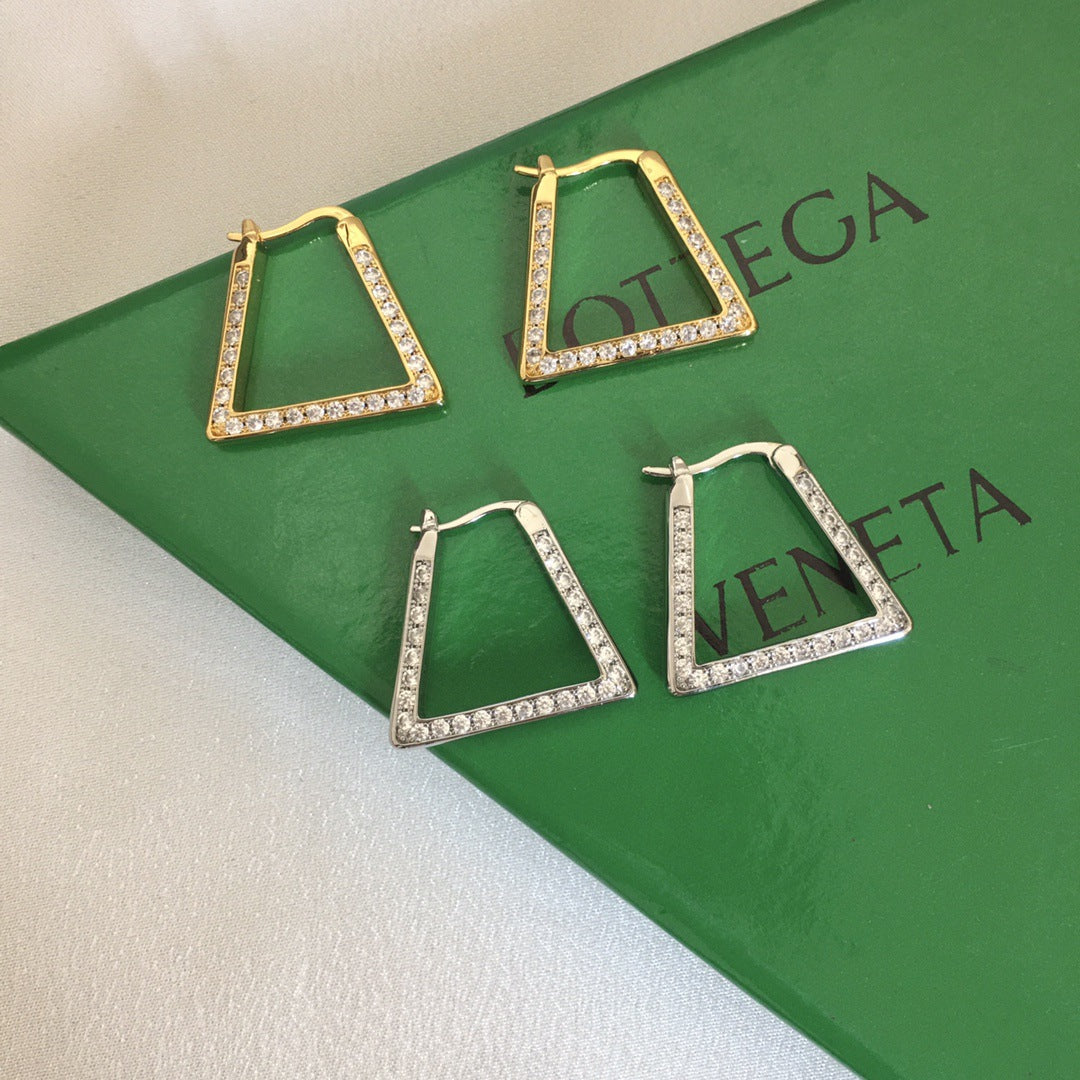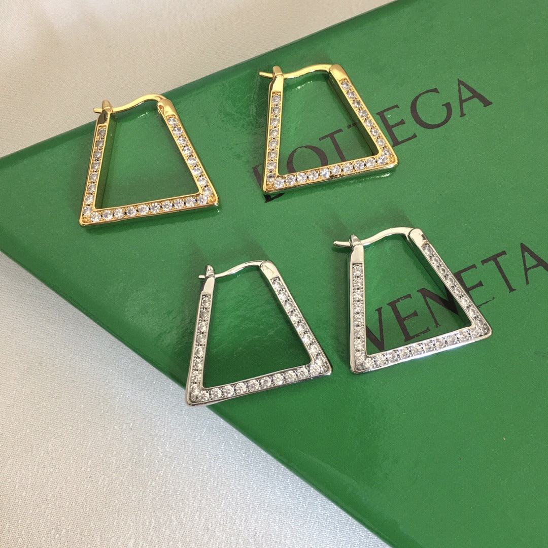 BV风22新款三角形耳环歐美锆石镶嵌几何型优雅镀金满钻耳环