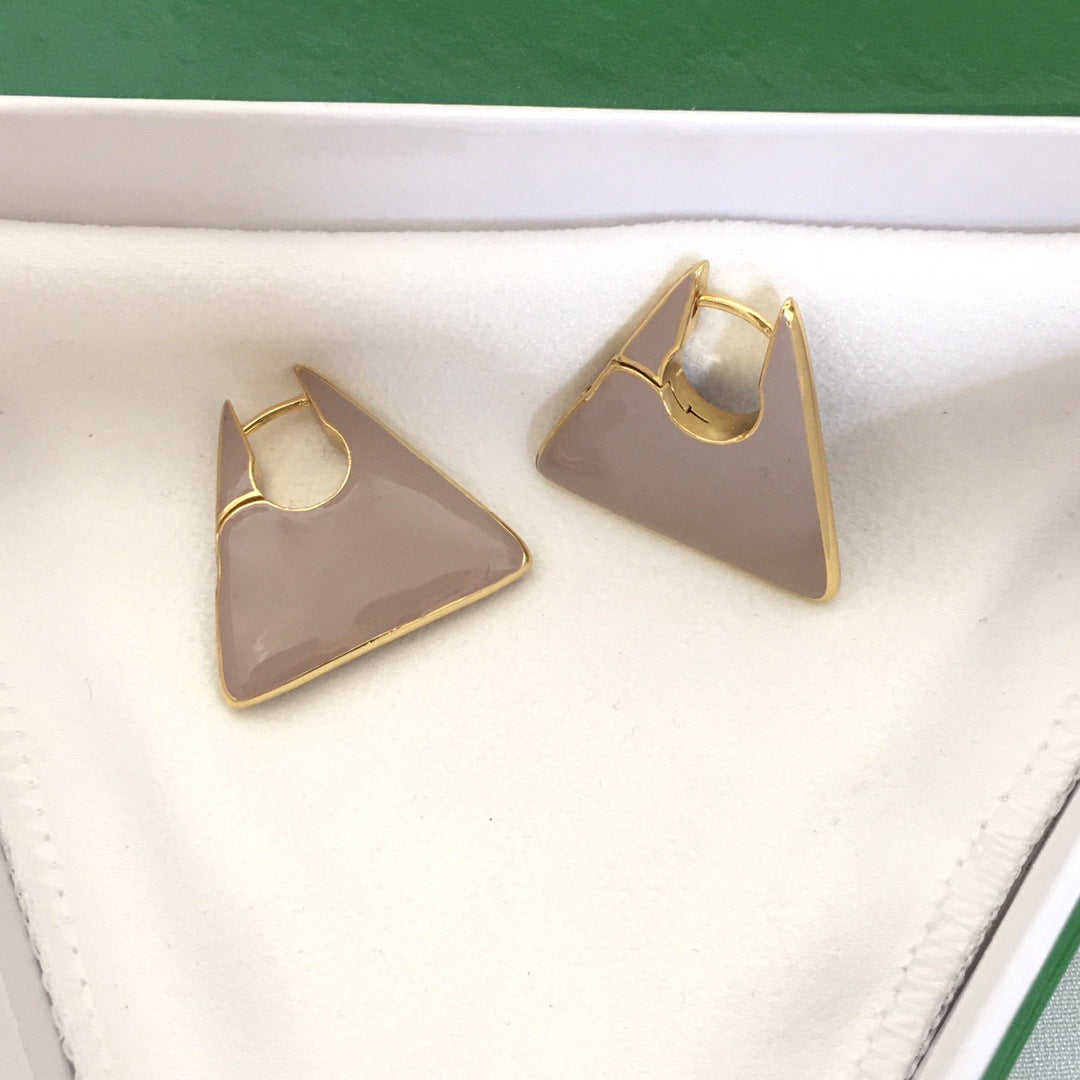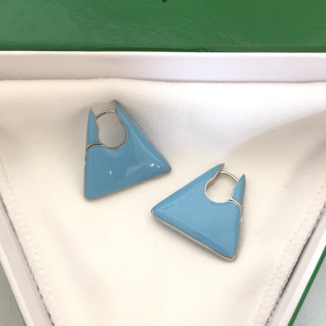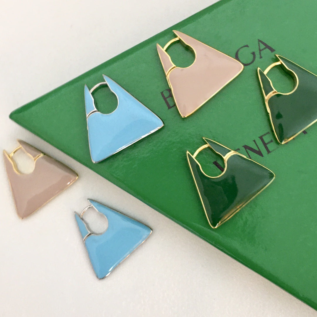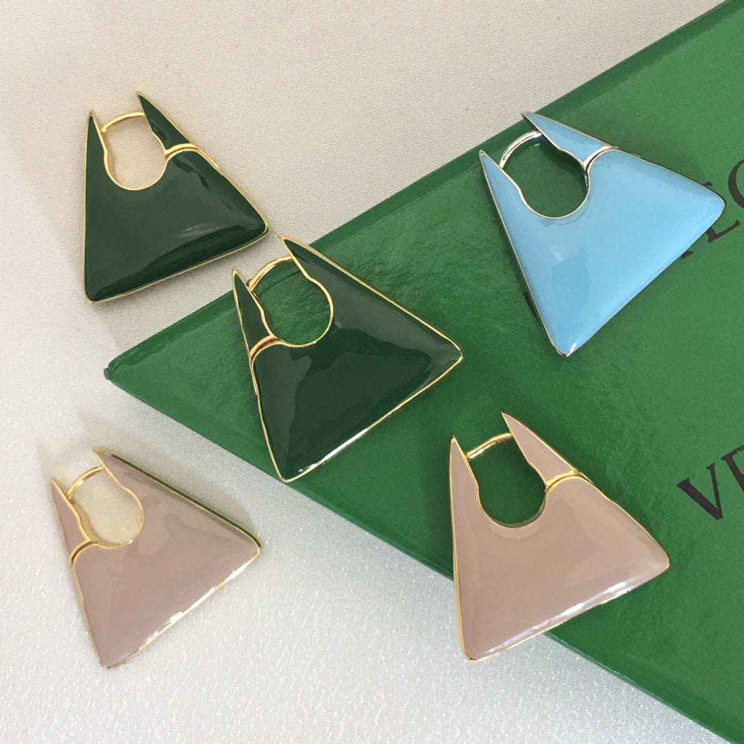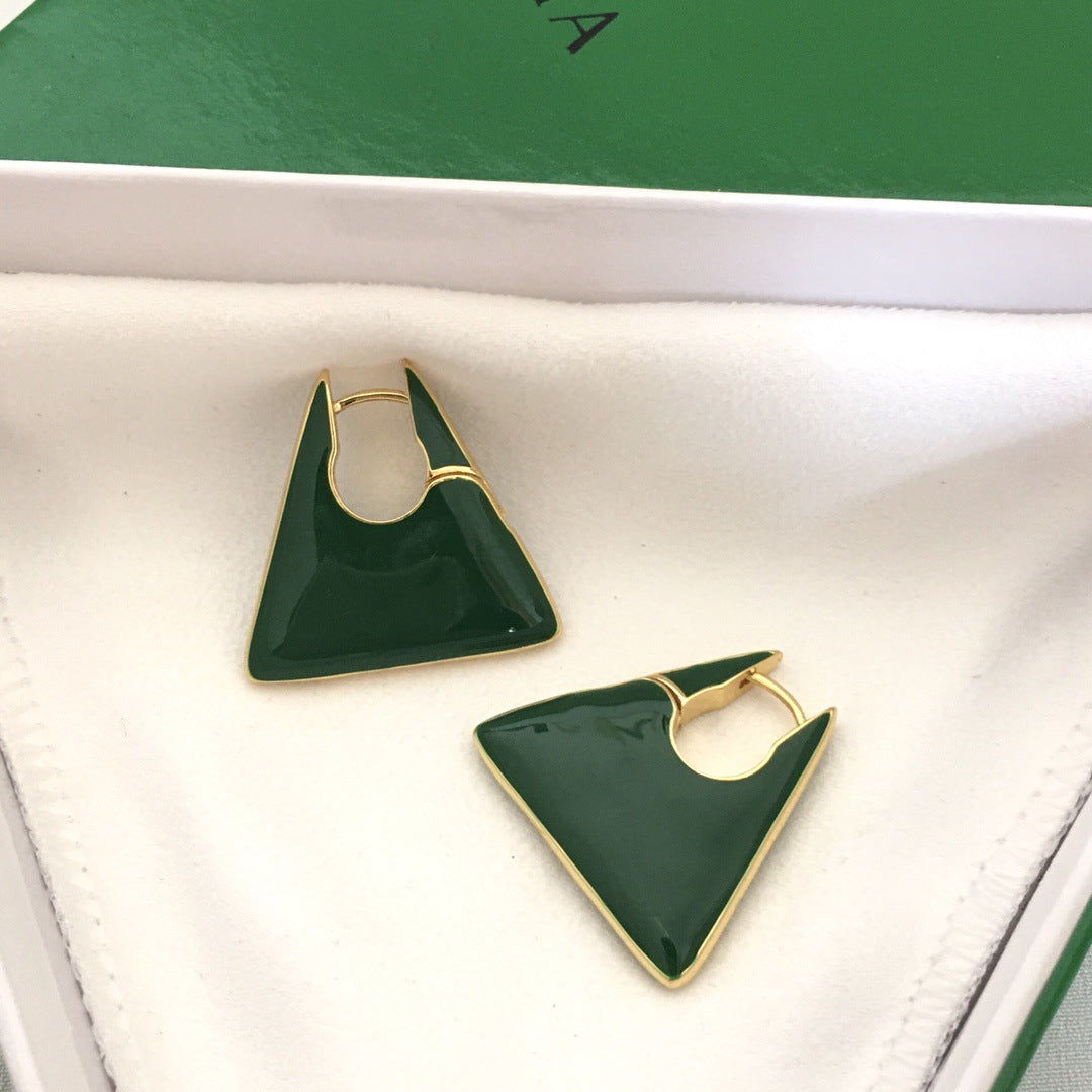 BV22新款珐琅三角耳环女高级感气质欧美风重工绿色几何形耳扣