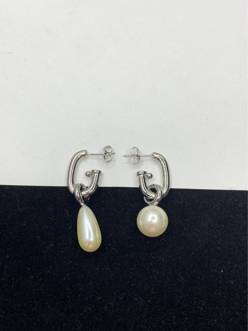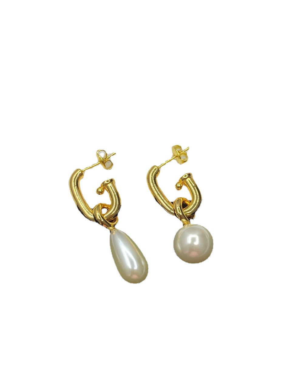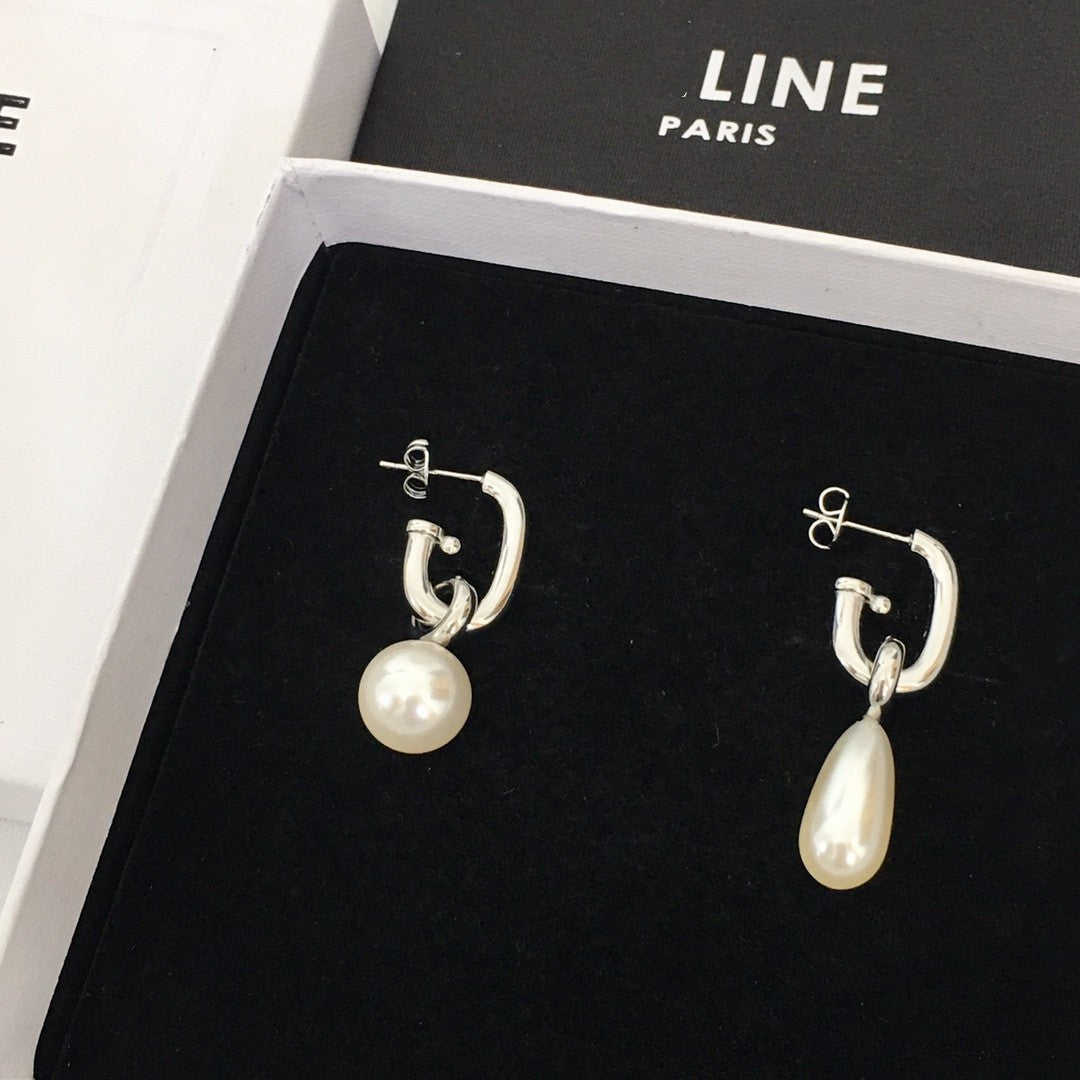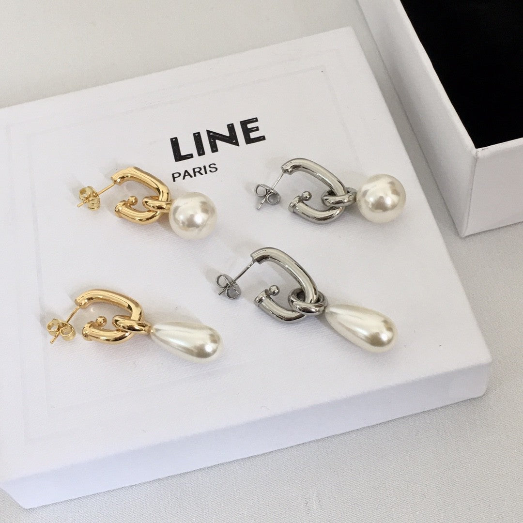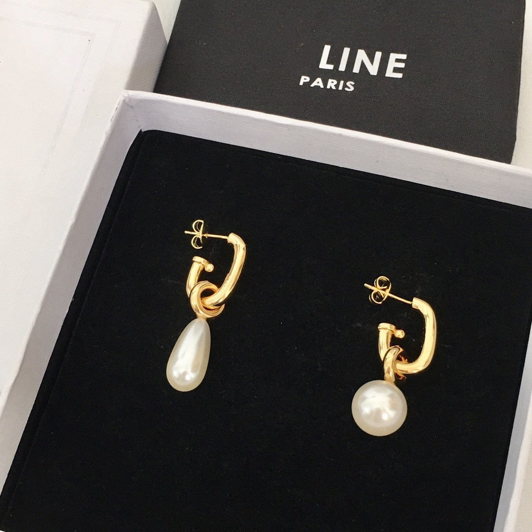 Cel家22新款贝珠不对称耳钉女高级感气质光面几何型珍珠耳环