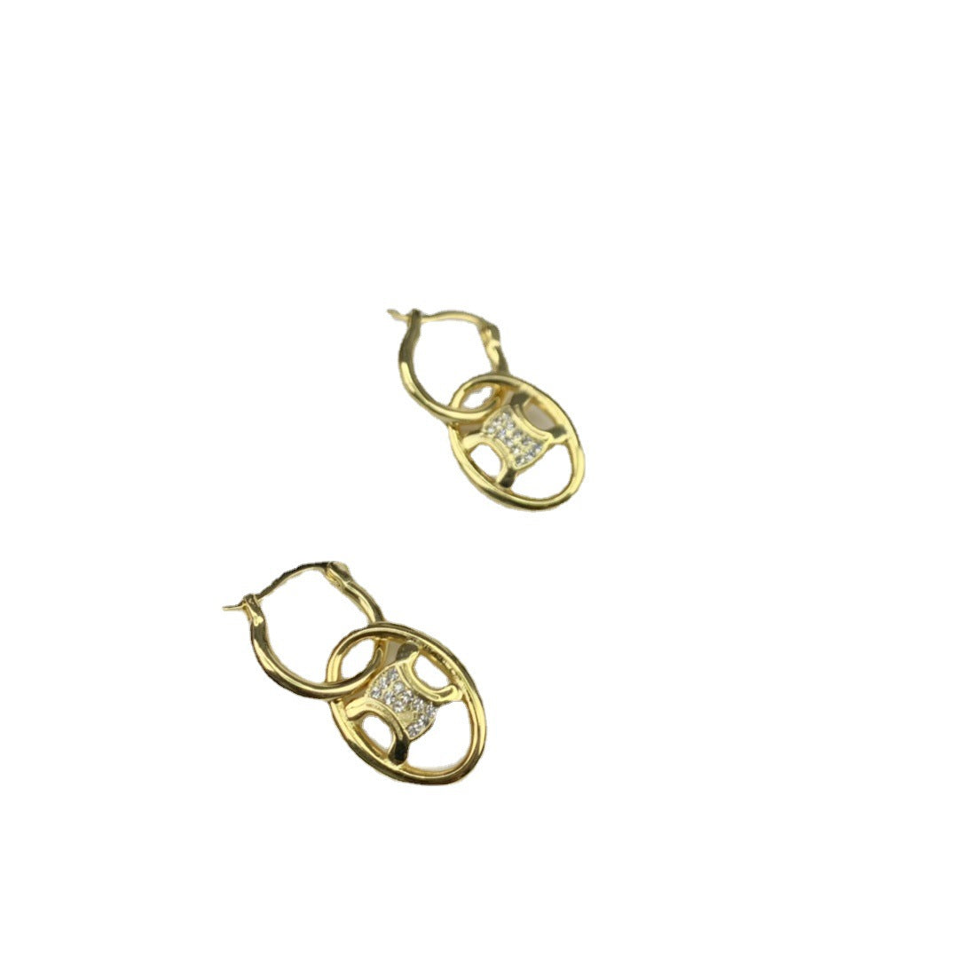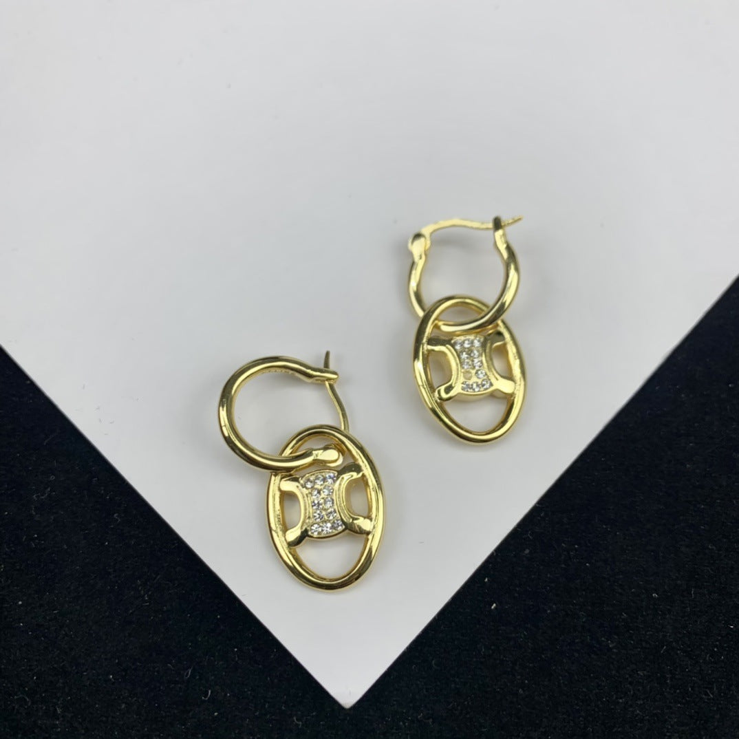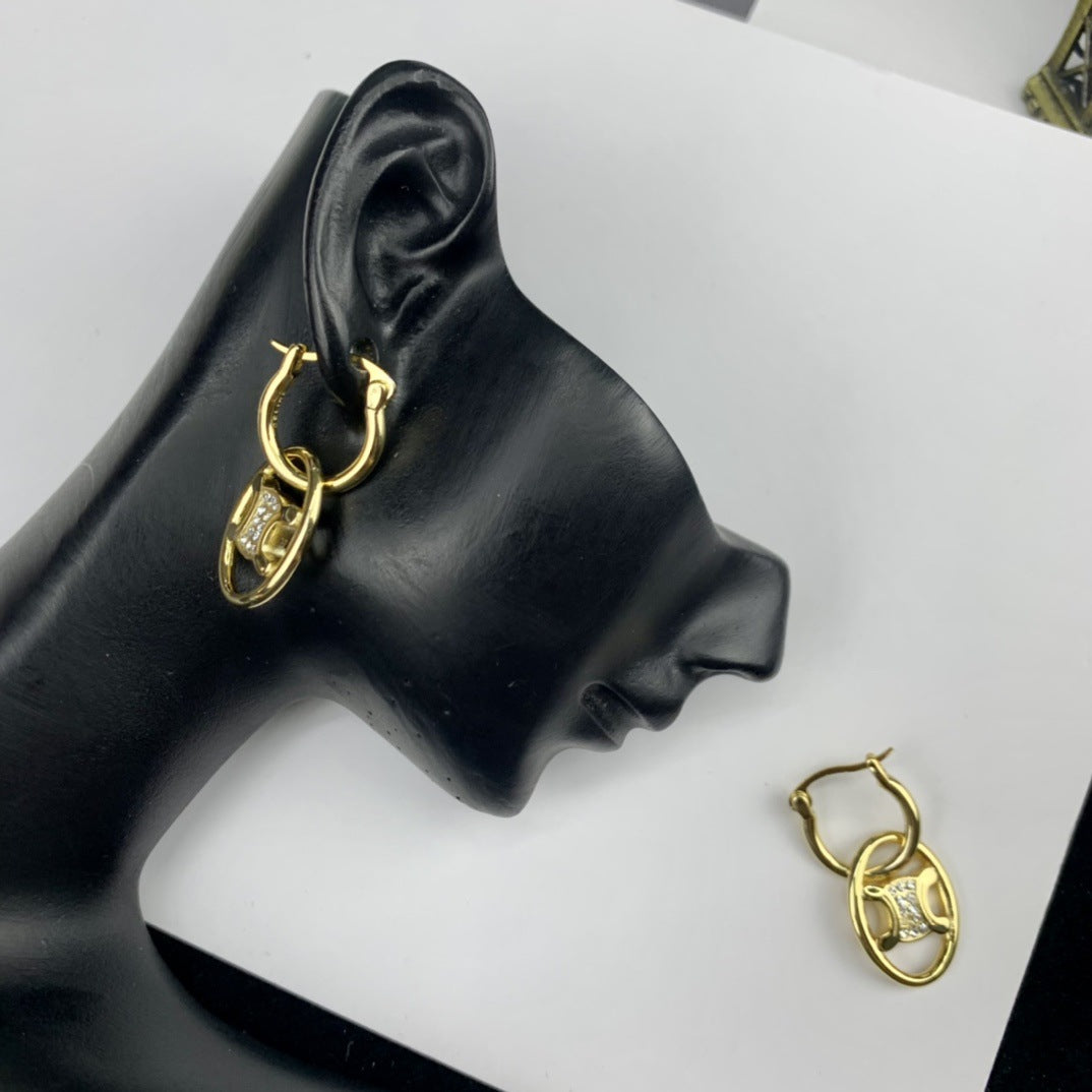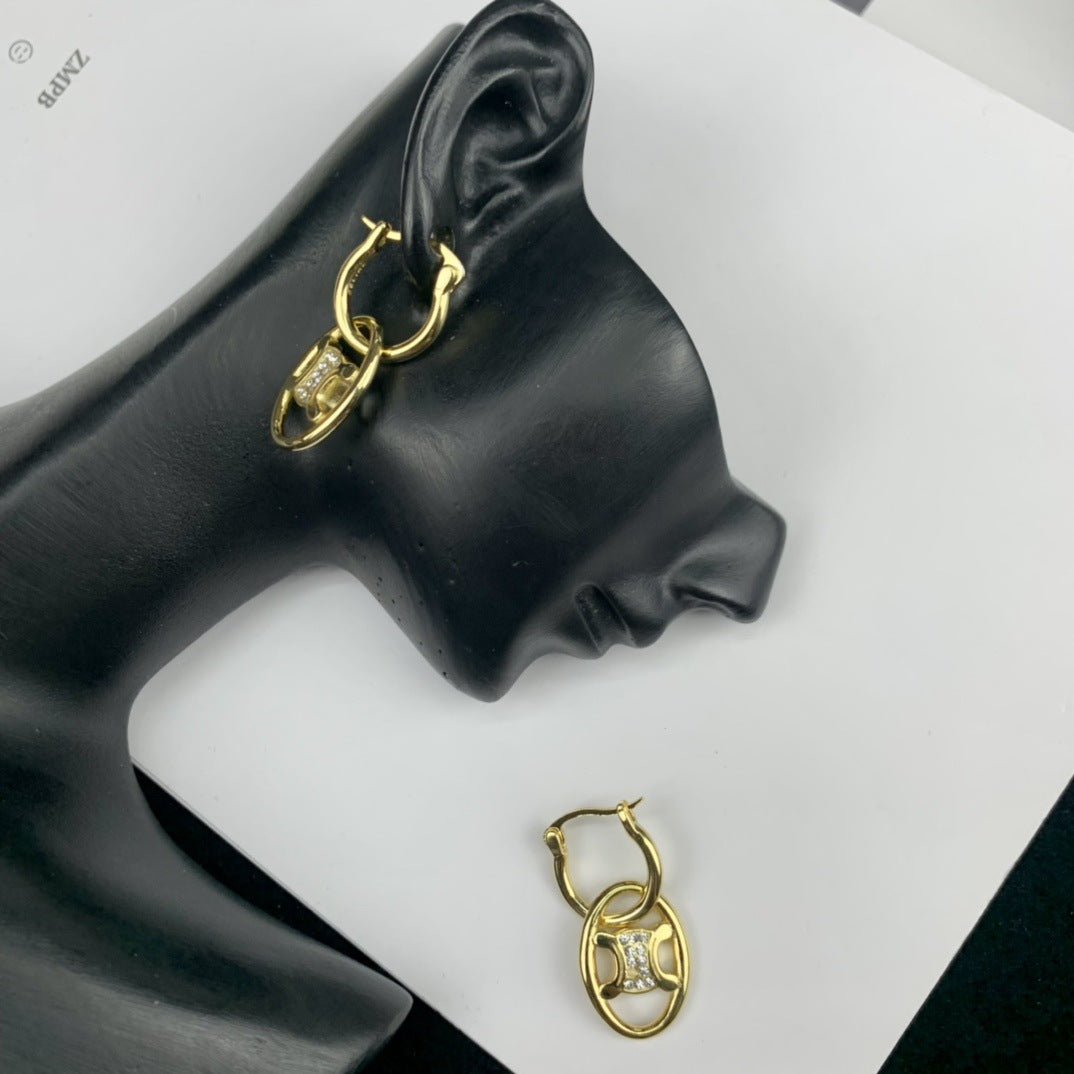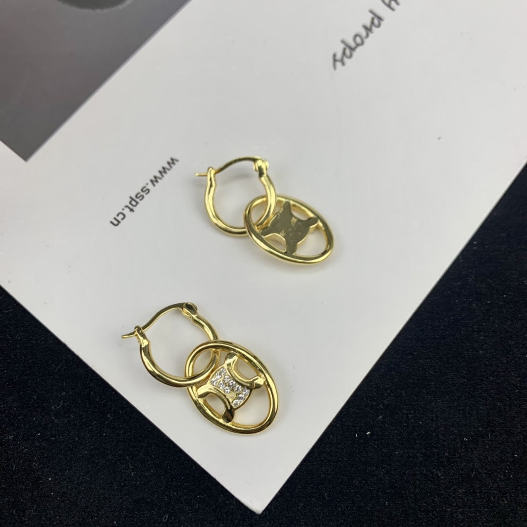 CEL风22新款镂空凯旋门耳环女高级感气质镶钻可拆卸双环圆圈耳饰