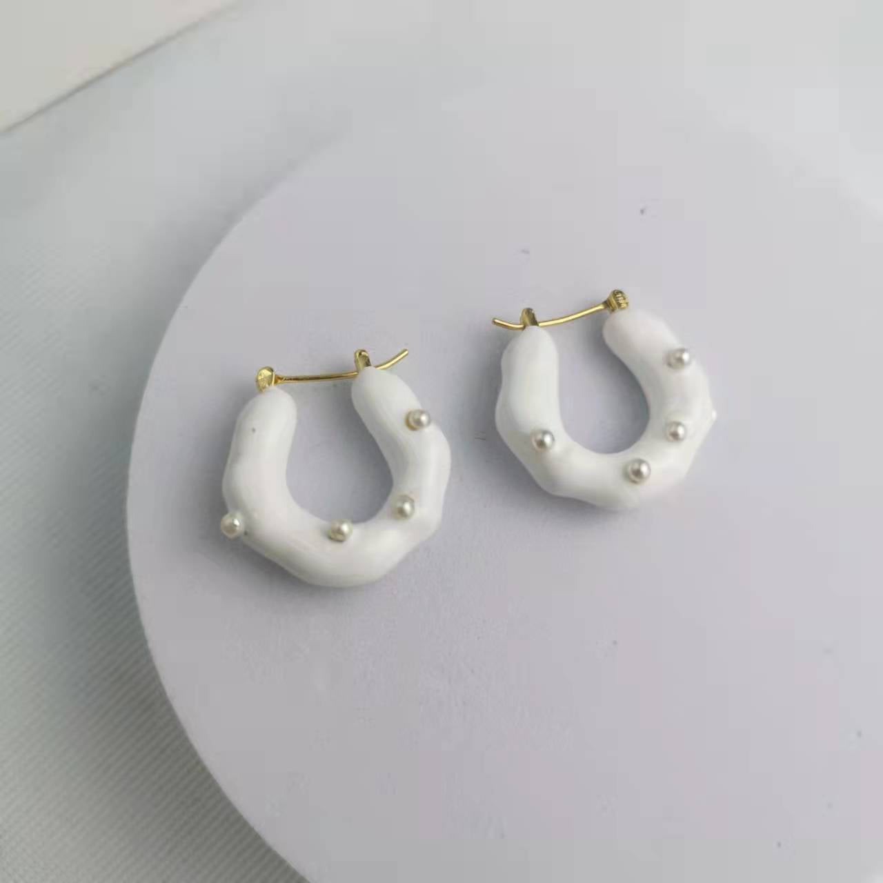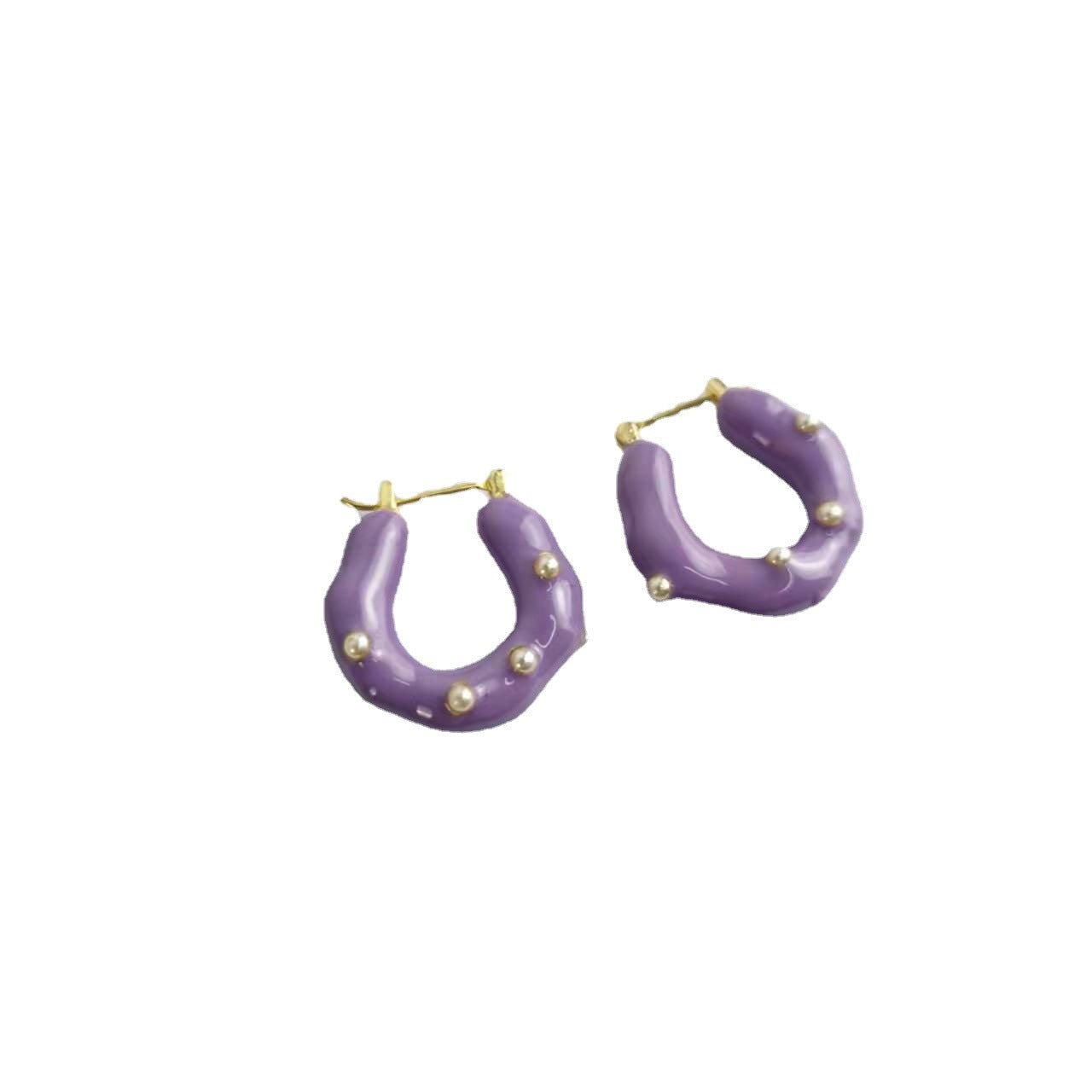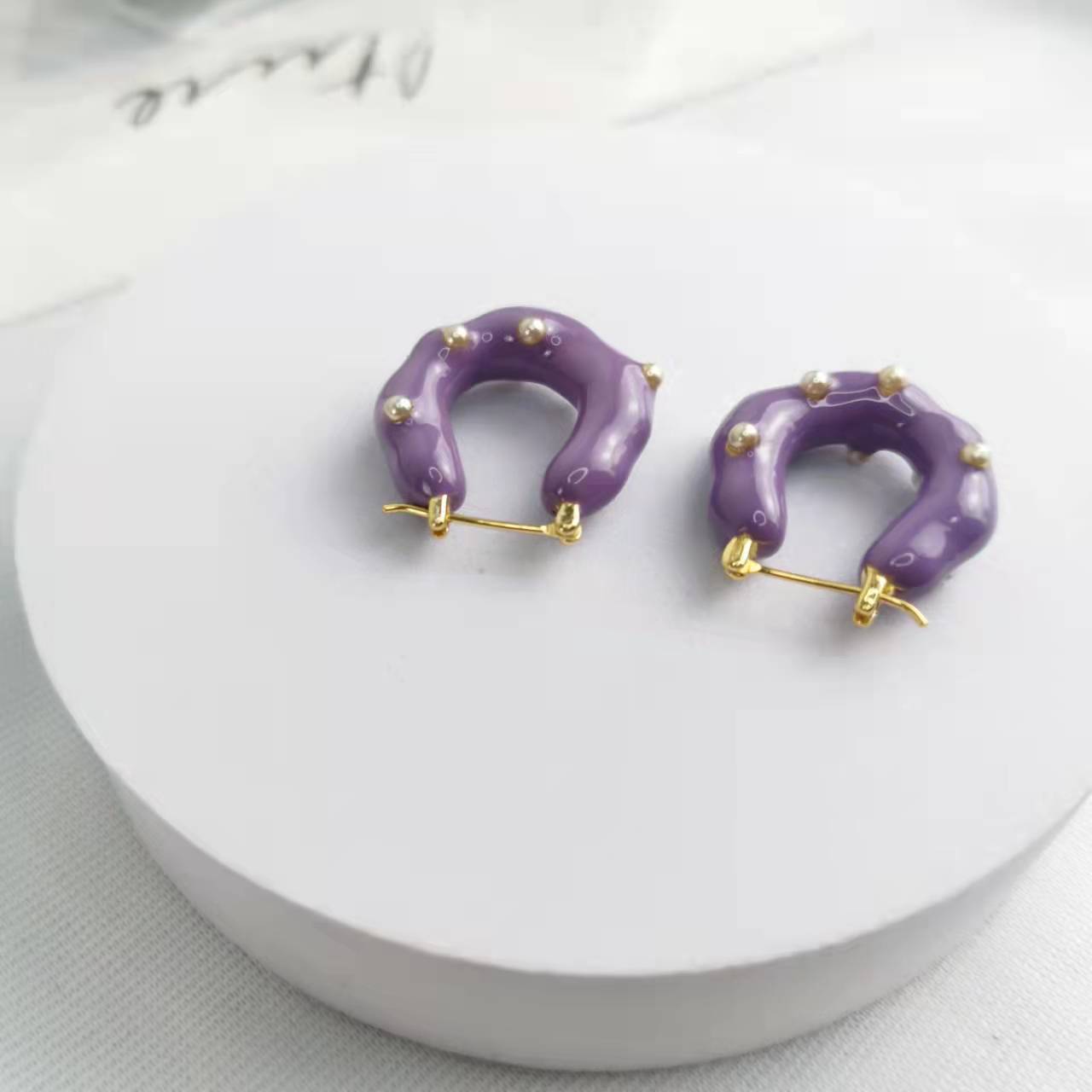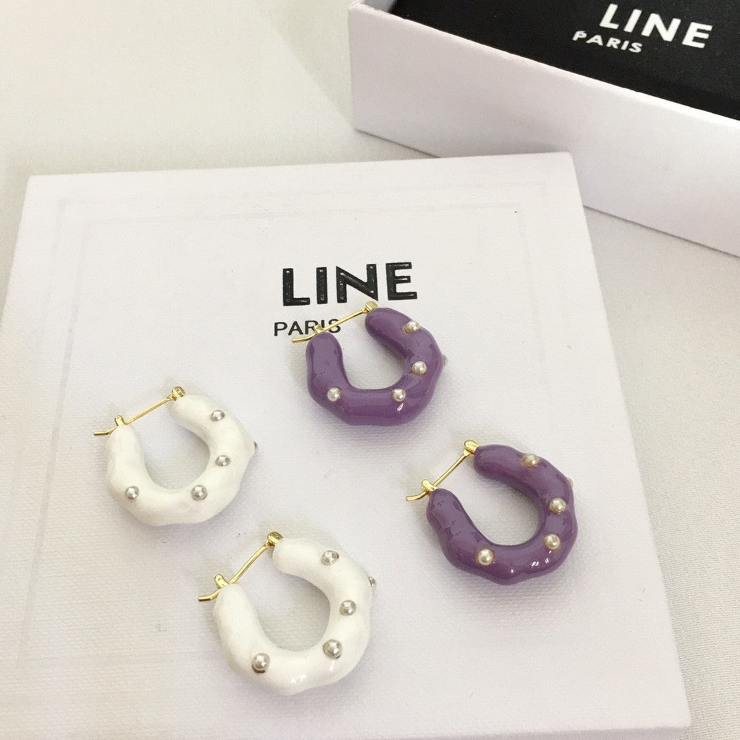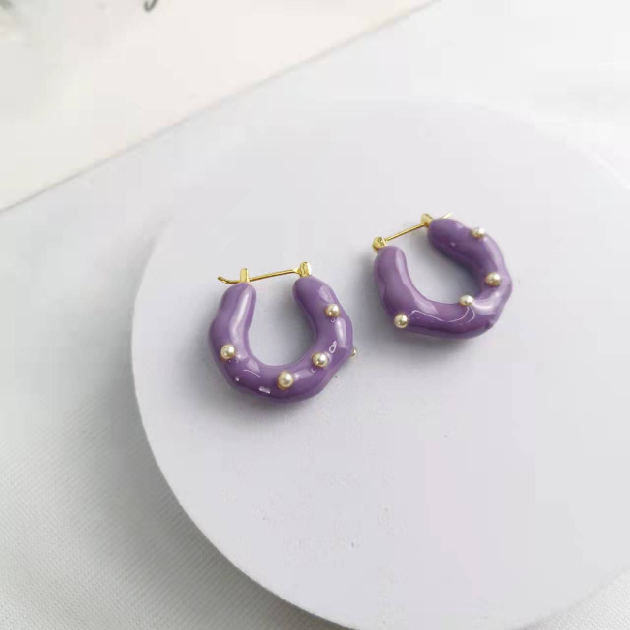 CELI家21新款U形几何紫色珐琅耳环女高级感气质港风拼色耳扣