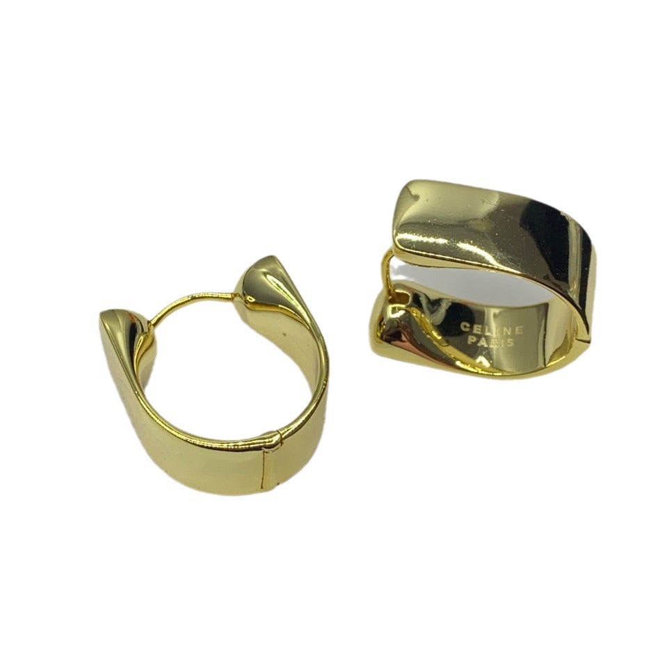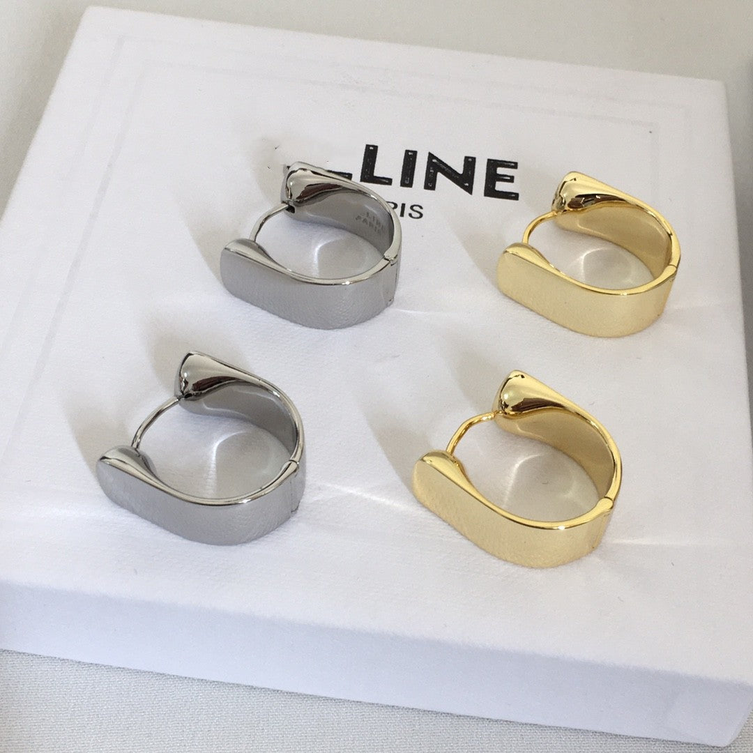 Celi家22新款U形耳环女高级感气质光面镀金港风气质耳扣