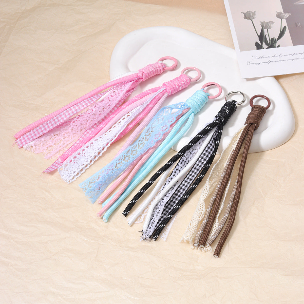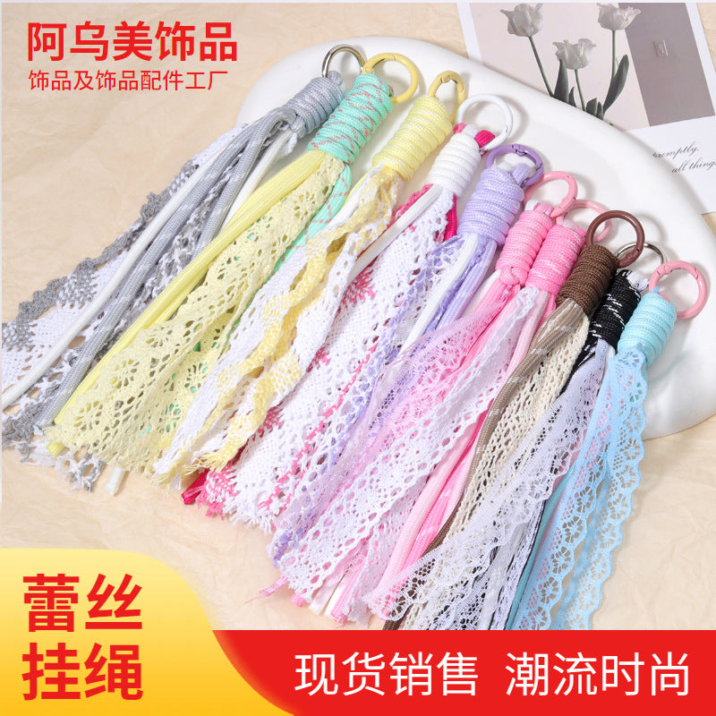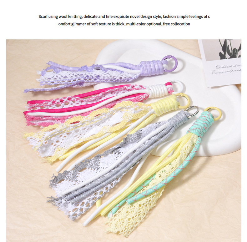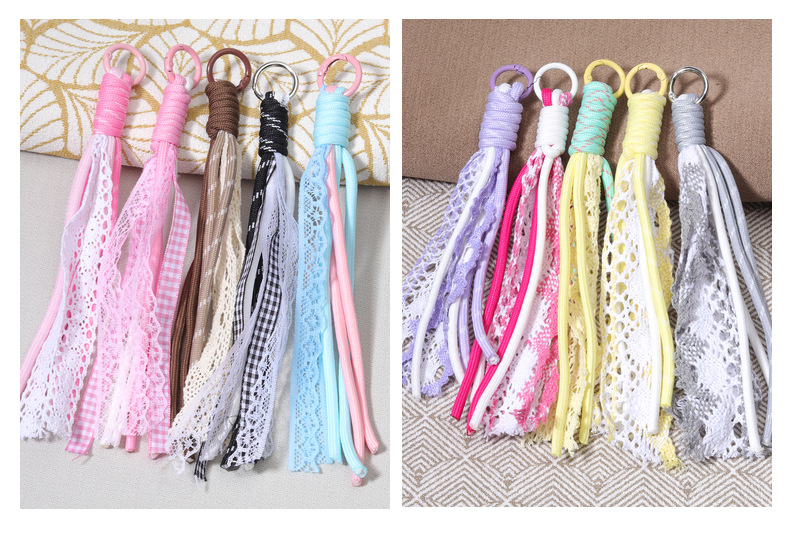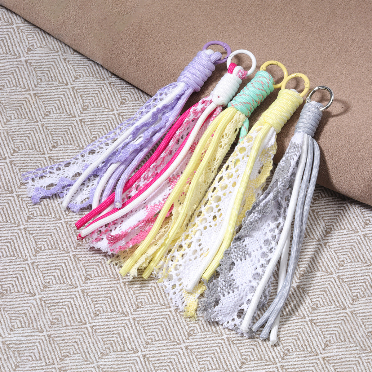 DIY欧美波西米亚风涤纶纯手工编织钥匙扣包包挂件批发跨境亚马逊