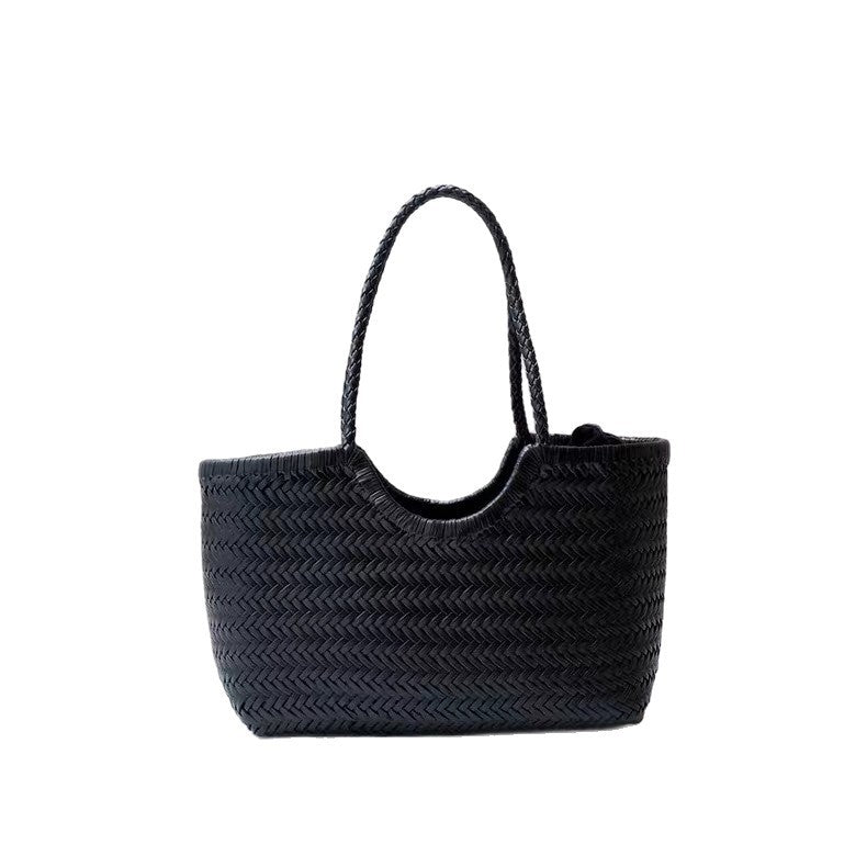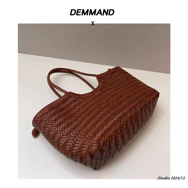 dragon同款法式编织菜篮子包女士真皮单肩包复古手工包包ins风
