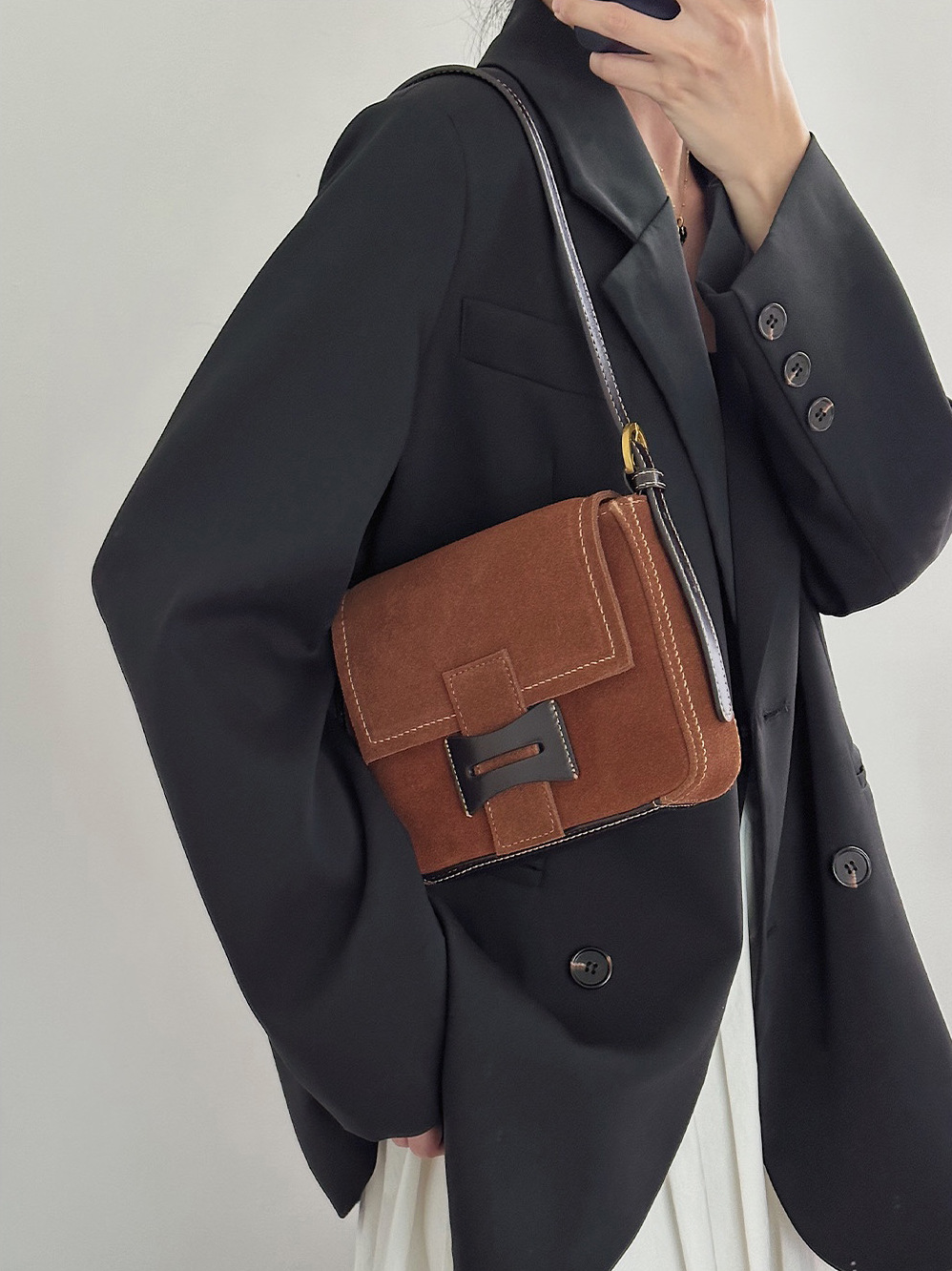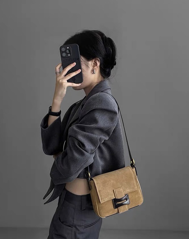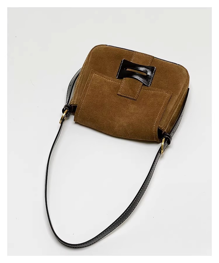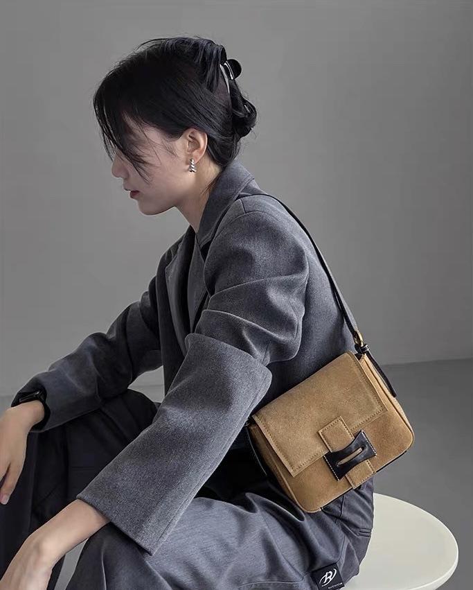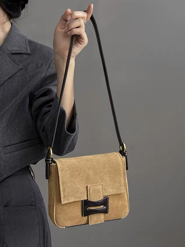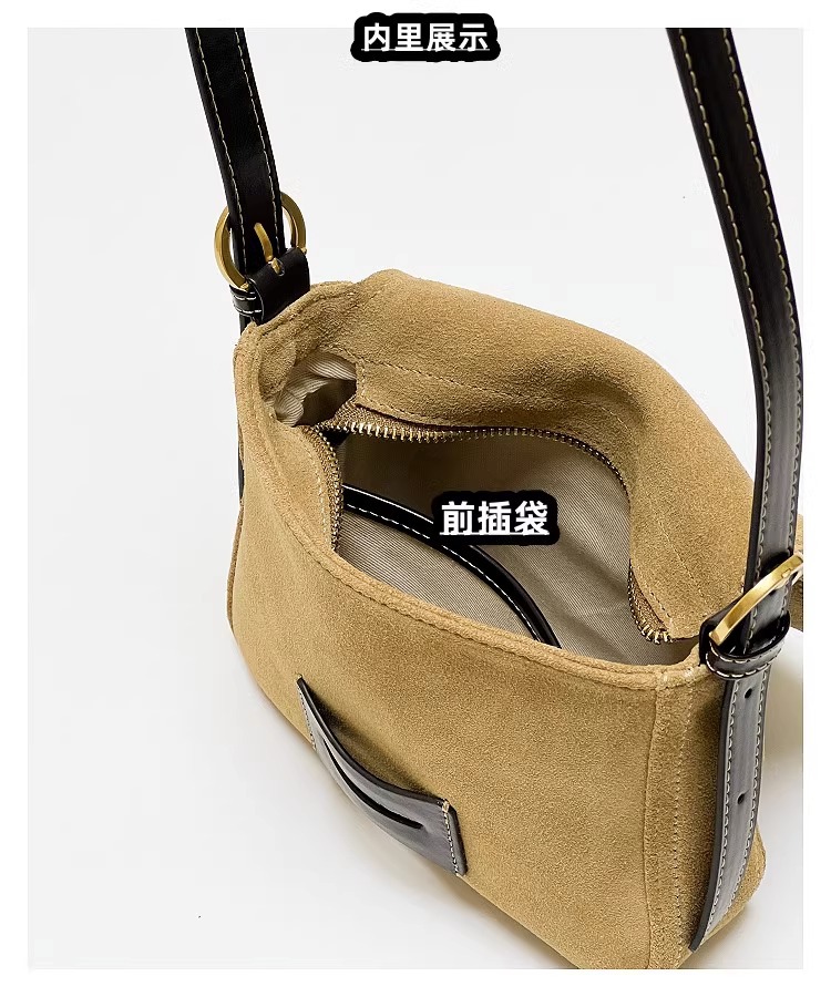 Get到一只爱不释手的小包 手感柔软的麂皮绒 后幅拼接油蜡牛皮防蹭 单肩斜挎背都毫无压力 复古氛围感拉满 秋冬bi备 先chic起来