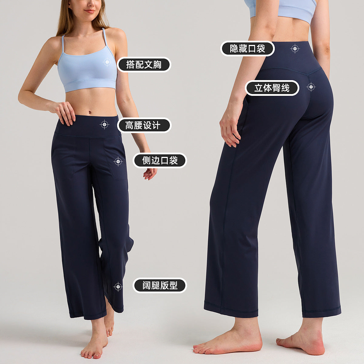 INFLACHI阔腿运动裤女直筒宽松高腰休闲裤裸感透气瑜伽健身裤28"