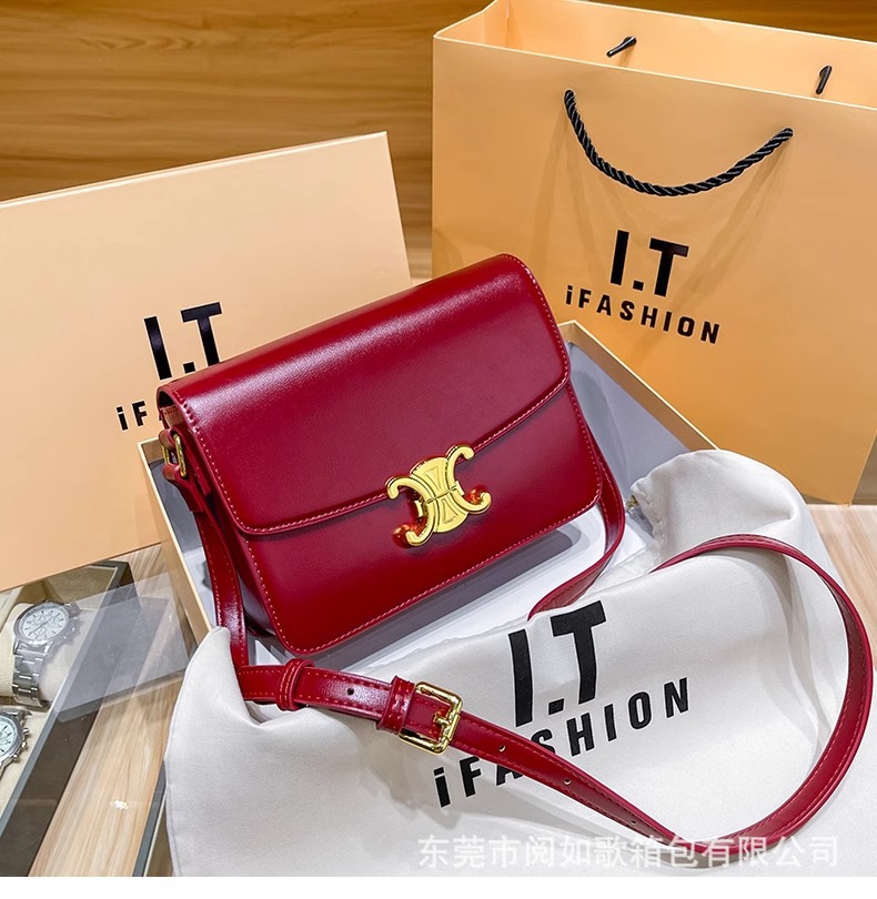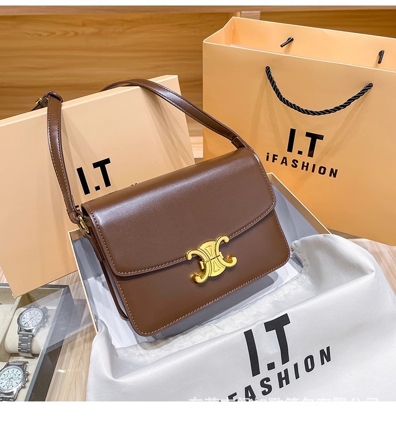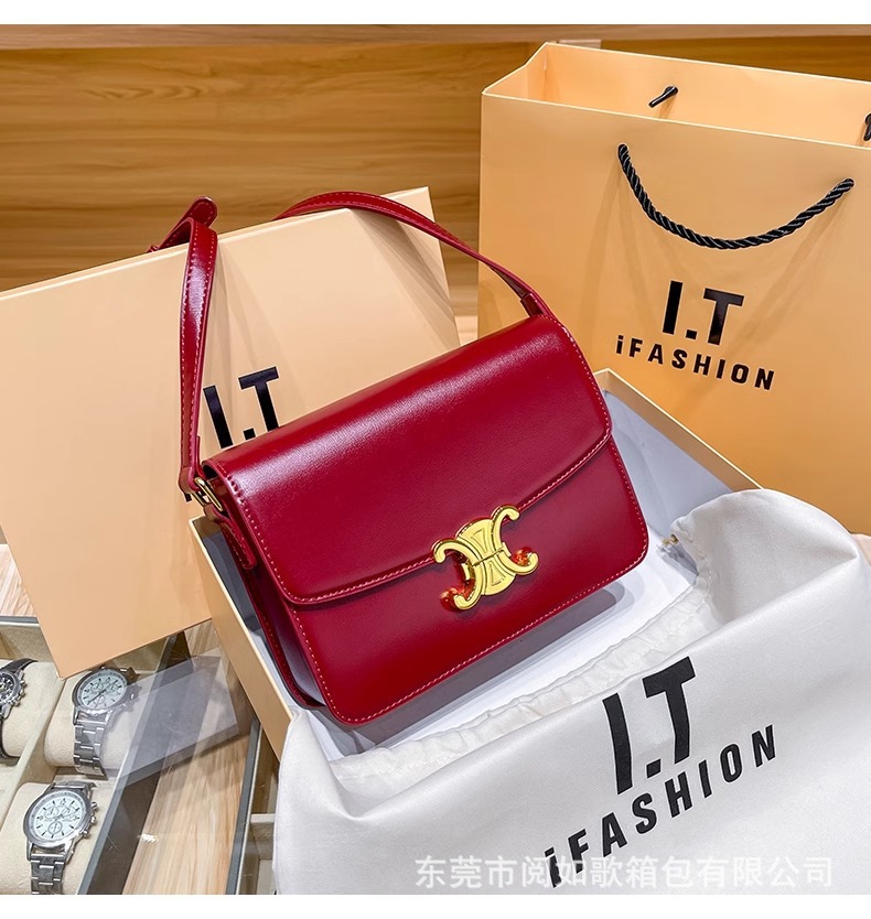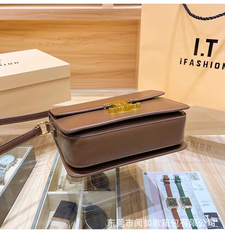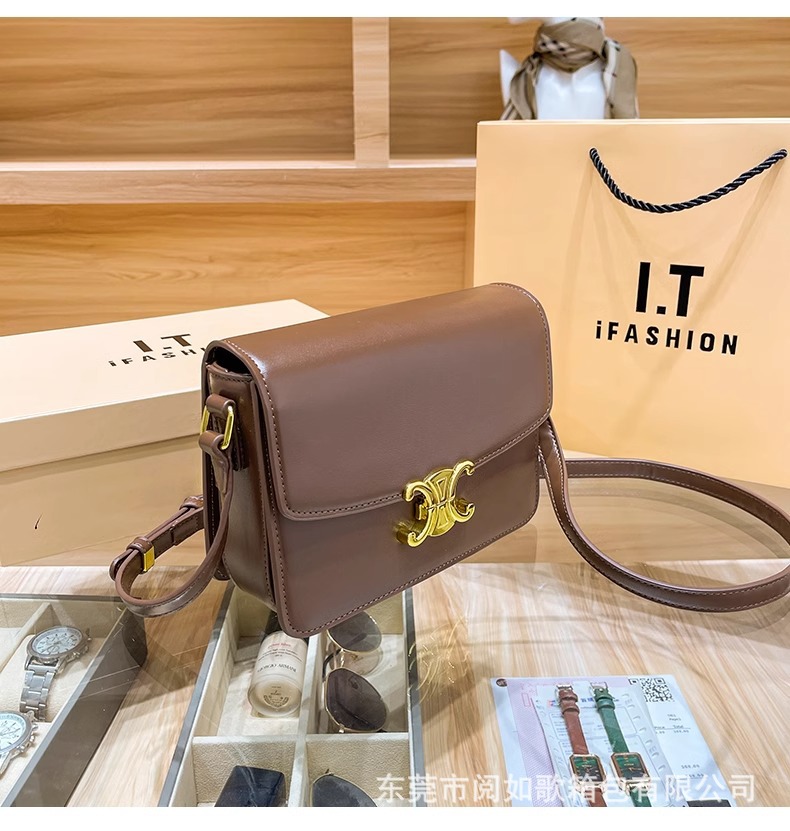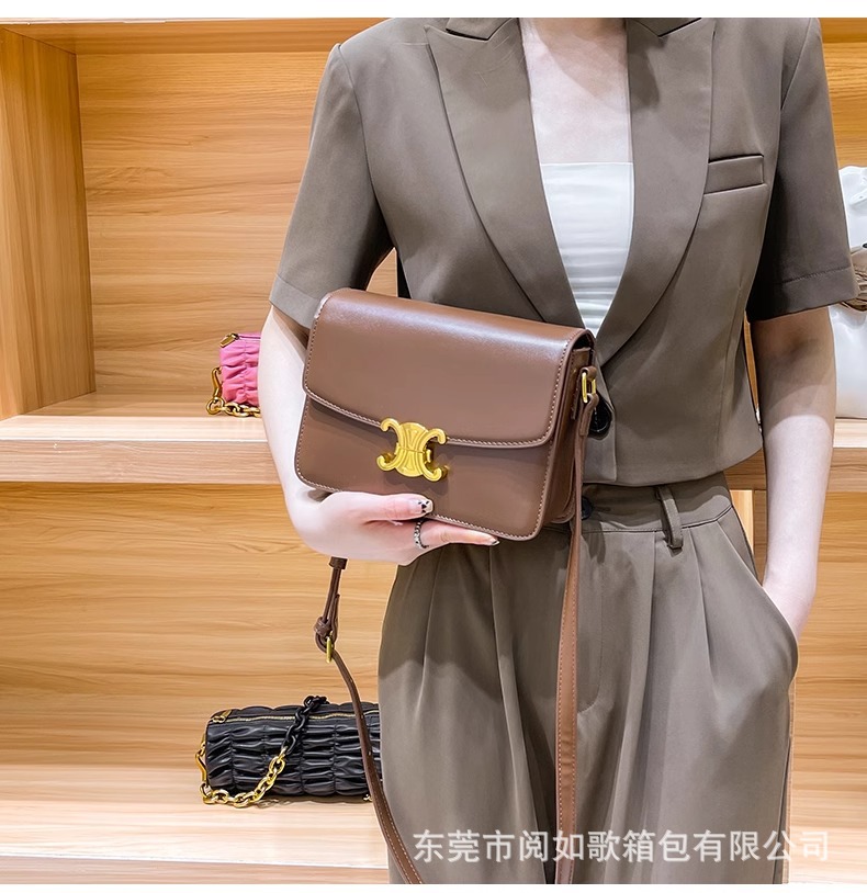 ins通勤百搭真皮包包女士高级感洋气box斜挎凯旋门豆腐包一件代发