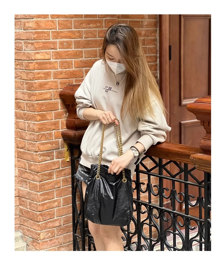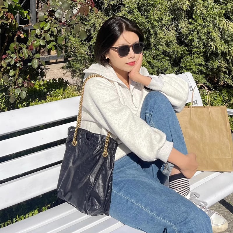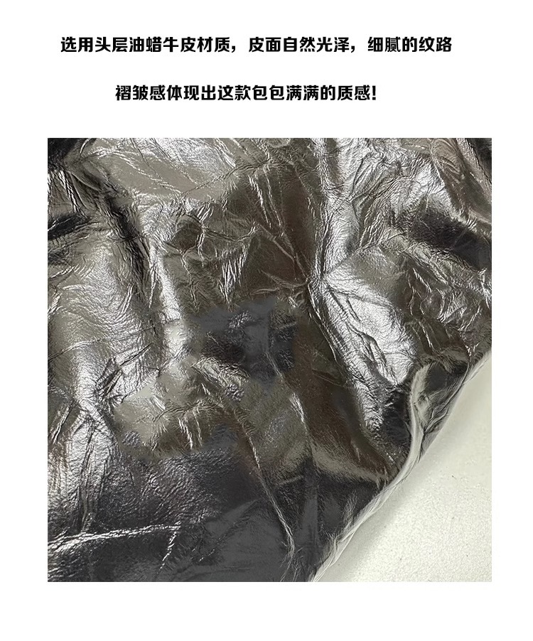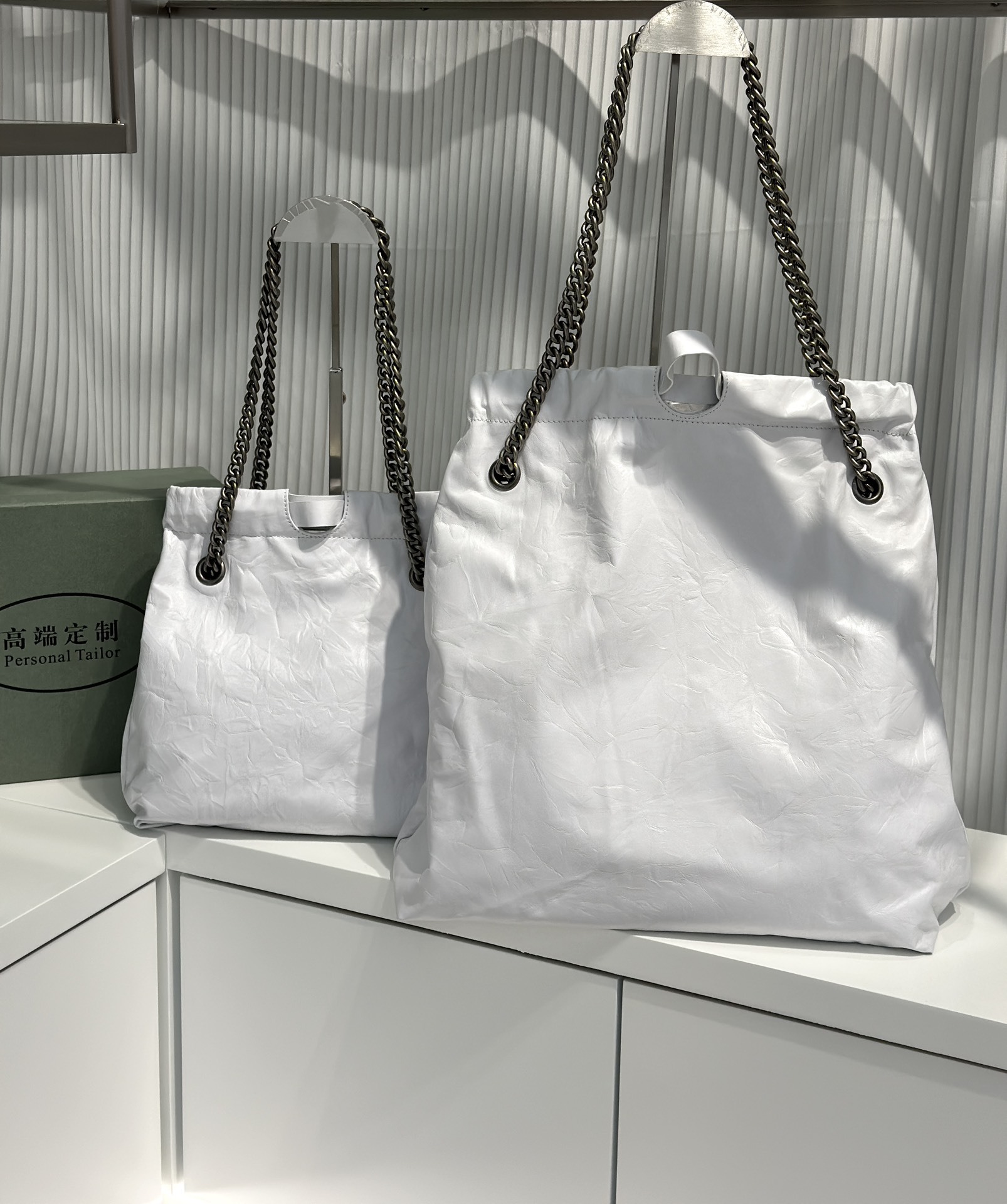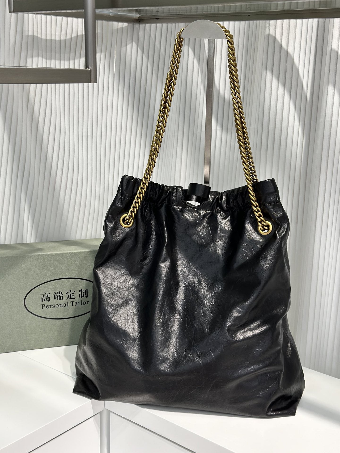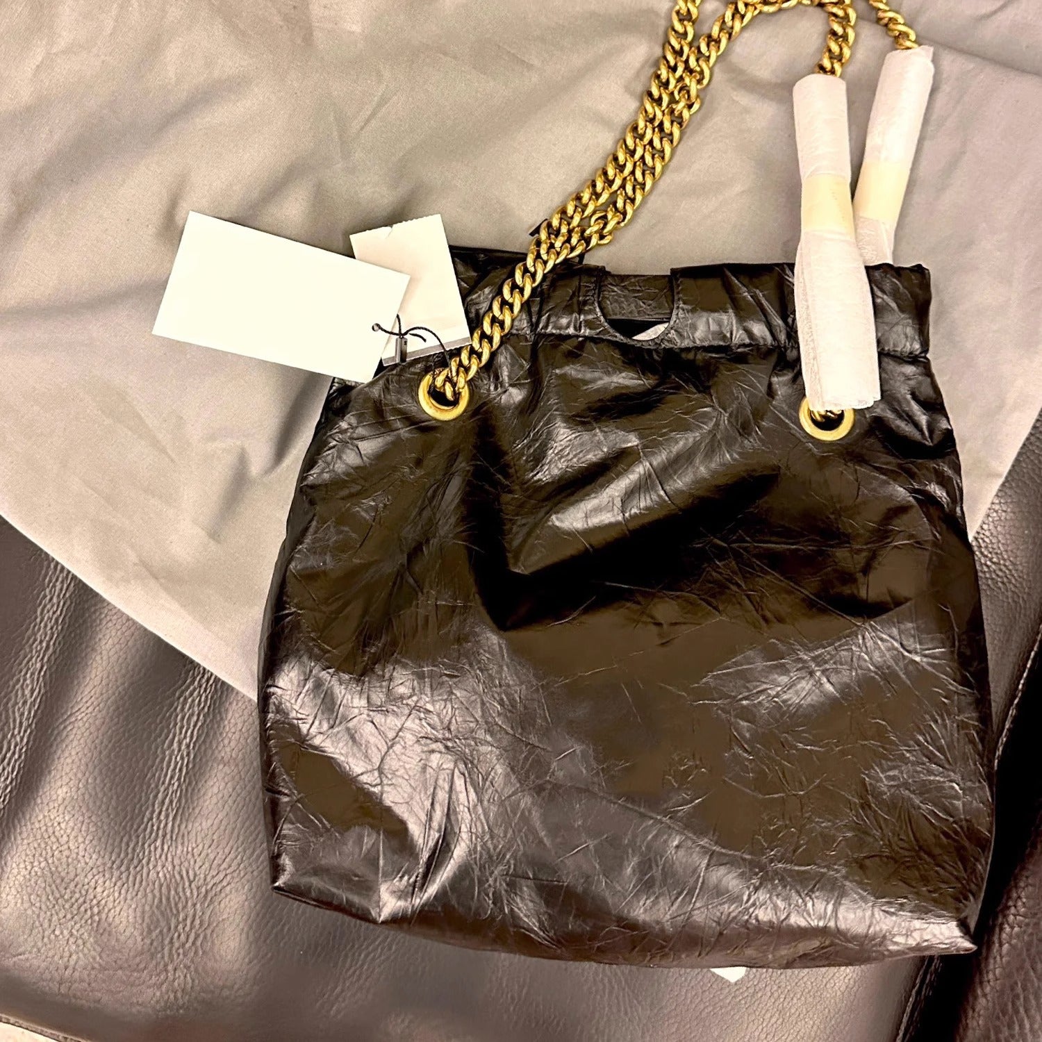 ins风慵懒随性手抓纹头层植鞣牛皮 链条单肩托特大包高质感垃圾袋