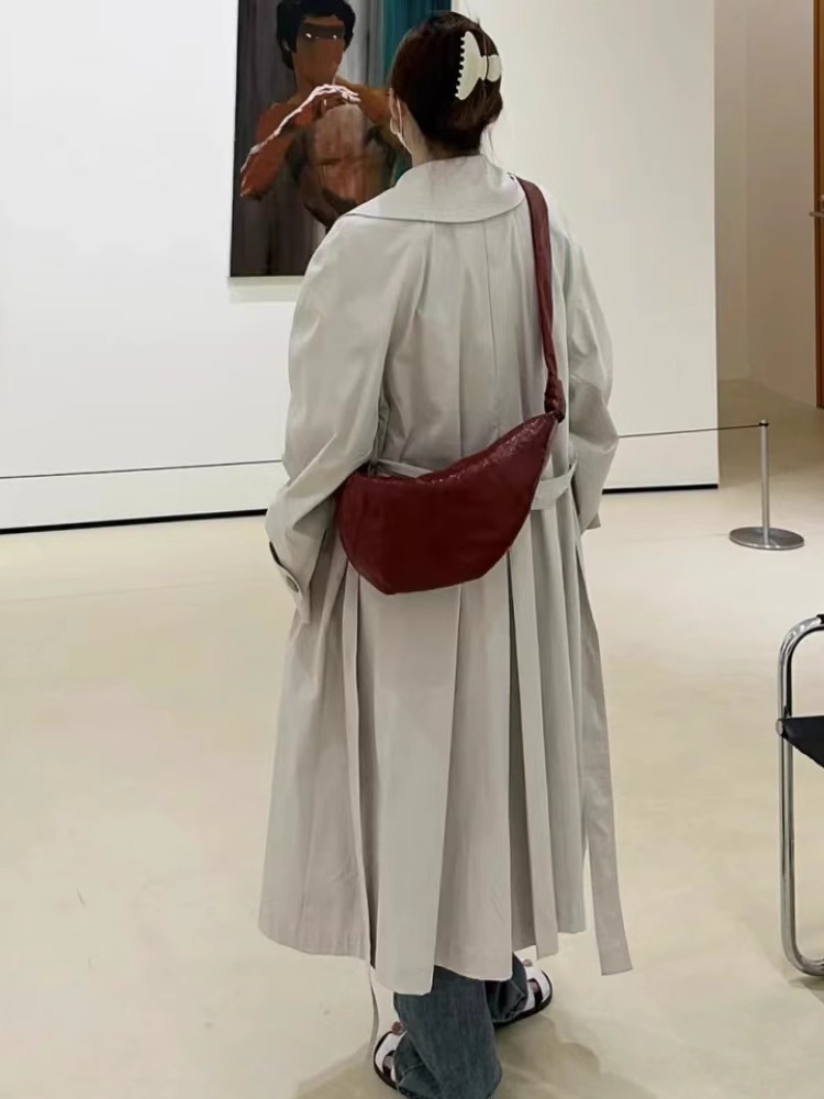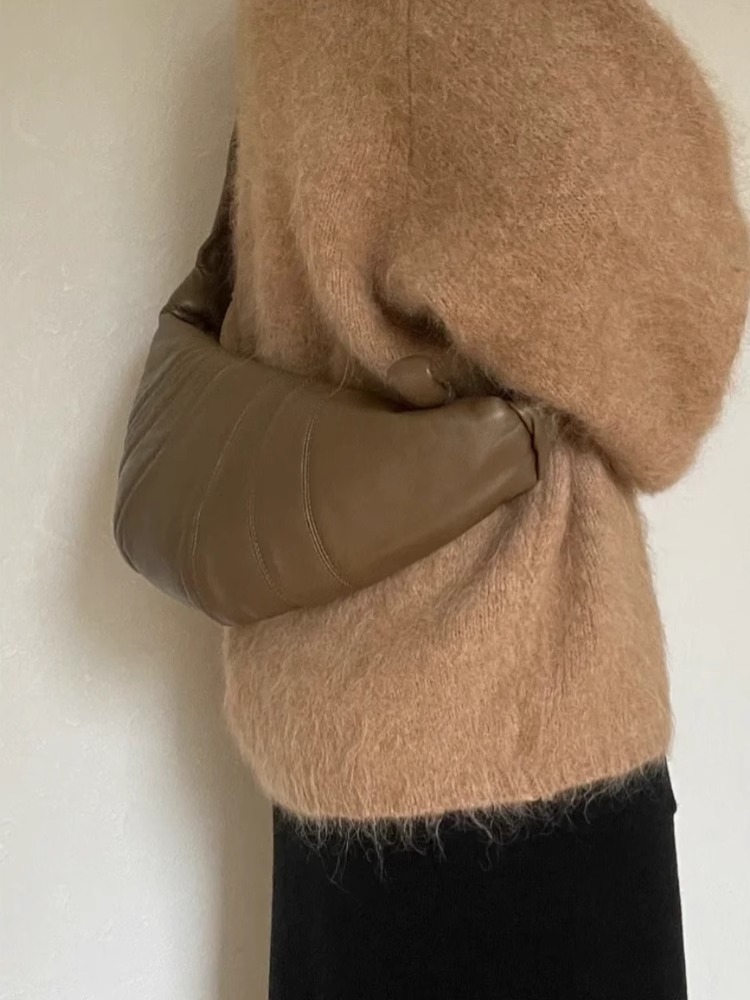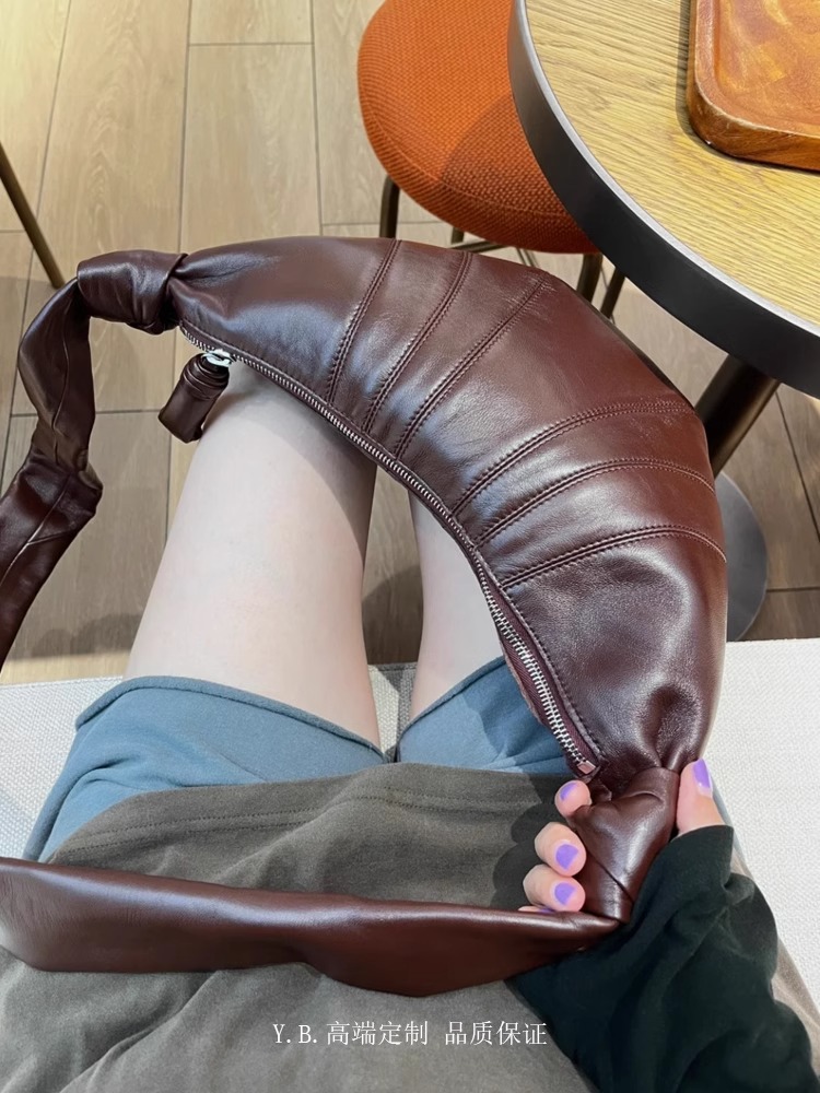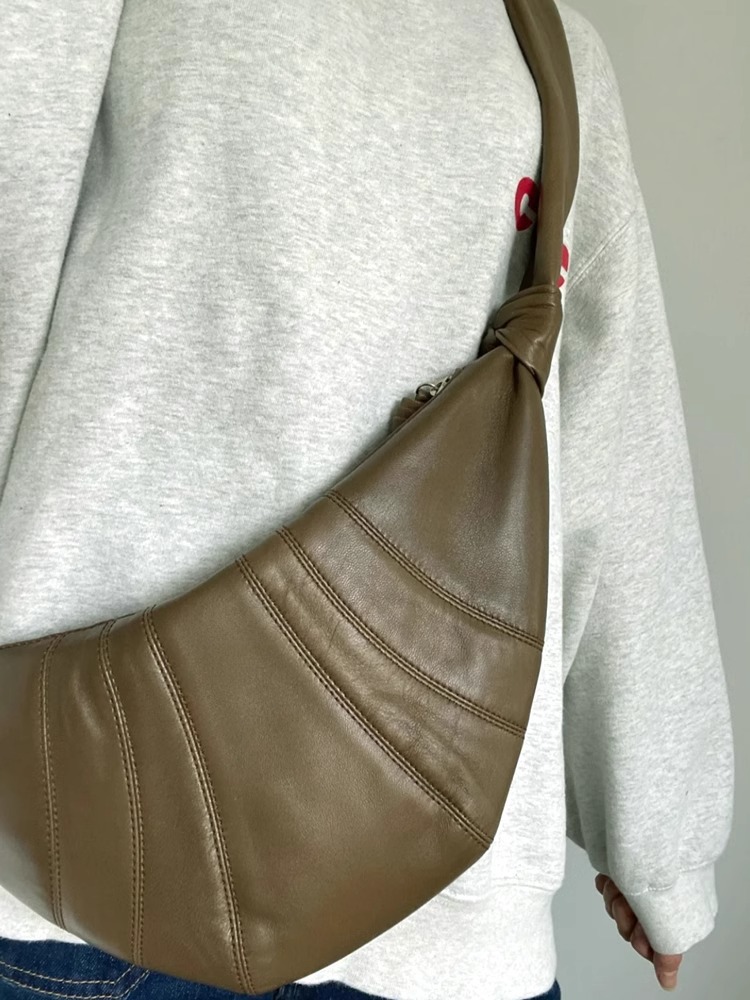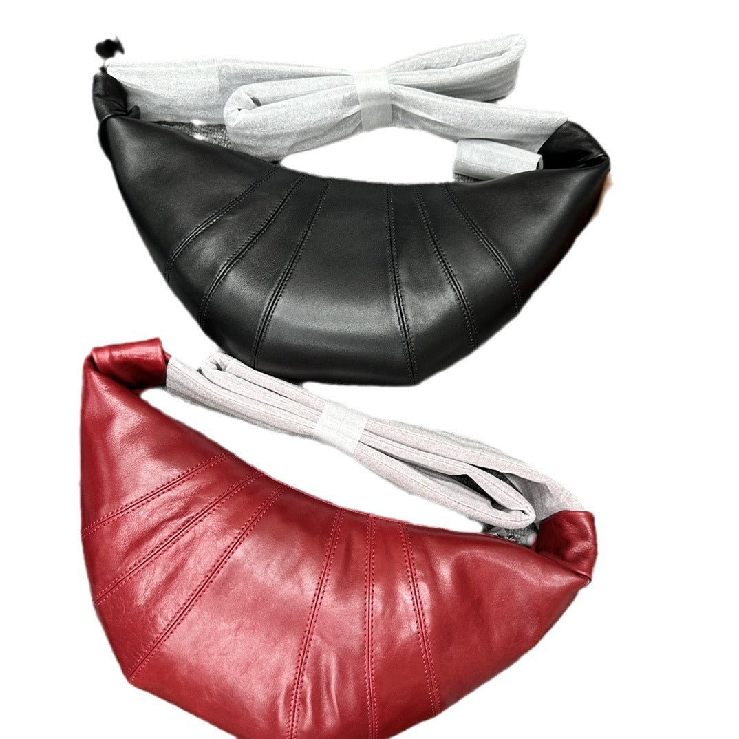 L家牛角包小众羊皮可颂包休闲饺子包真皮小号斜挎流浪胸包 批发