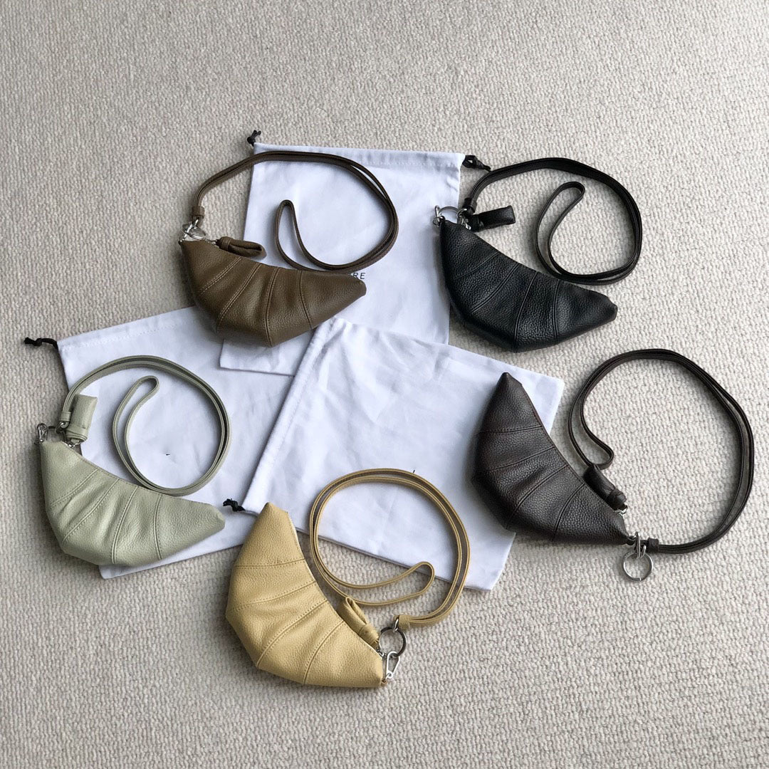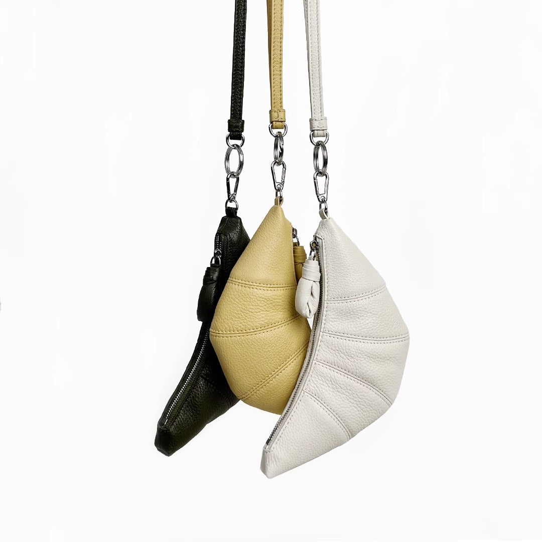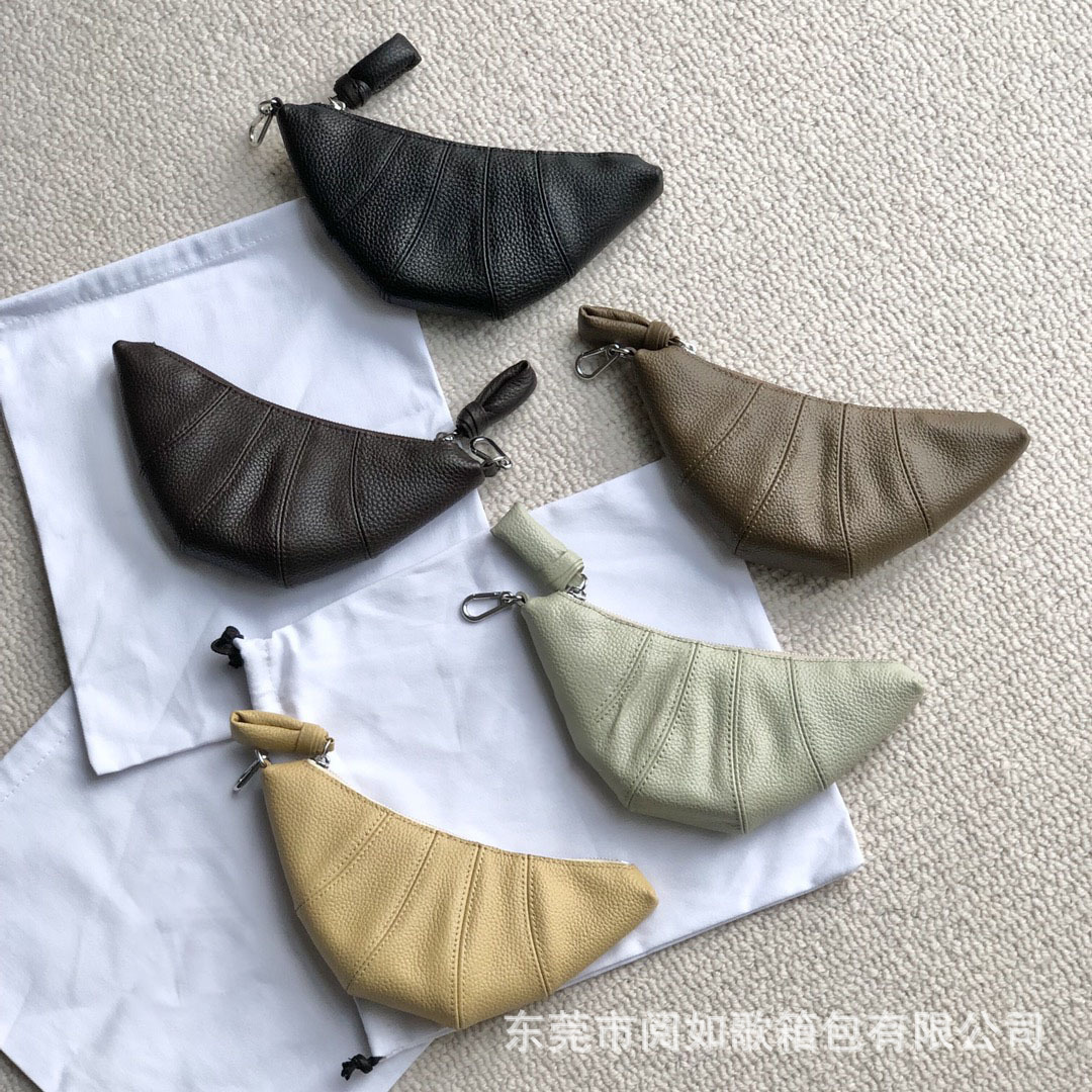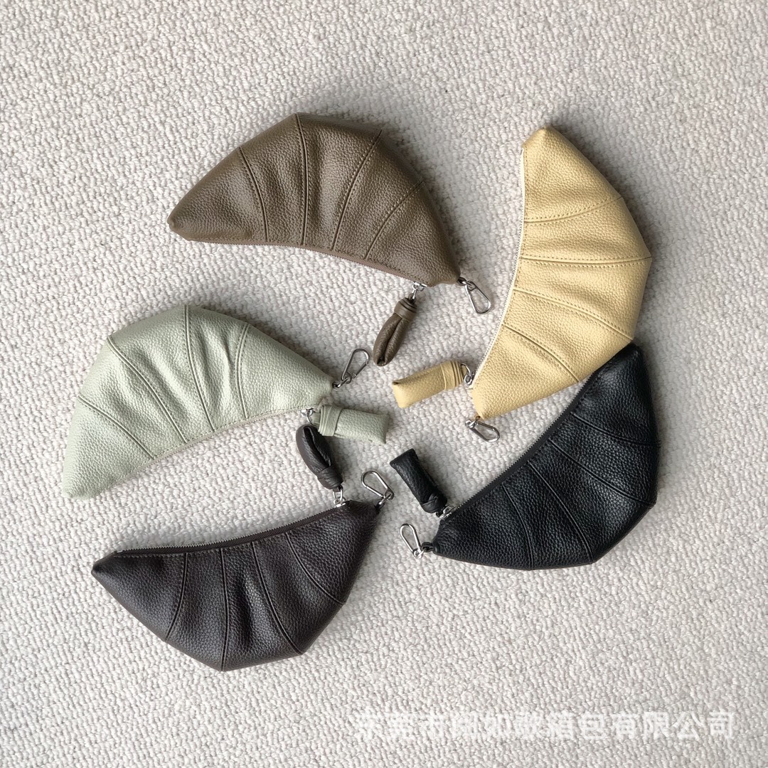LE迷你挂脖牛角包钥匙零钱包头层牛皮可颂包单肩斜挎挂腰饺子包