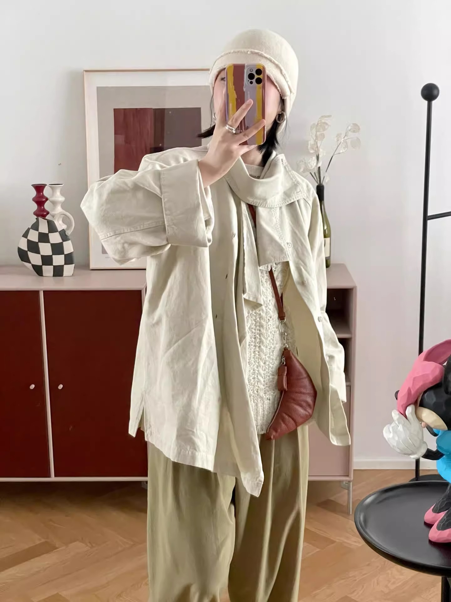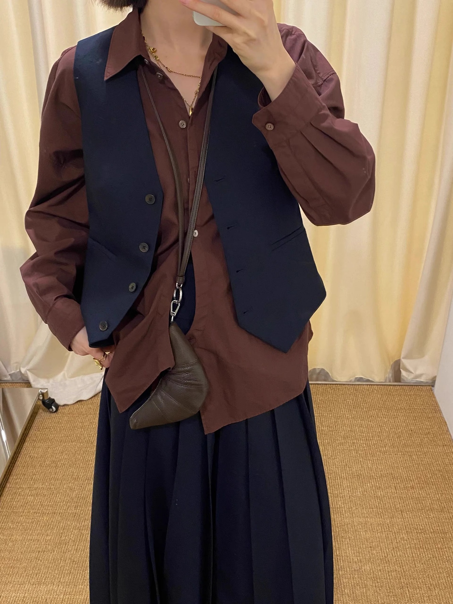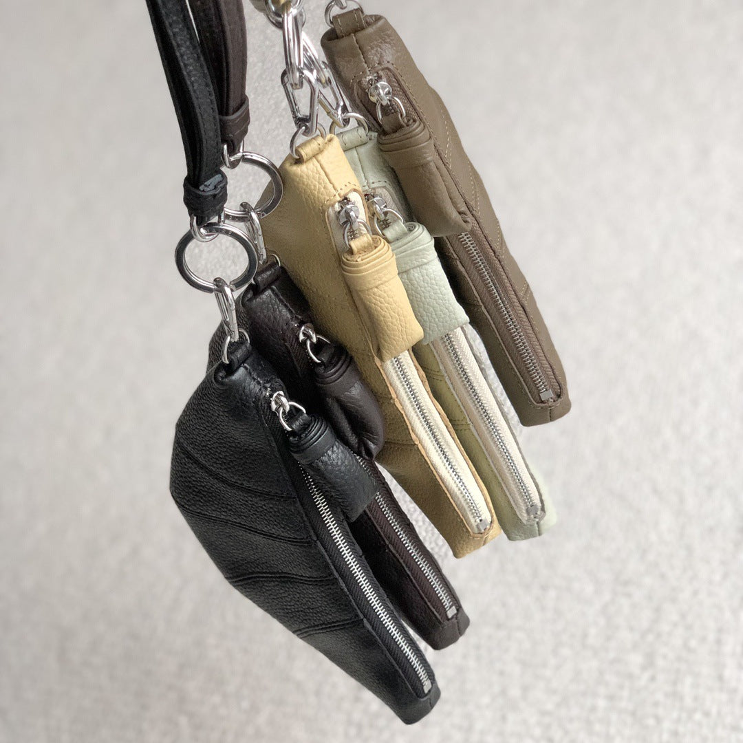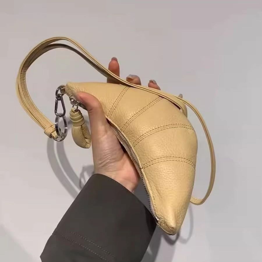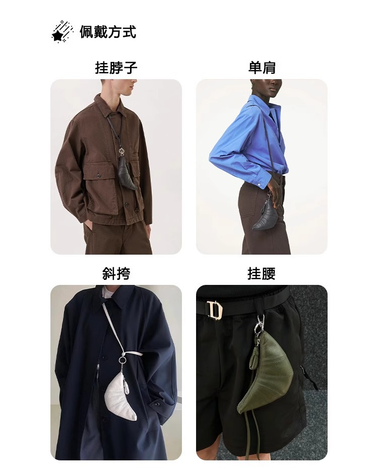LE迷你挂脖牛角包钥匙零钱包头层牛皮可颂包单肩斜挎挂腰饺子包