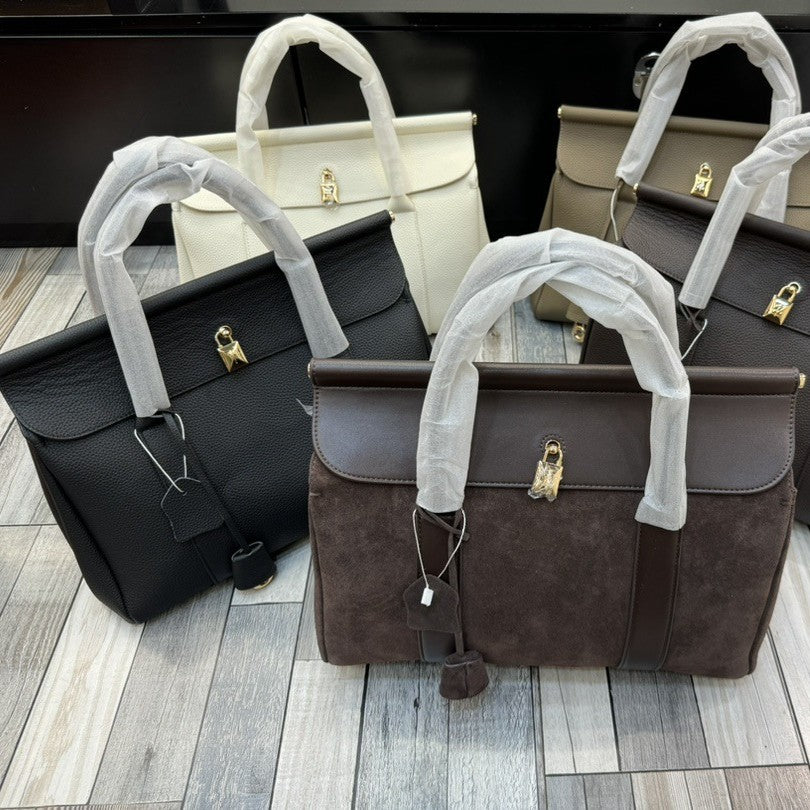 LP同款手袋手拎包帆布拼皮老钱风大容量单肩手提通勤托特公文包包