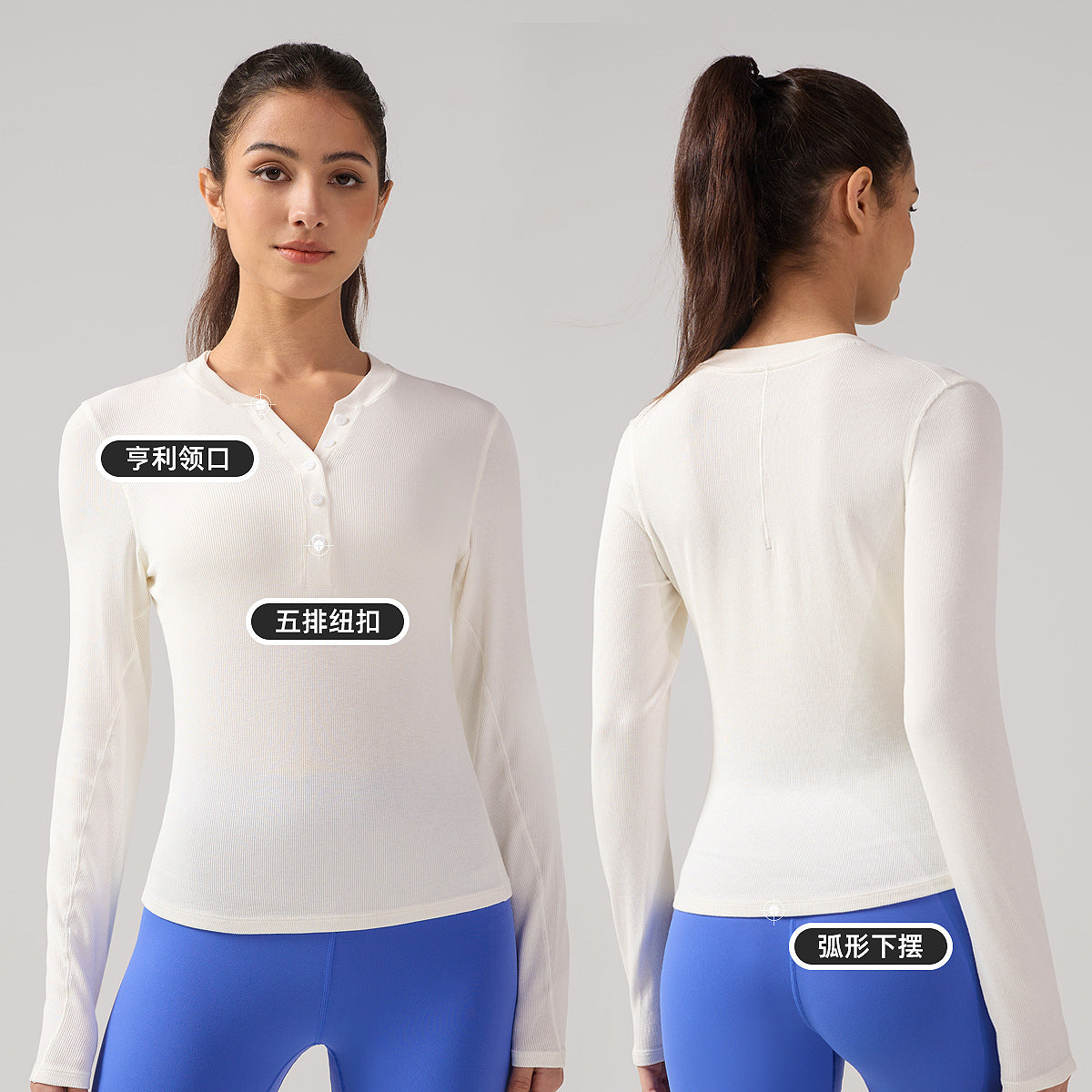lulu亨利领瑜伽T恤女弹力修身上衣吸湿排汗跑步健身长袖运动短袖