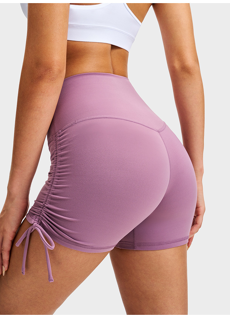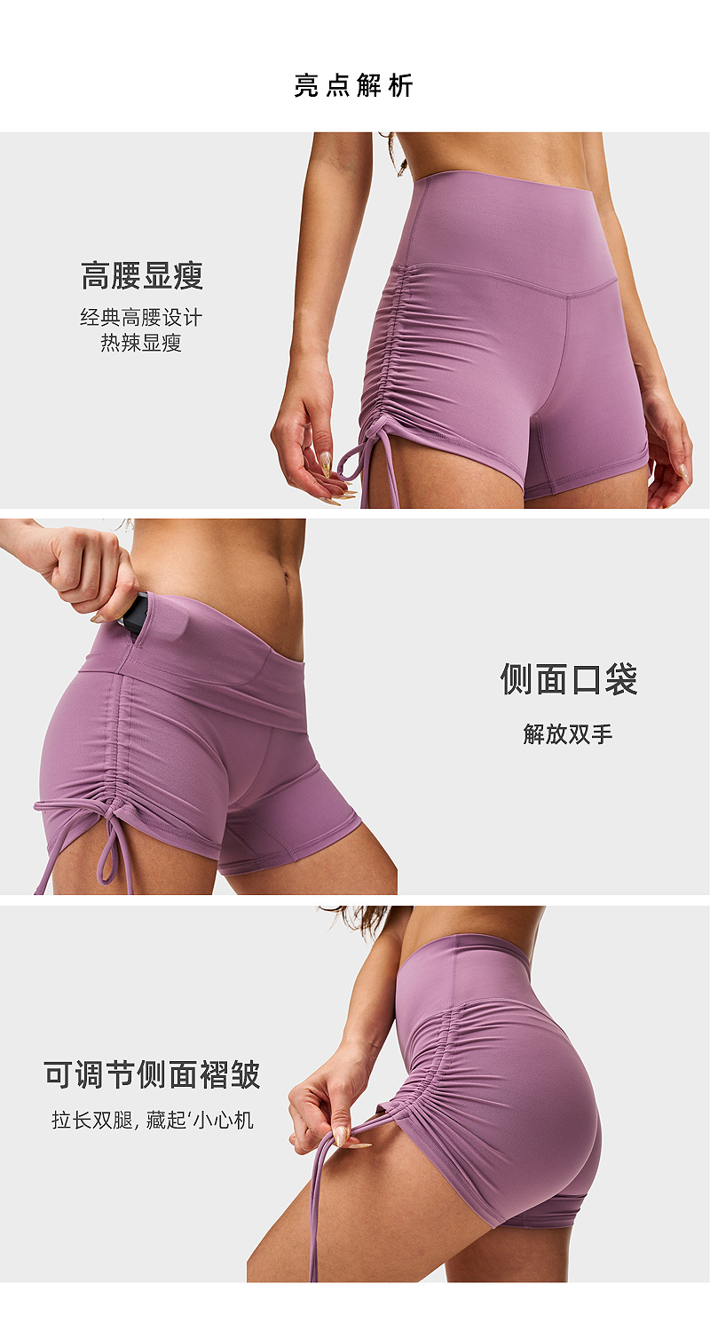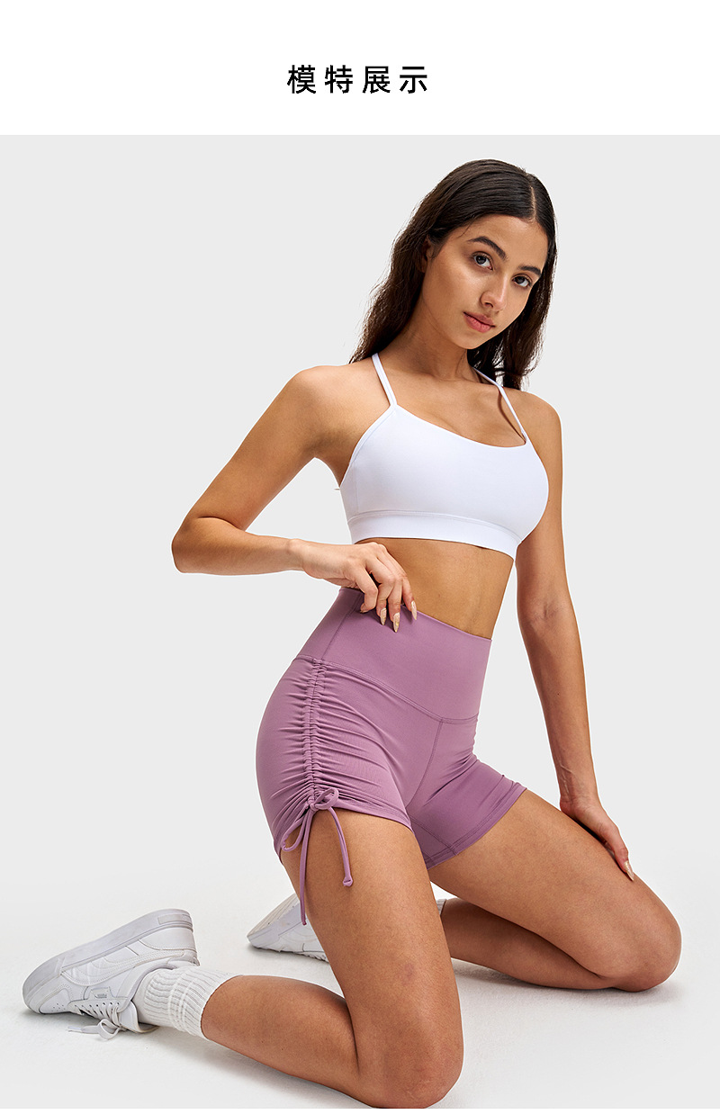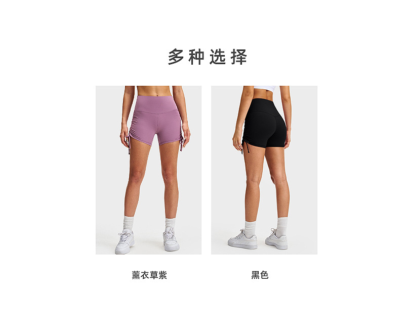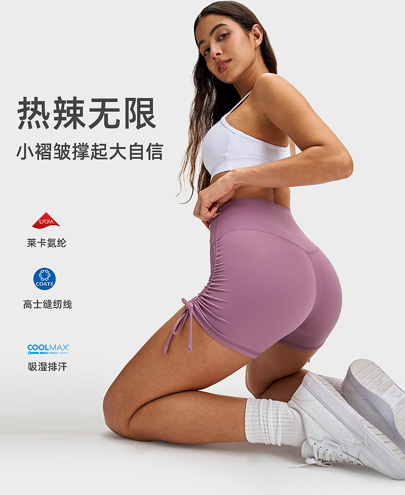 lulu瑜伽三分裤女裸感抽绳骑行热裤高腰提臀健身弹力运动紧身短裤