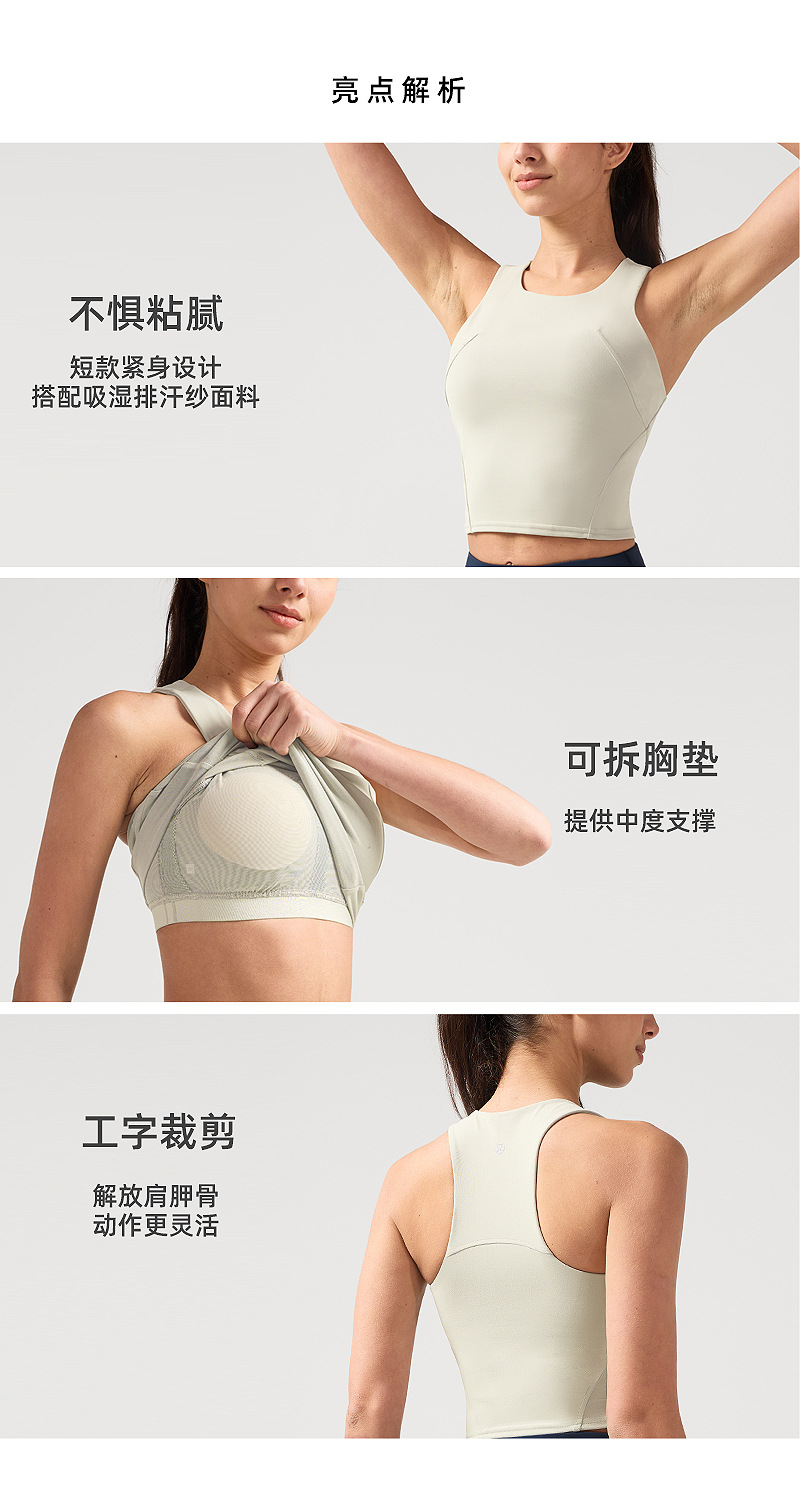 lulu瑜伽背心女圆领带胸垫健身上衣高强度防震聚拢收副乳运动背心