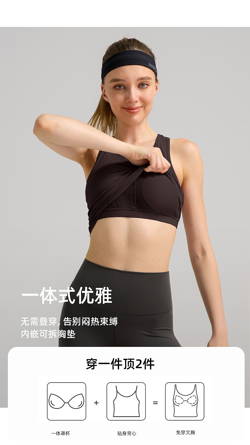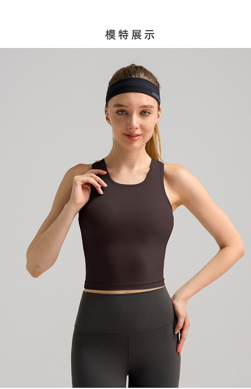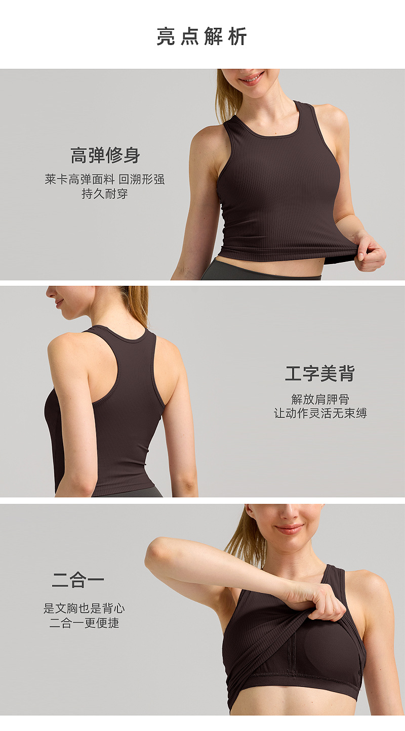 lulu短款工字运动背心女士带胸垫莱卡瑜伽服罗纹透气速干健身上衣