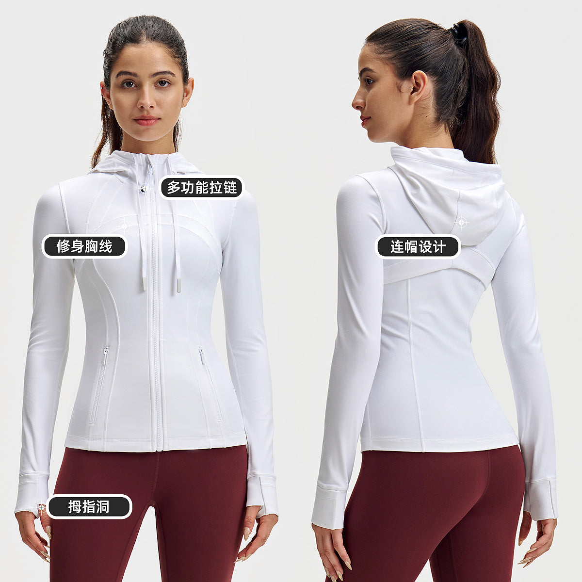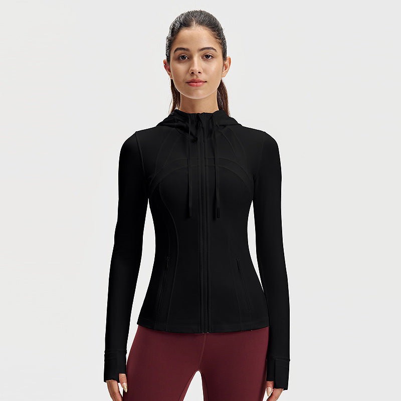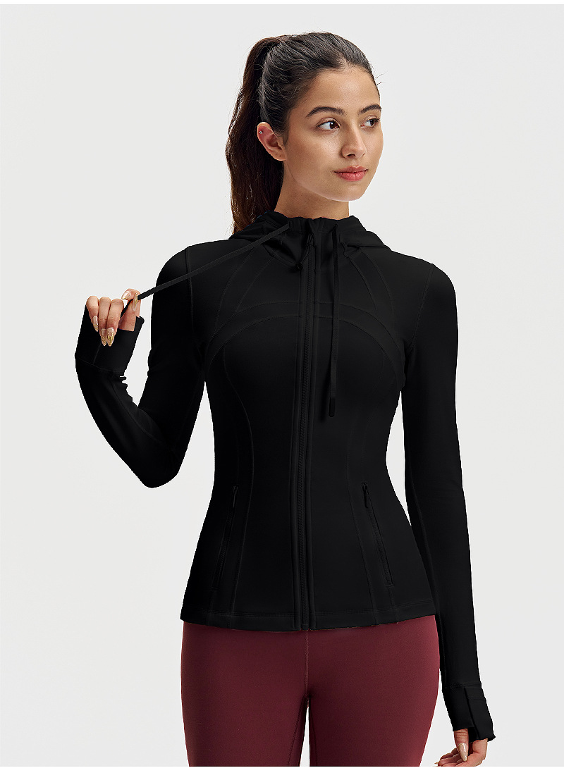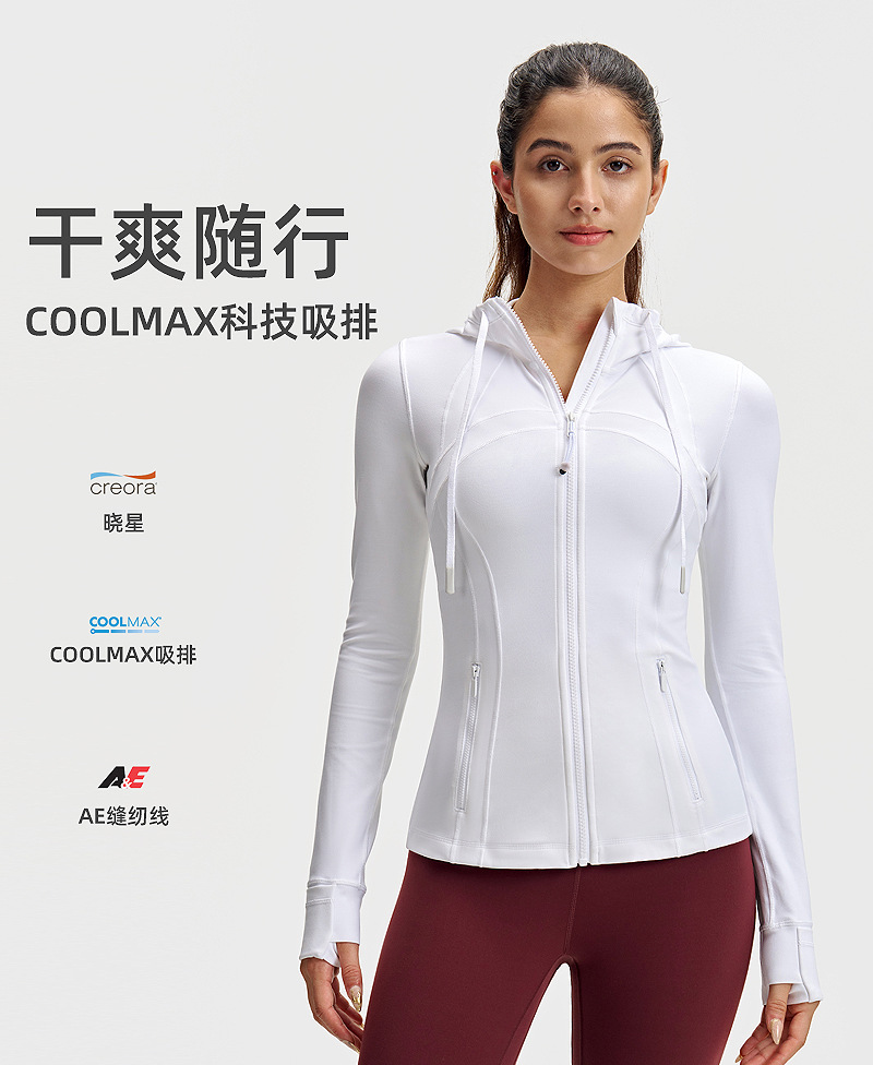 lulu连帽瑜伽服女修身显瘦拉链上衣速干健身服长袖户外运动外套