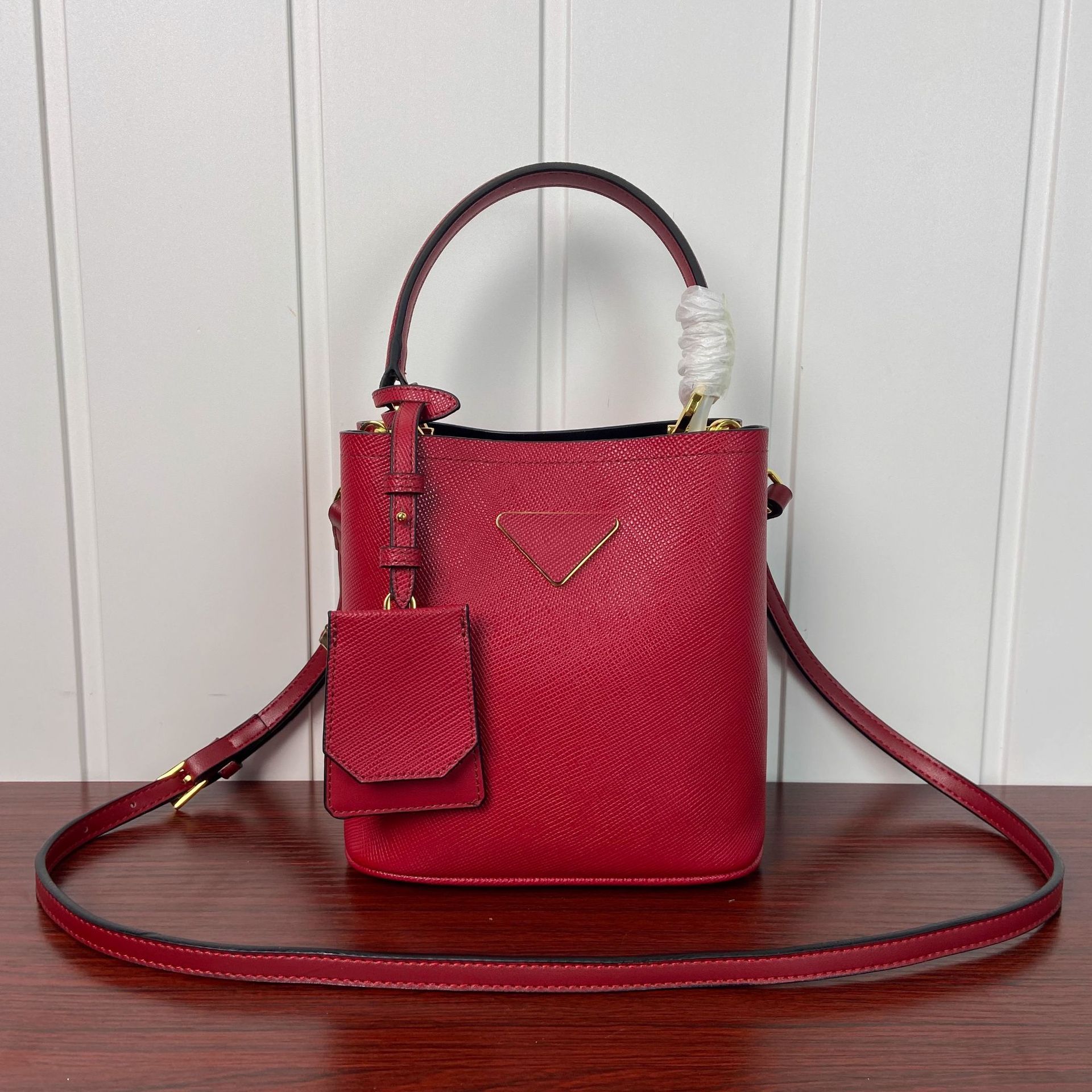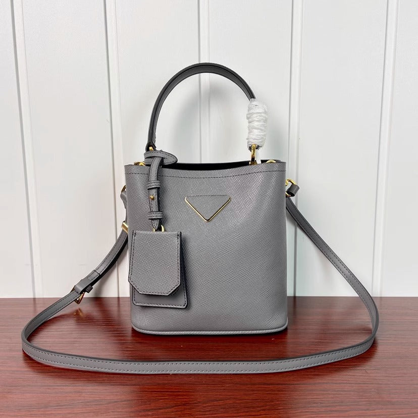 P家杀手mini水桶包韩版十字纹牛皮手提包时尚斜挎单肩包一件代发