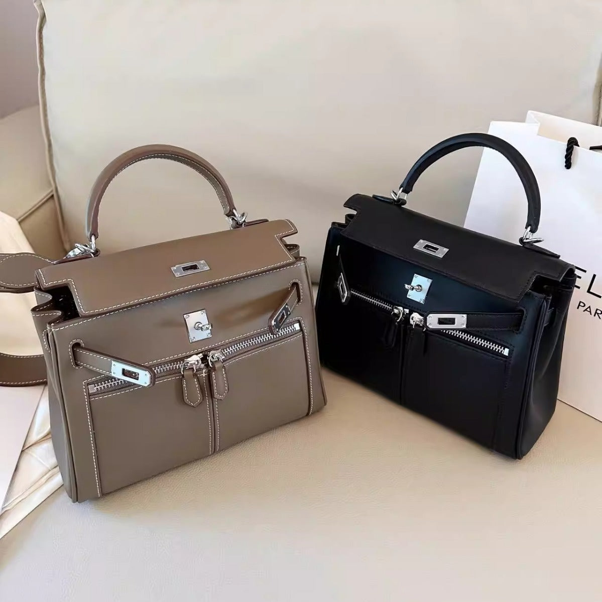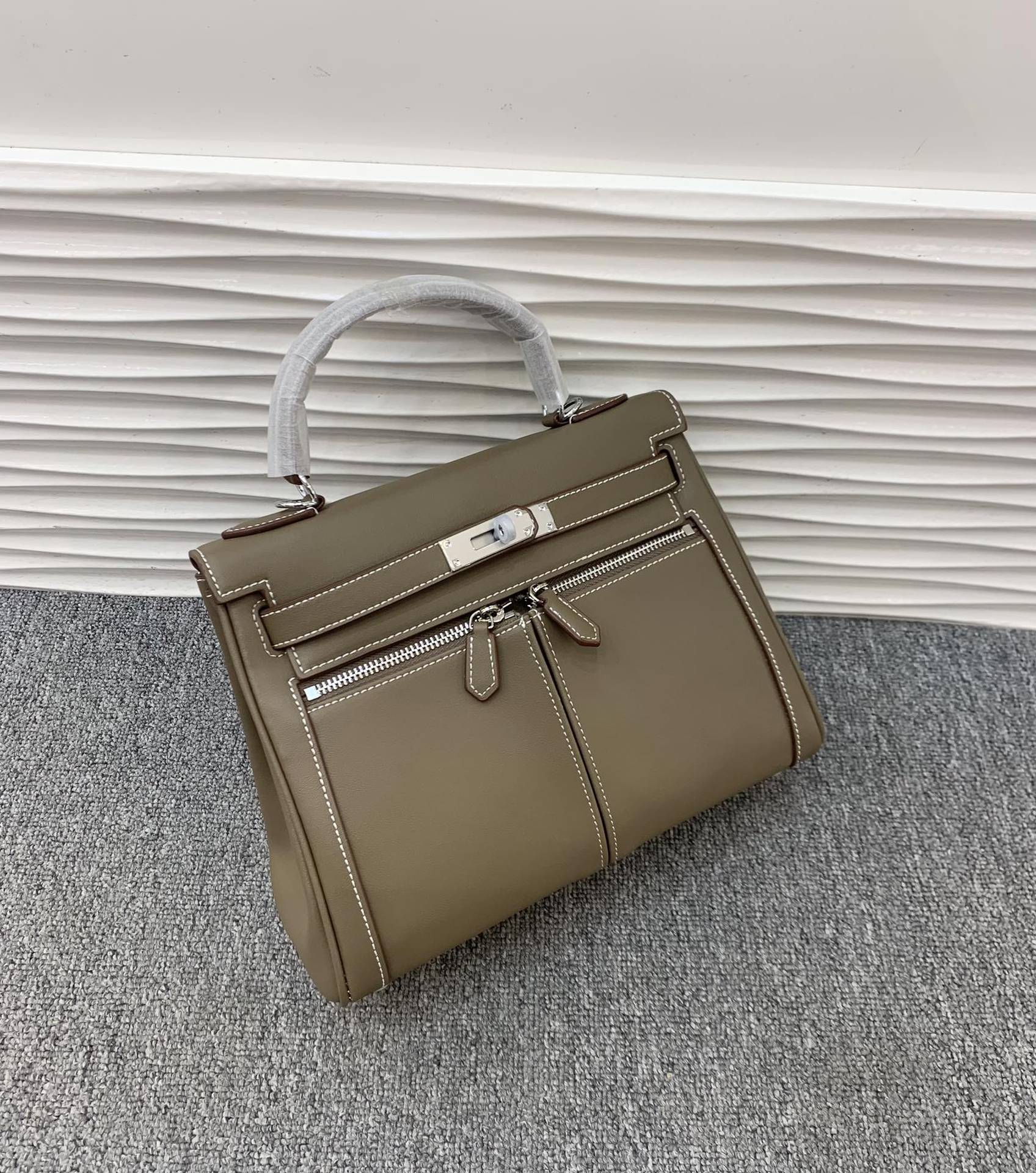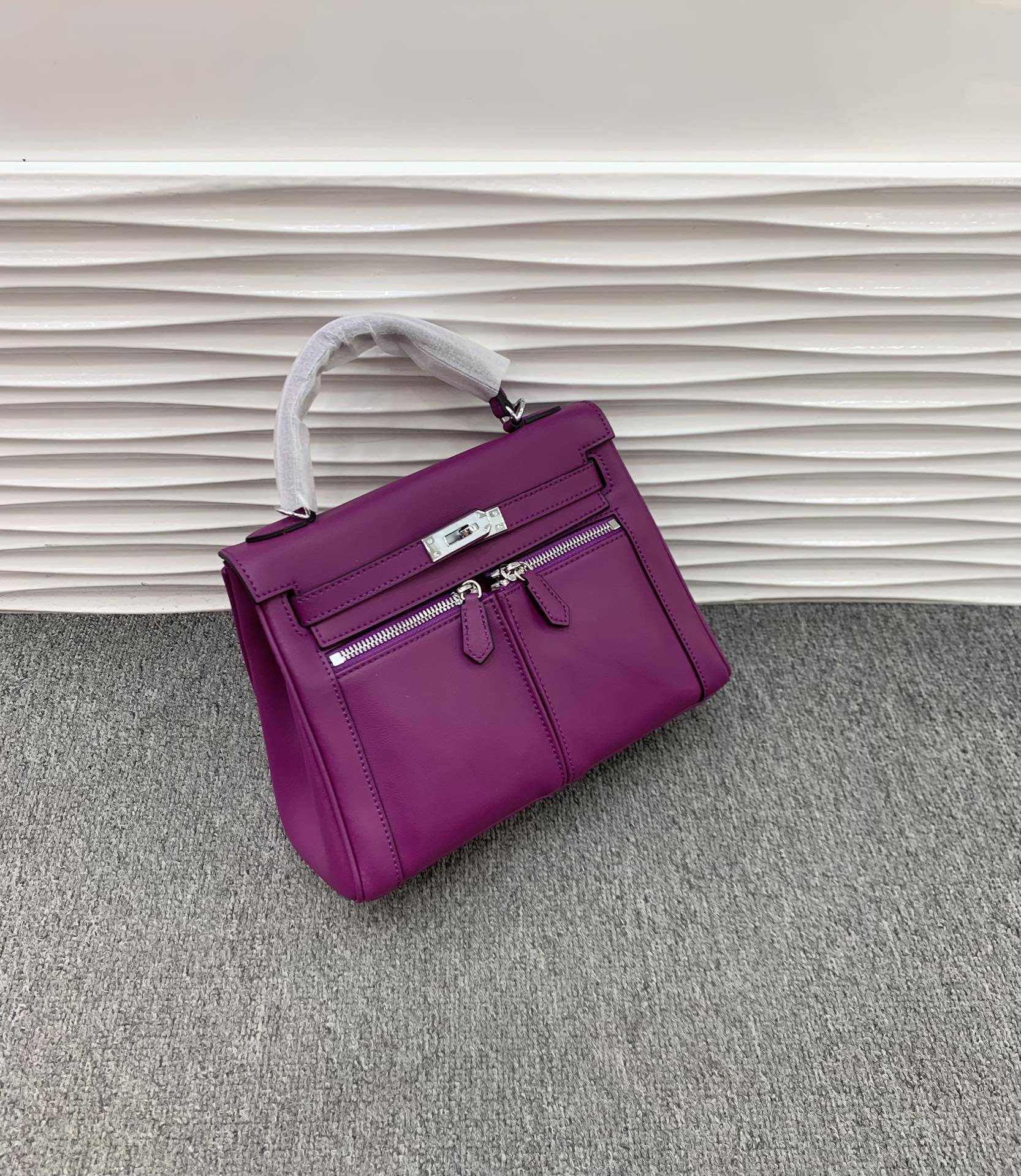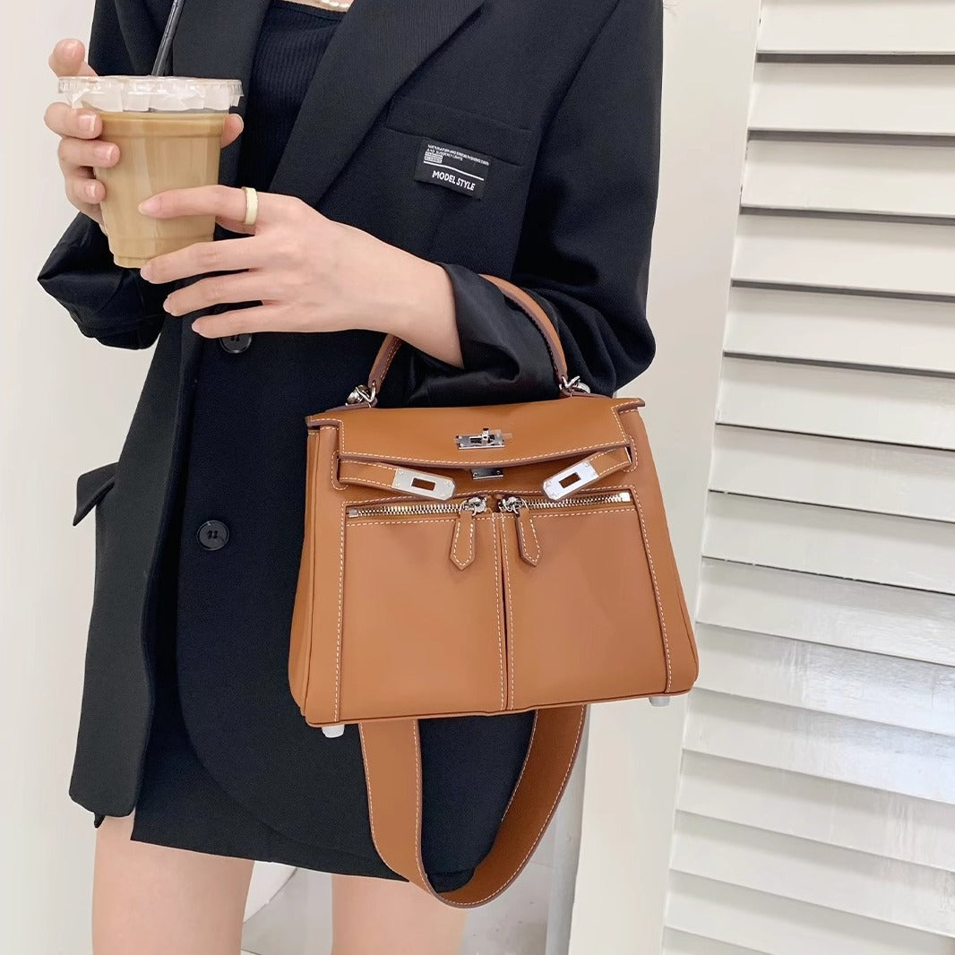 Swift皮 双口袋凯莉 lakis女高级感大容量手提包百搭通勤单肩斜挎