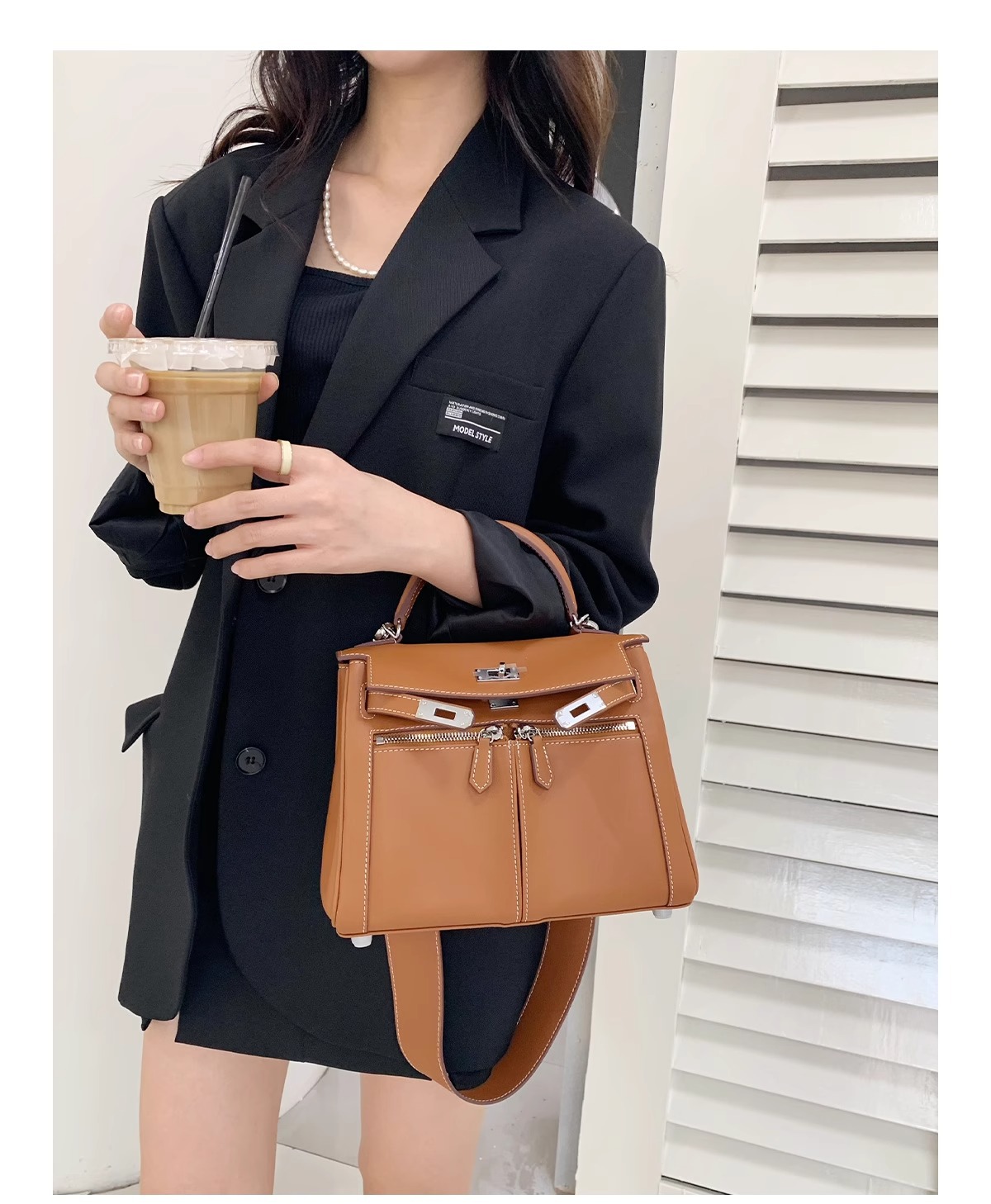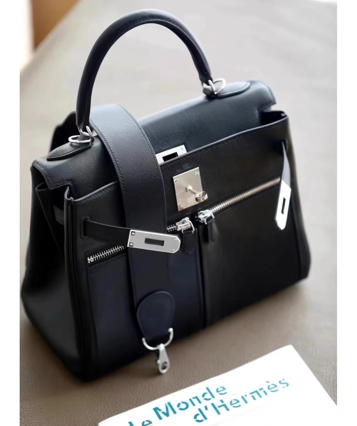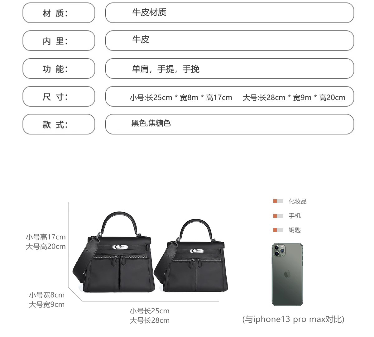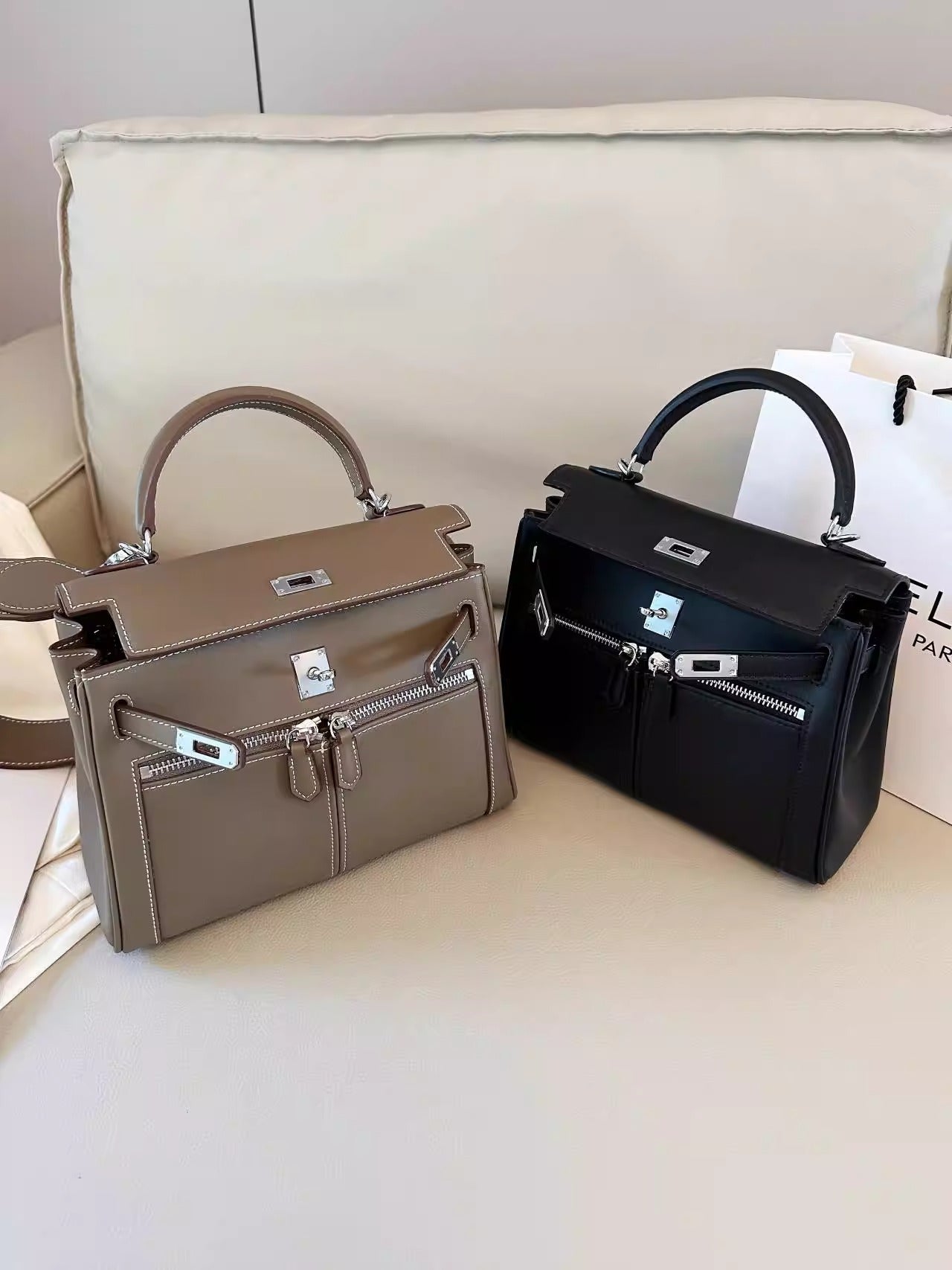 Swift皮 双口袋凯莉 lakis女高级感大容量手提包百搭通勤单肩斜挎
