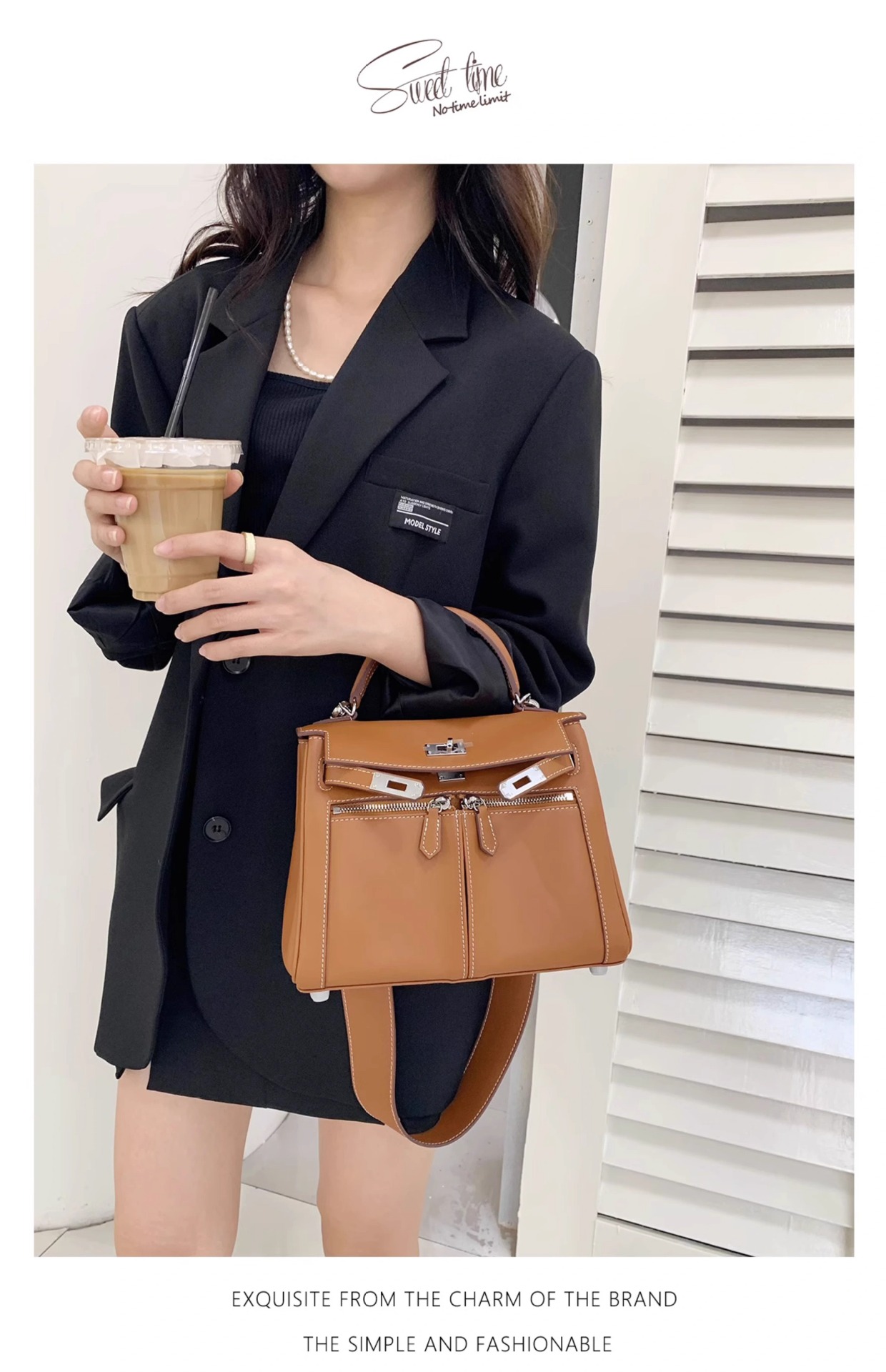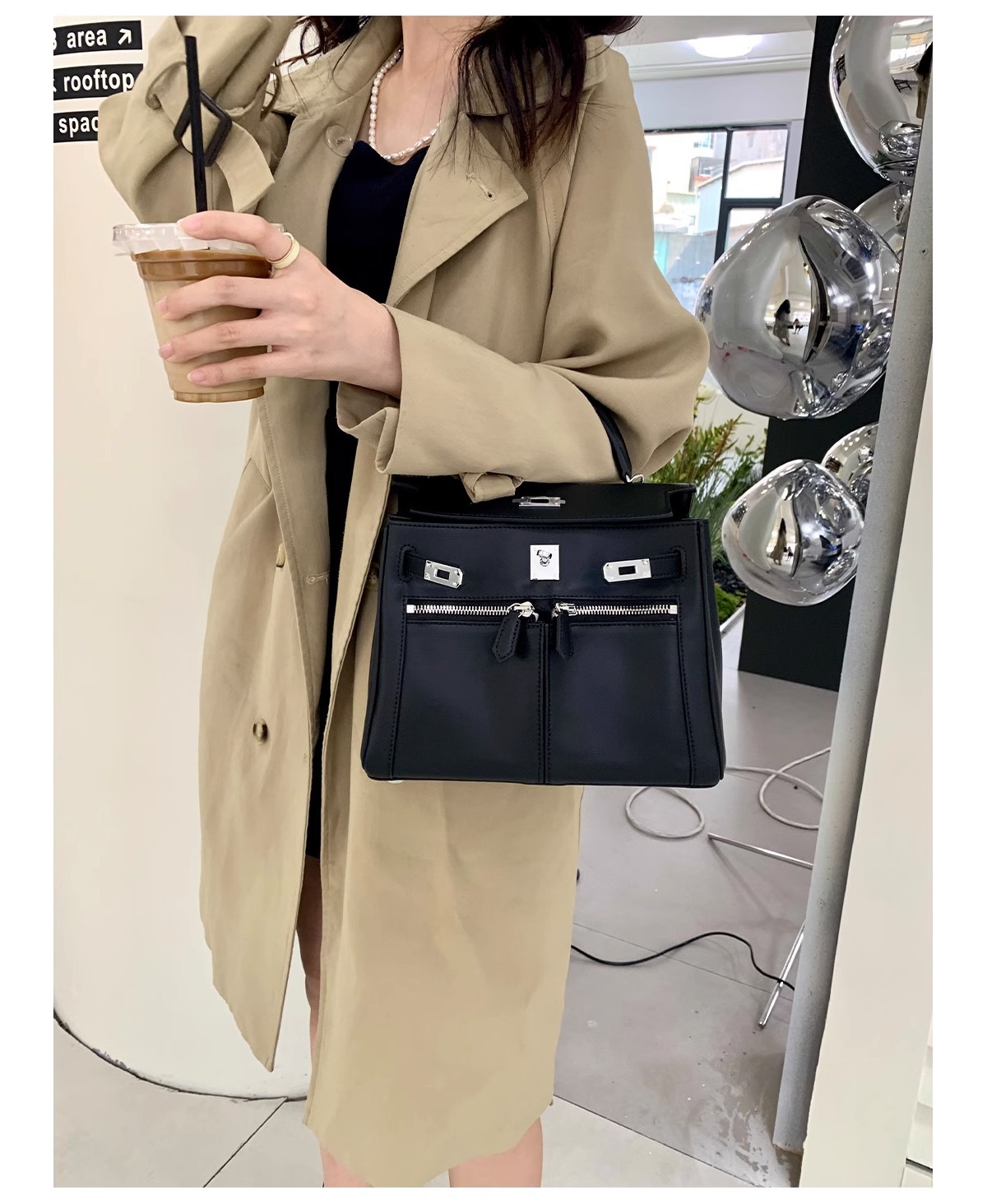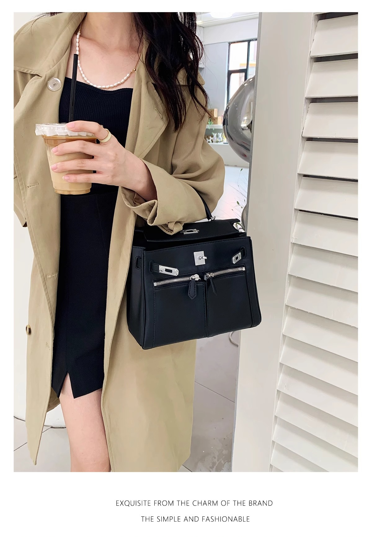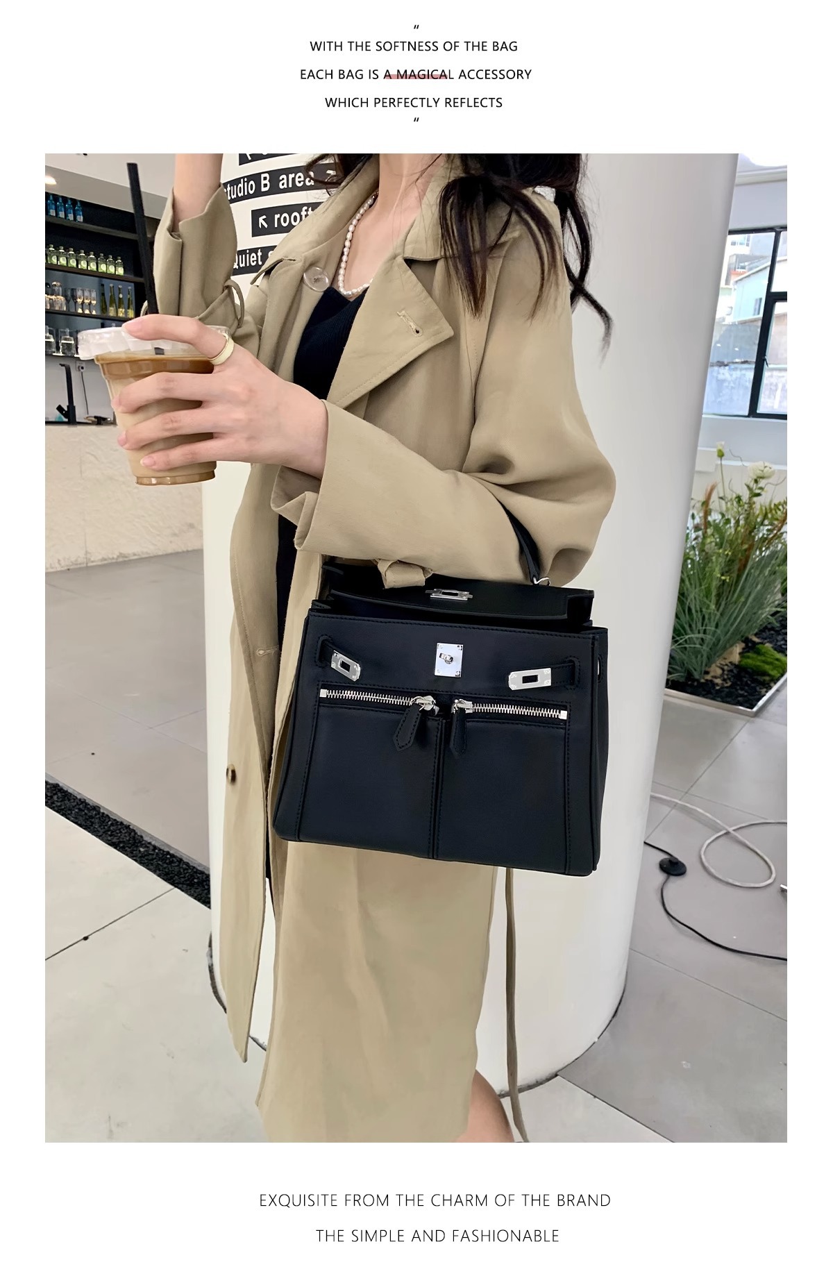 Swift皮 双口袋凯莉 lakis女高级感大容量手提包百搭通勤单肩斜挎