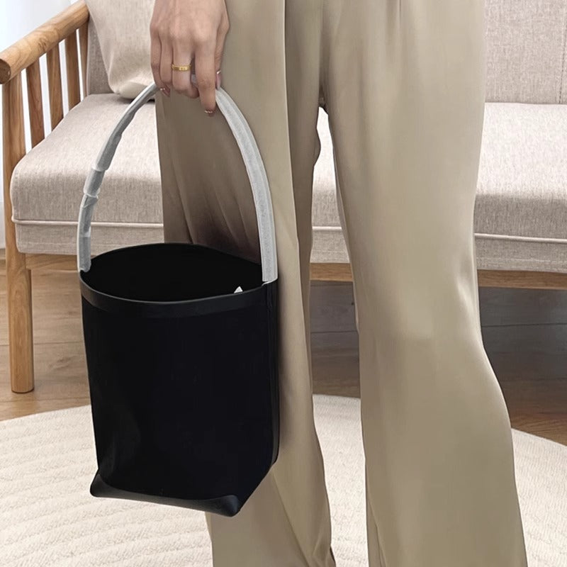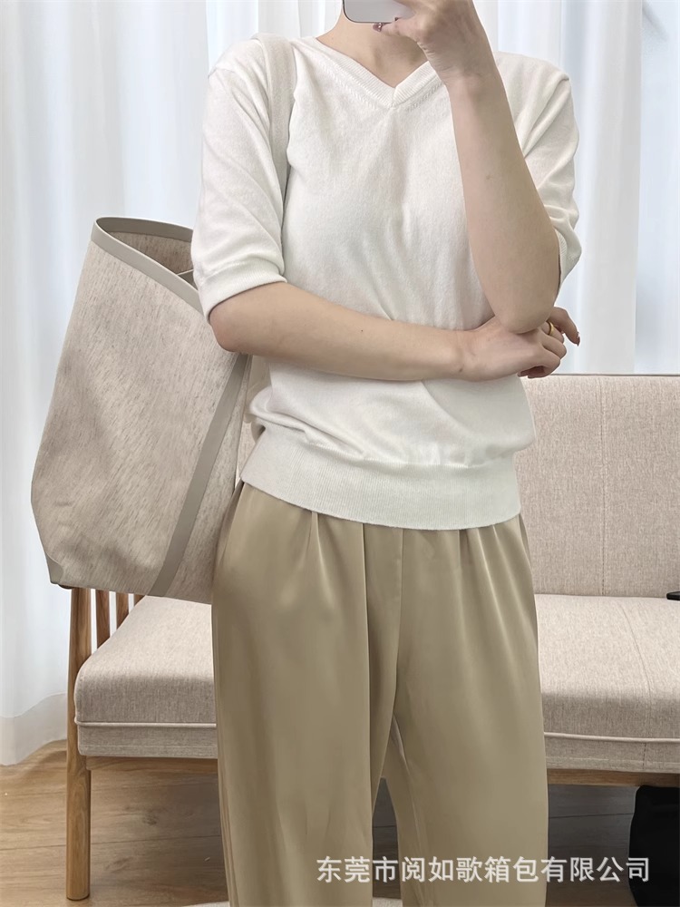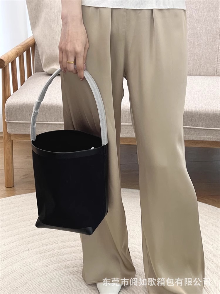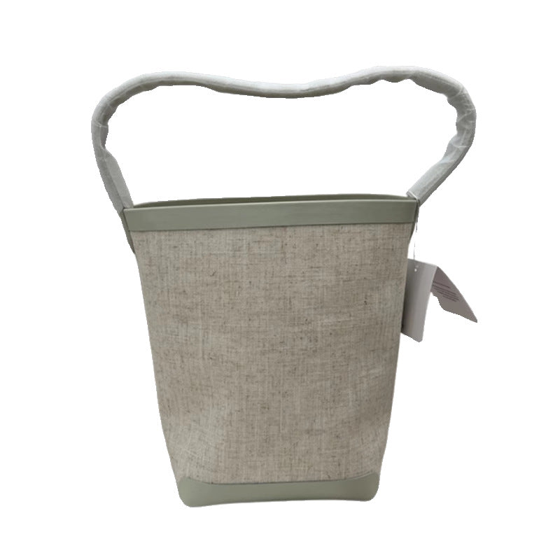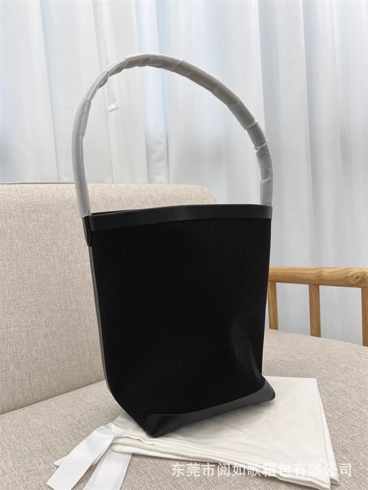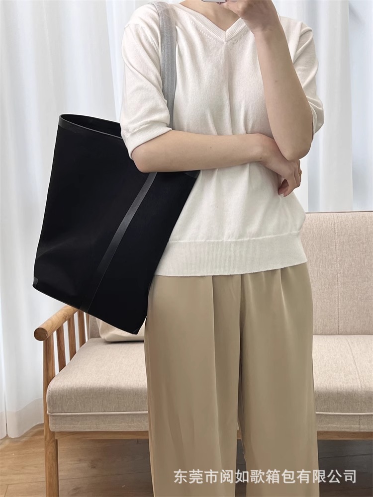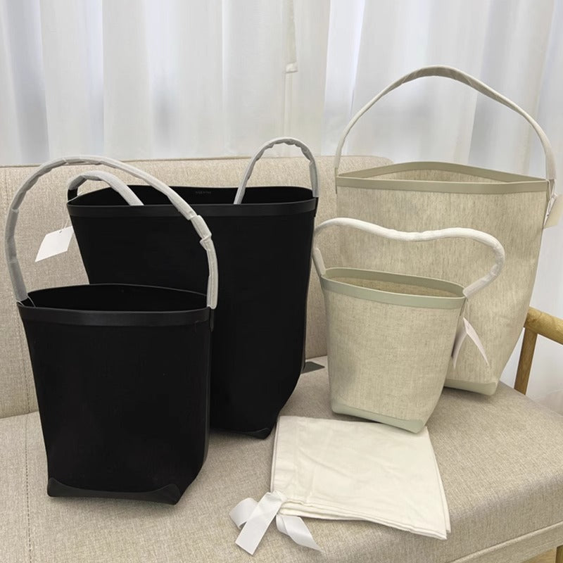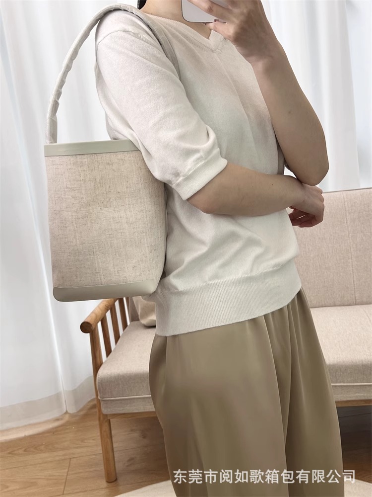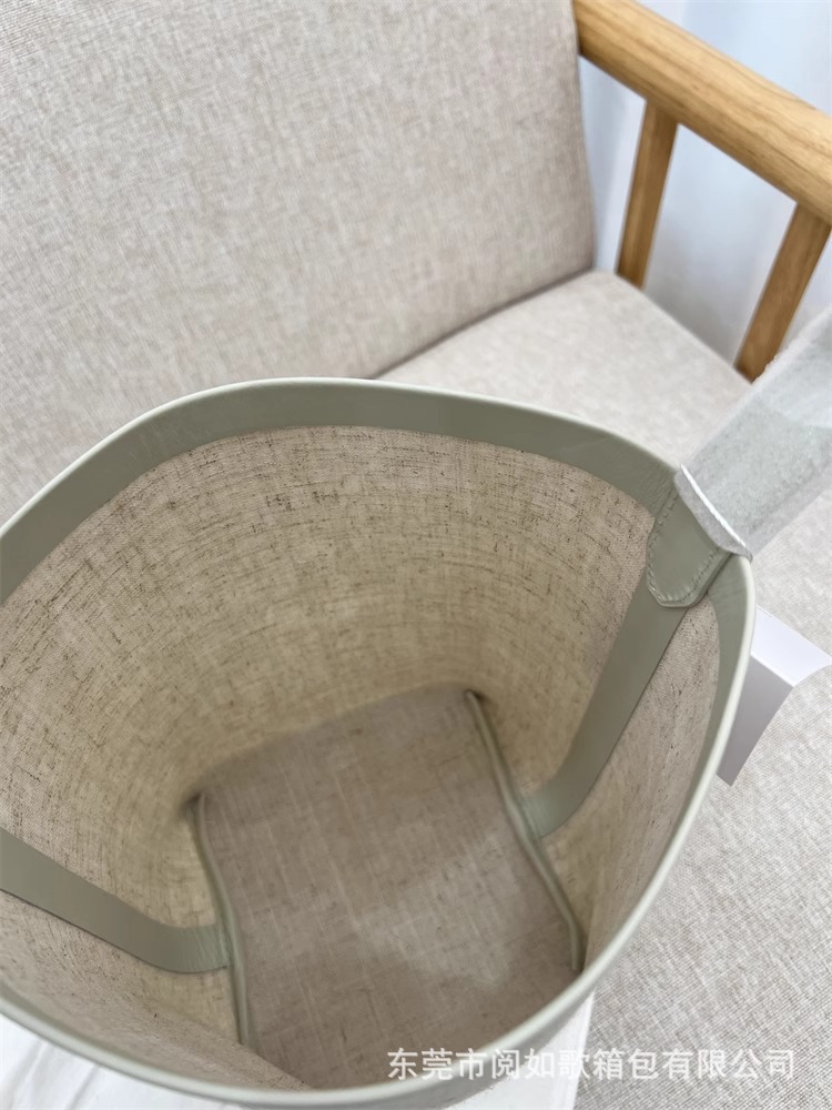 TR高定时尚休闲棉麻拼皮Tote水桶包简约大容量帆布包单肩托特包女