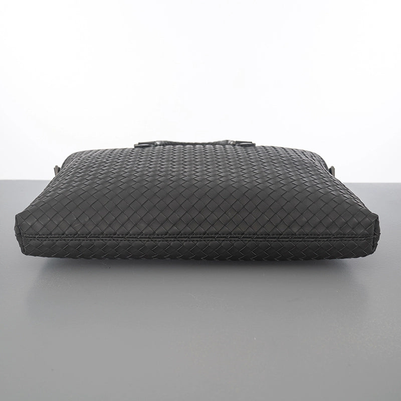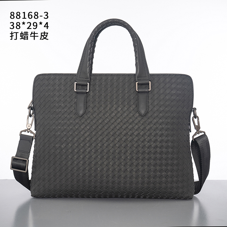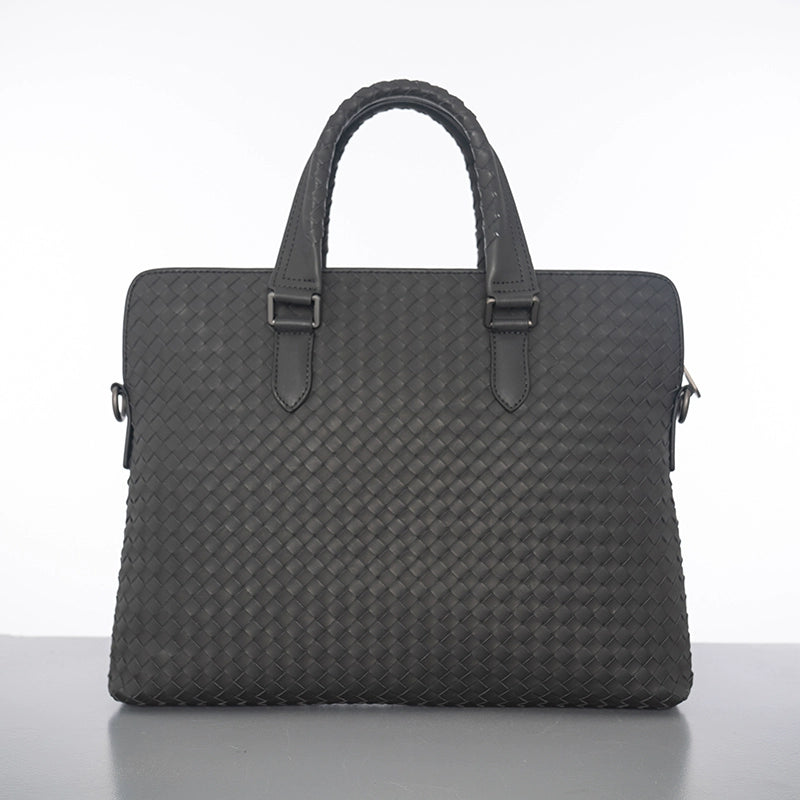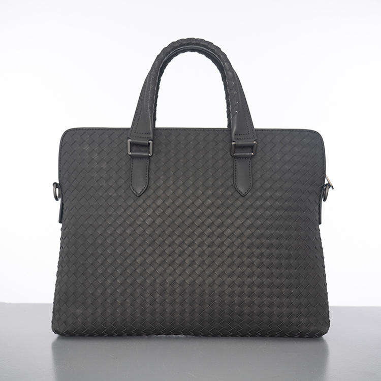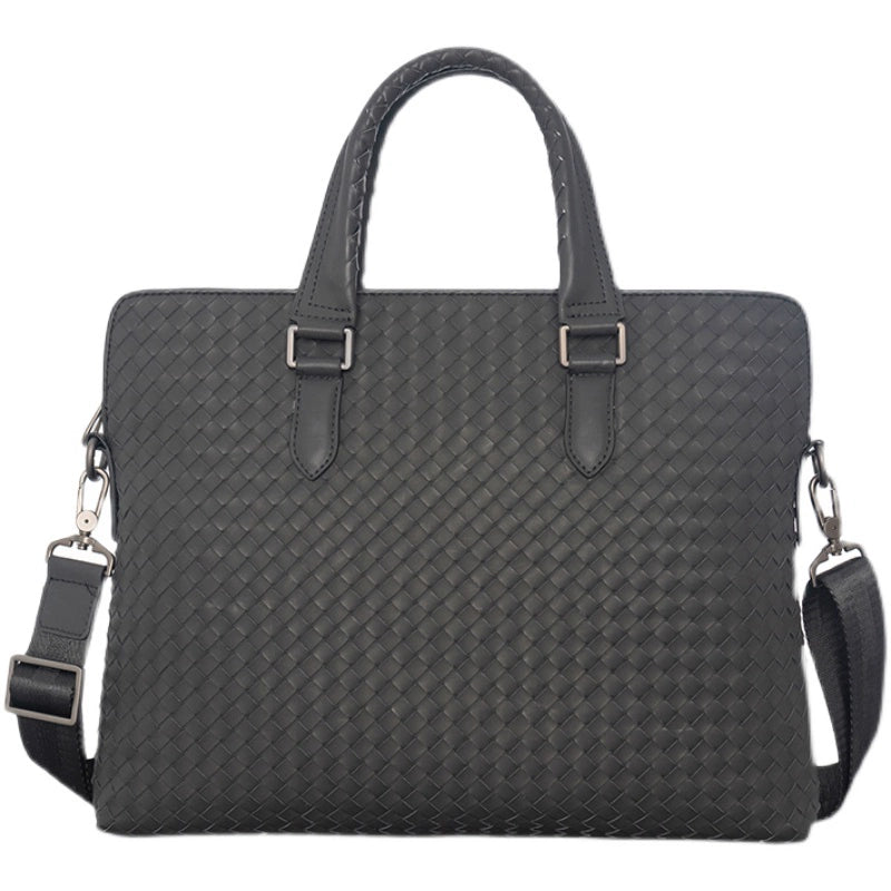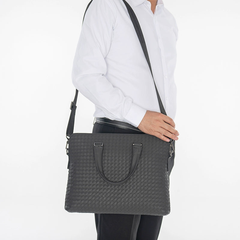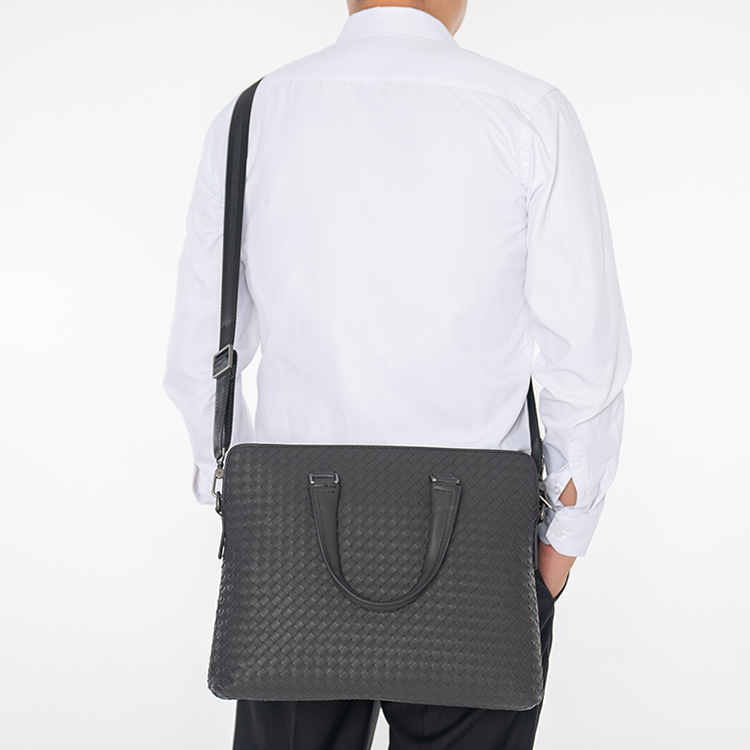 X&BV公文包男商务简约真皮手提包编织潮男士横款单肩斜挎包大容量