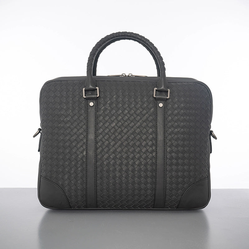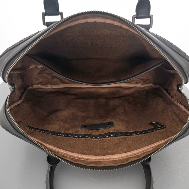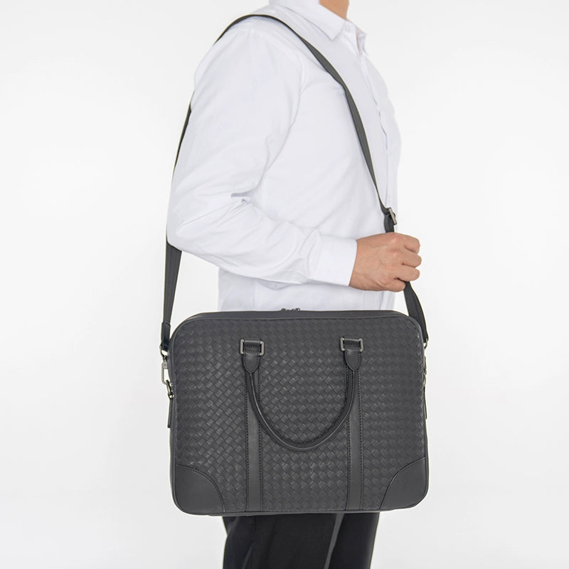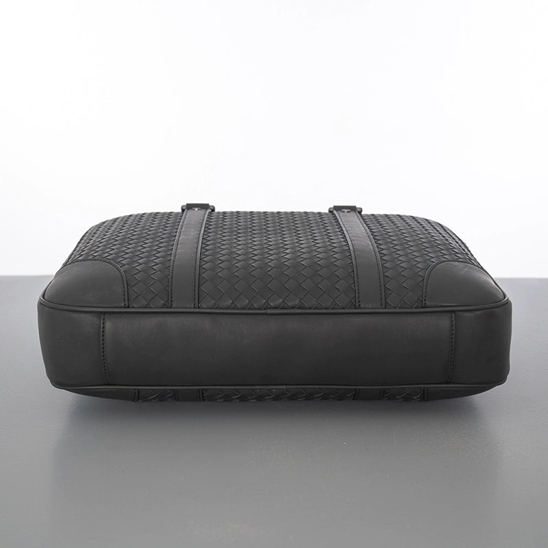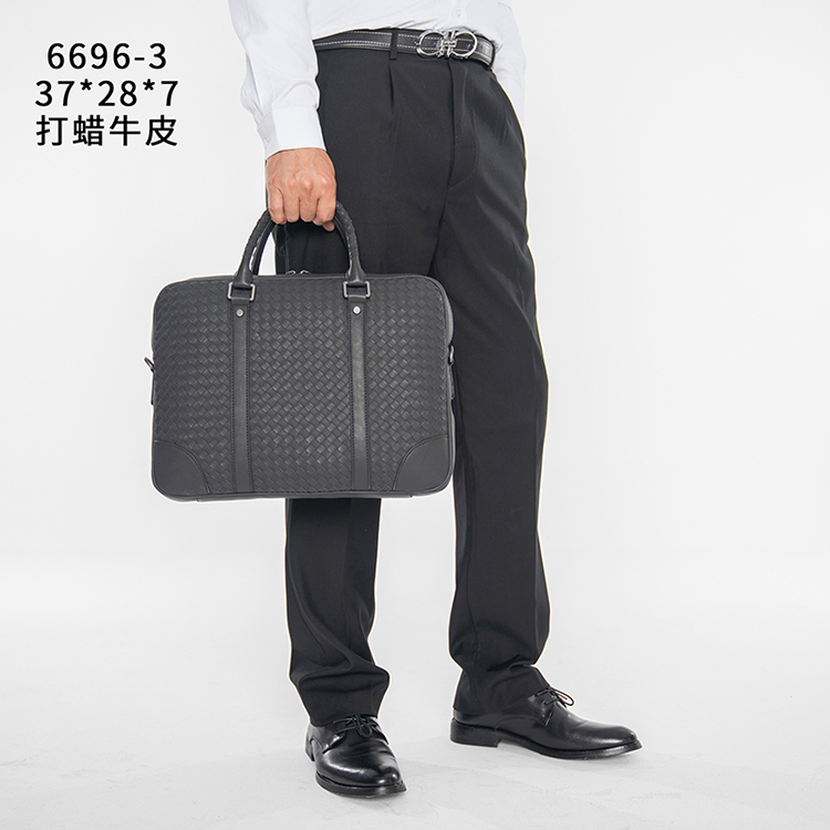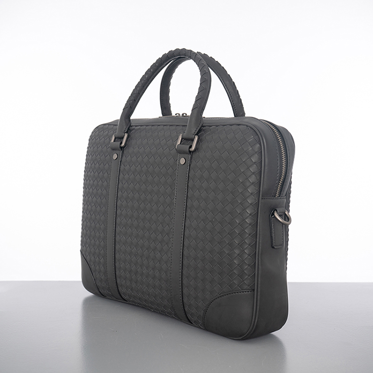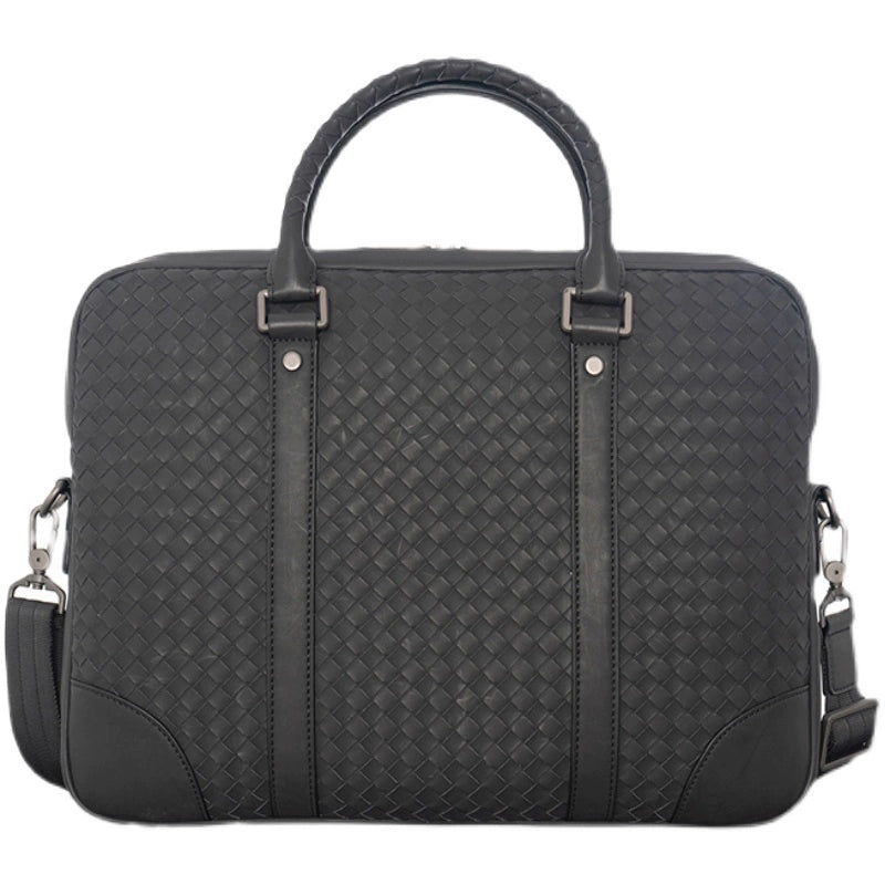 X&BV公文包男真皮横款大容量编织潮商务休闲单肩斜挎包男士手提包