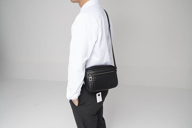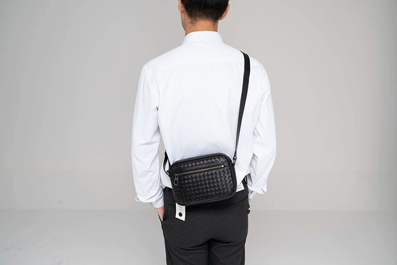 X&BV单肩包男真皮休闲商务时尚小背包潮男编织迷你男士斜挎包百搭