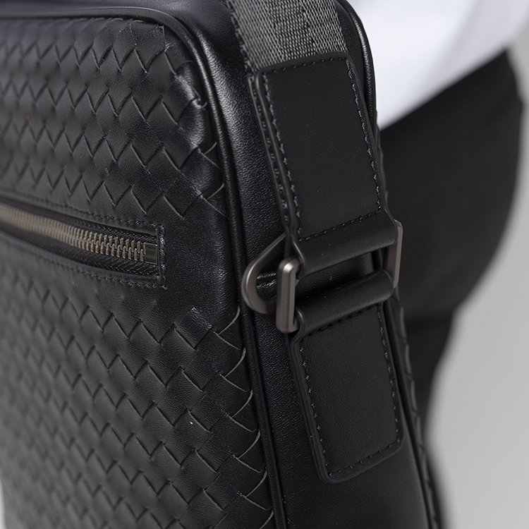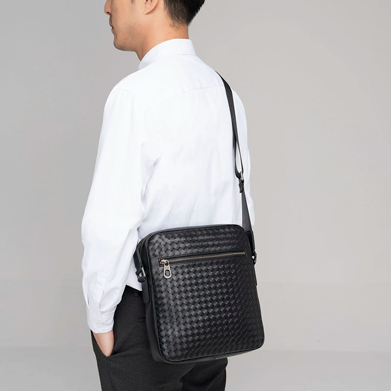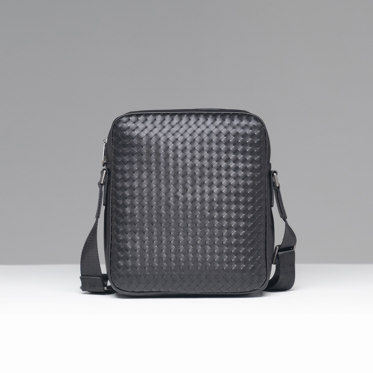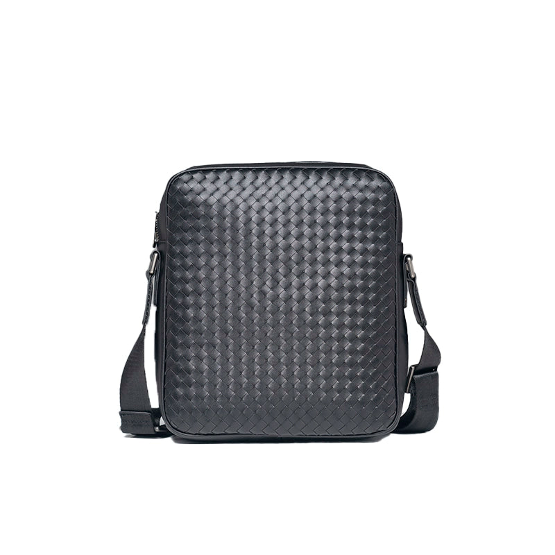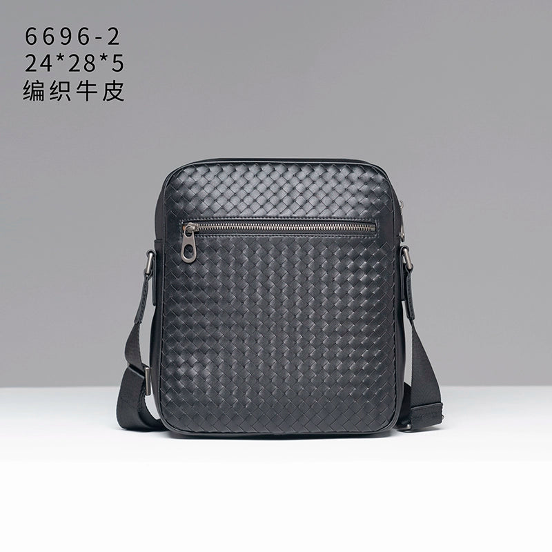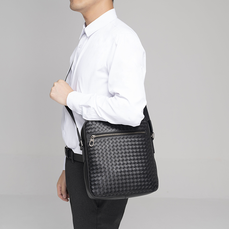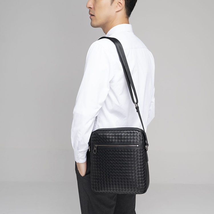 X&BV单肩包男真皮休闲时尚潮男小背包商务黑色编织平板男包斜挎包