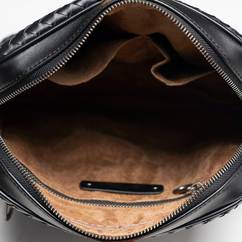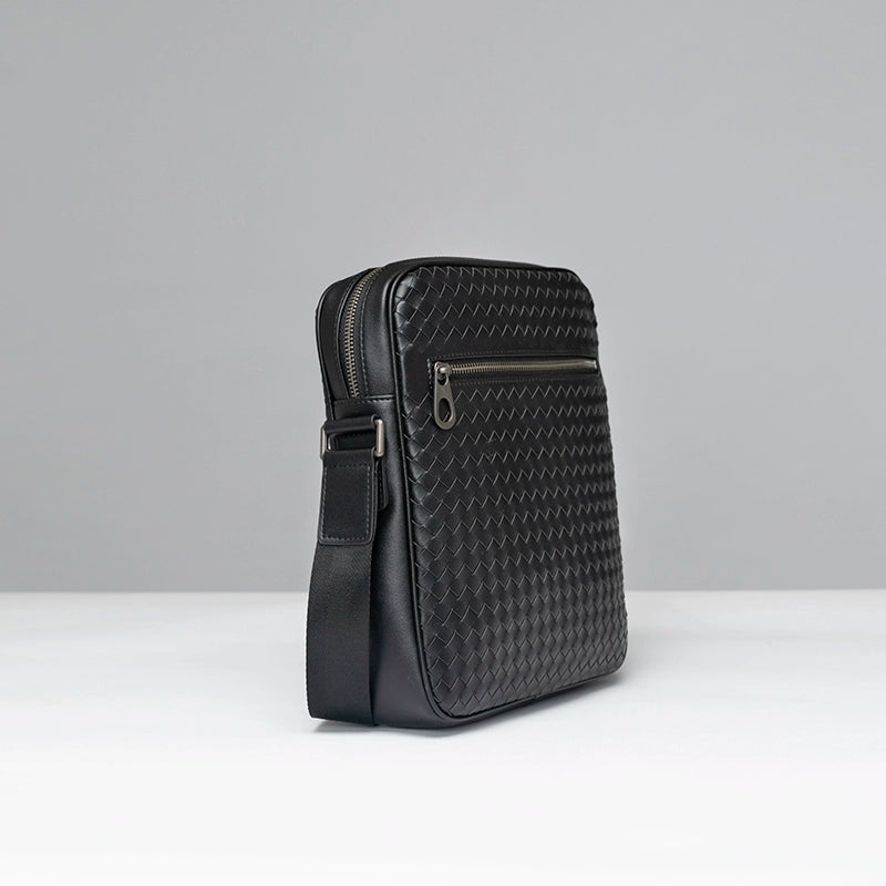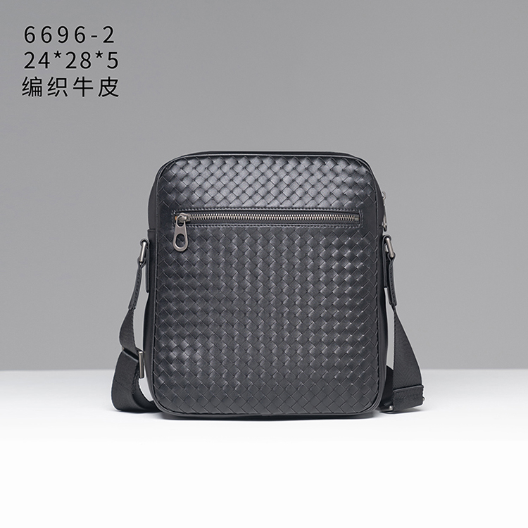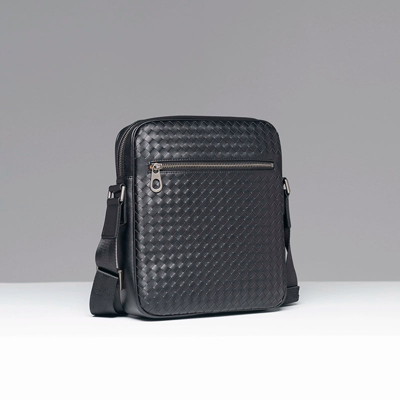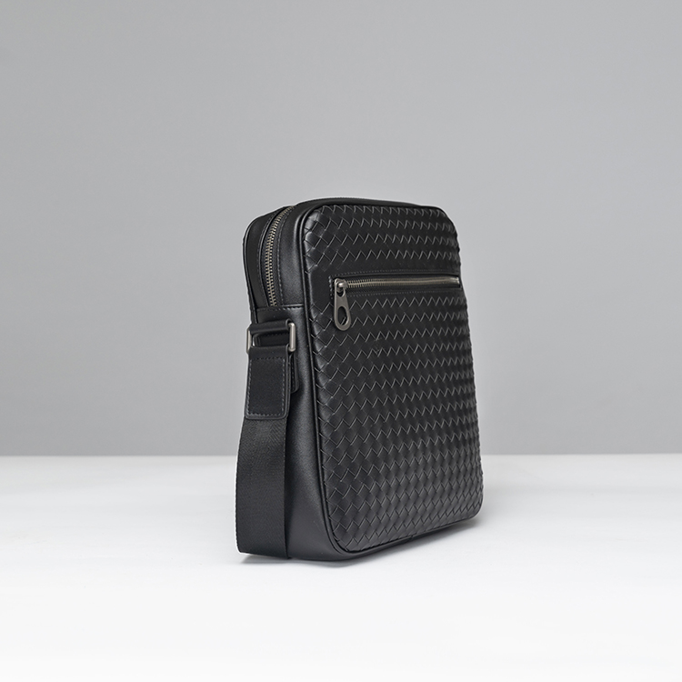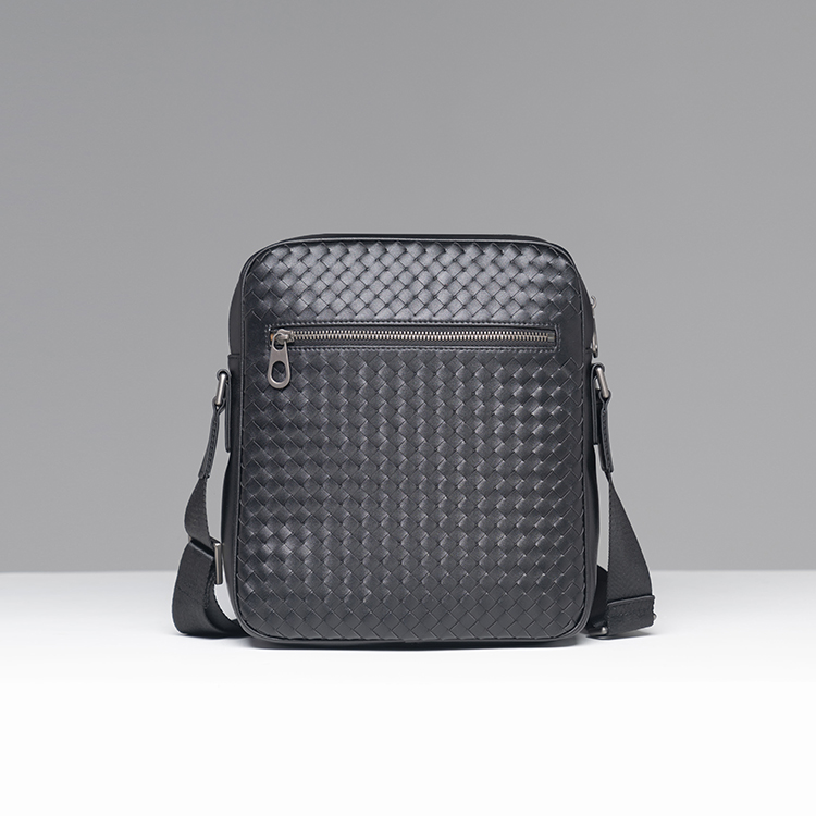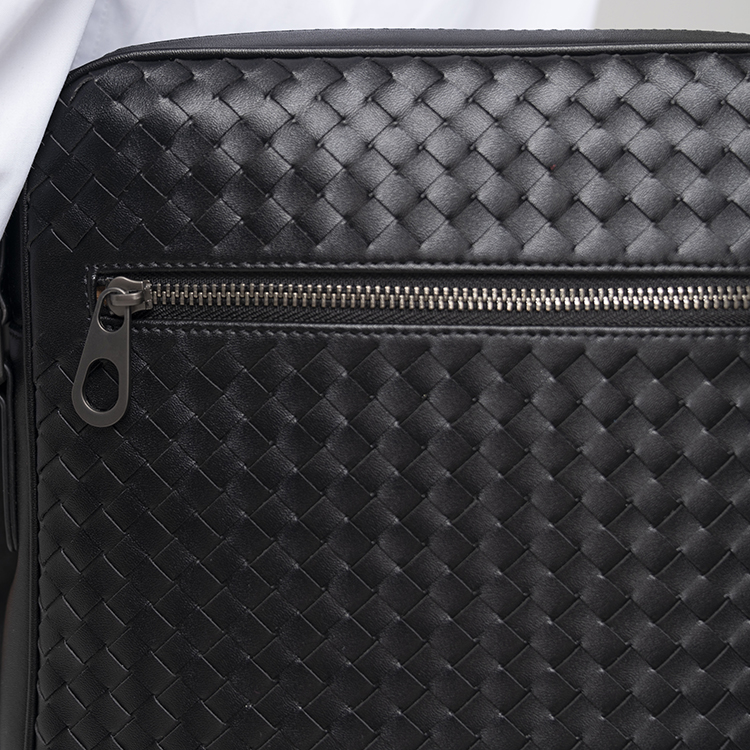 X&BV单肩包男真皮休闲时尚潮男小背包商务黑色编织平板男包斜挎包