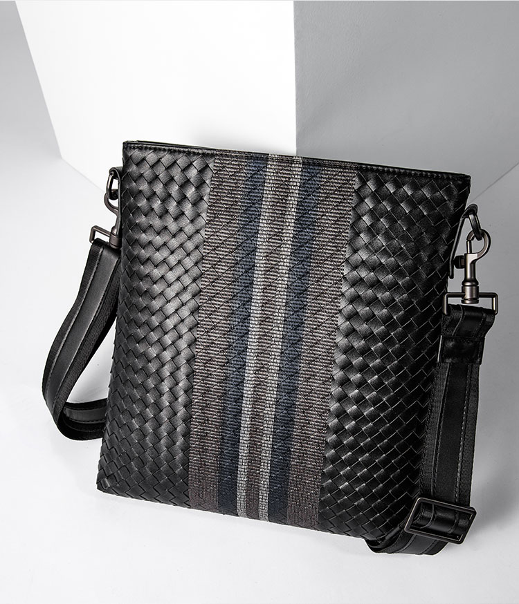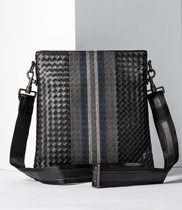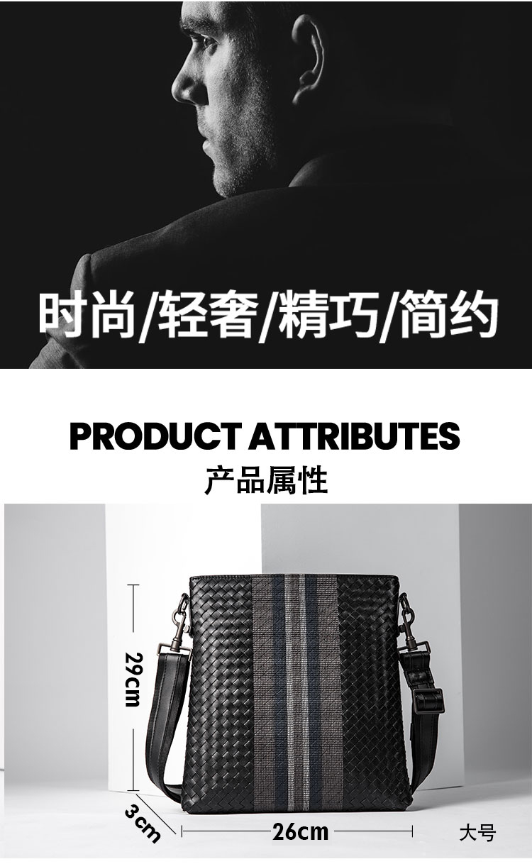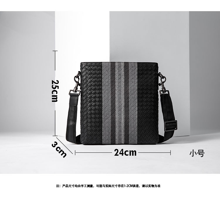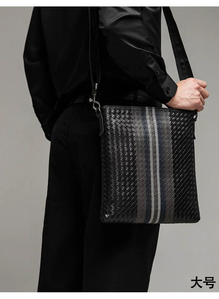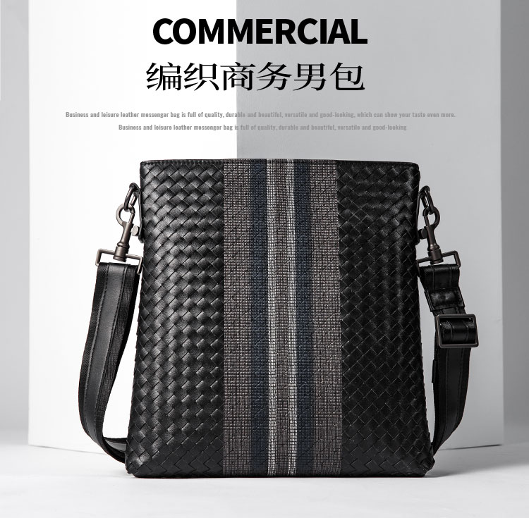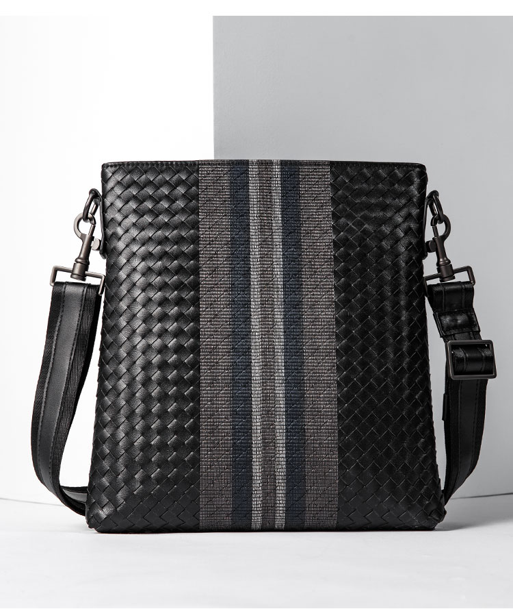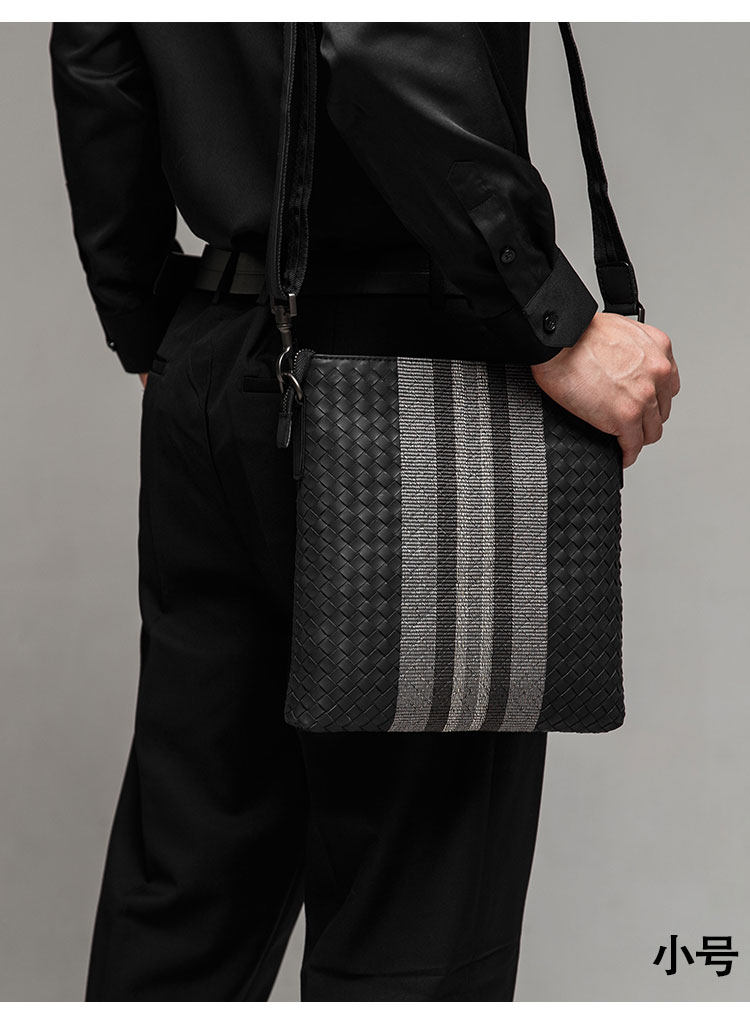 X&BV单肩包男真皮休闲男士斜挎包新潮竖款时尚牛皮编织男包小背包