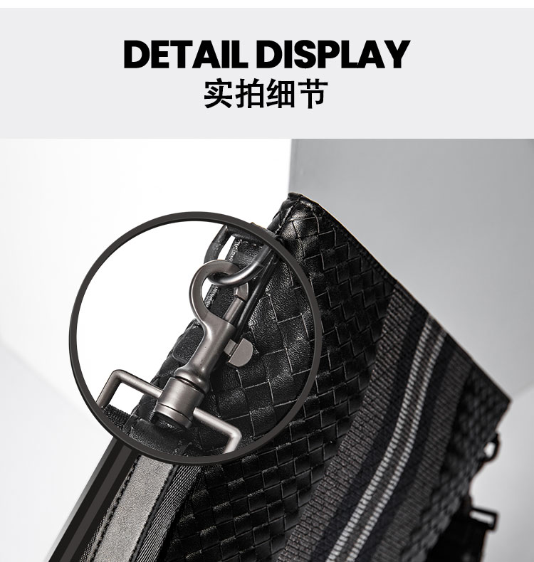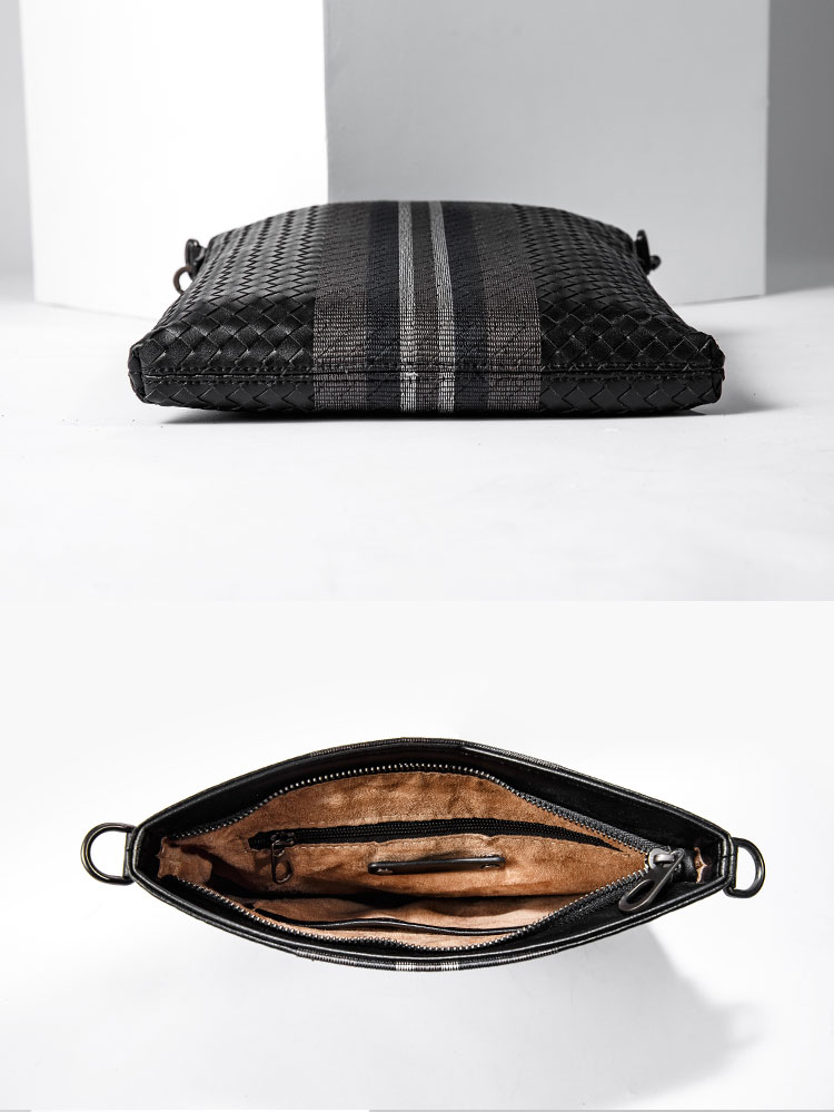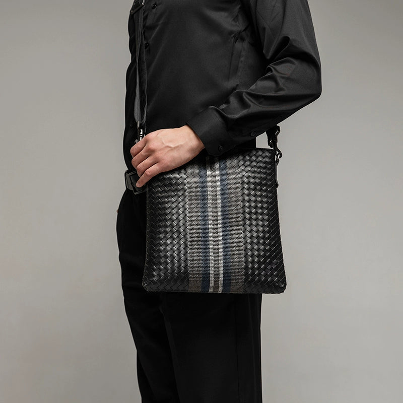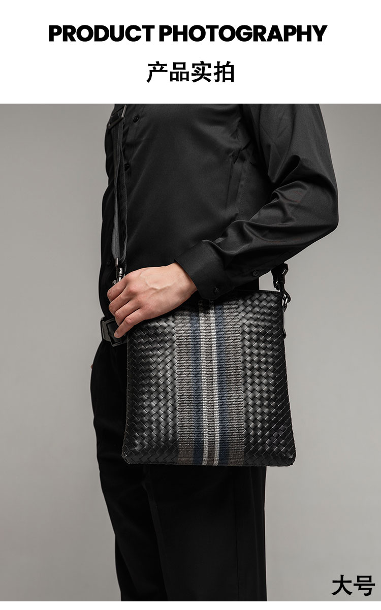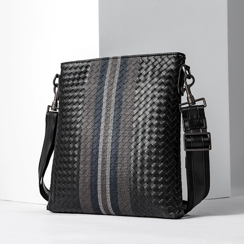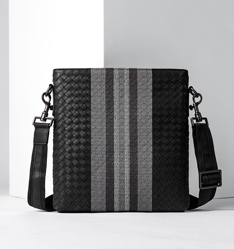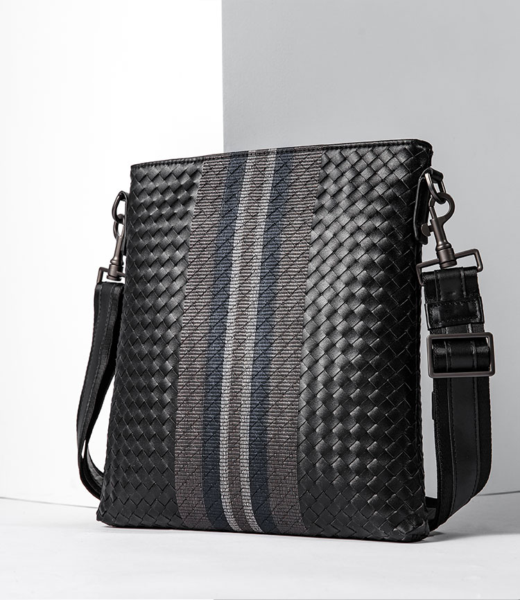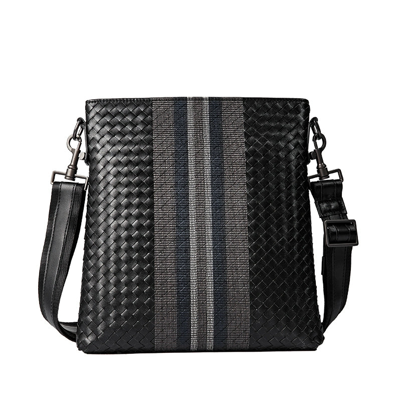 X&BV单肩包男真皮休闲男士斜挎包新潮竖款时尚牛皮编织男包小背包