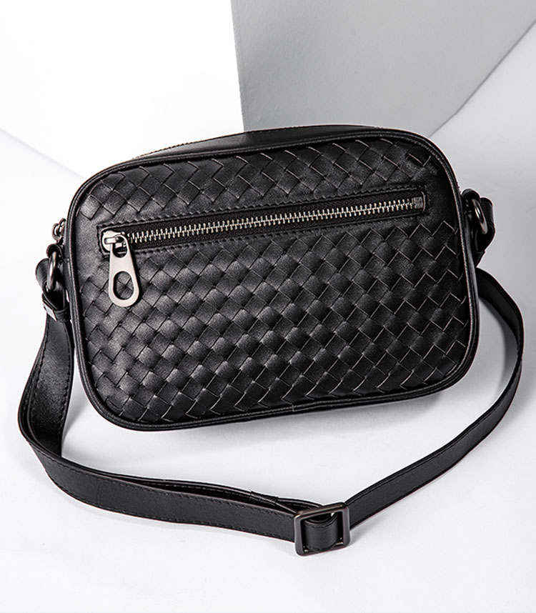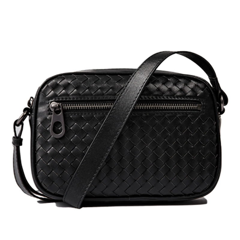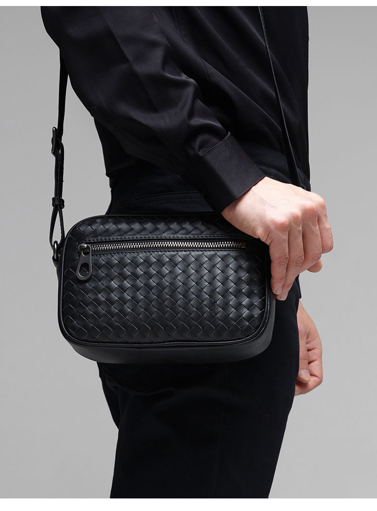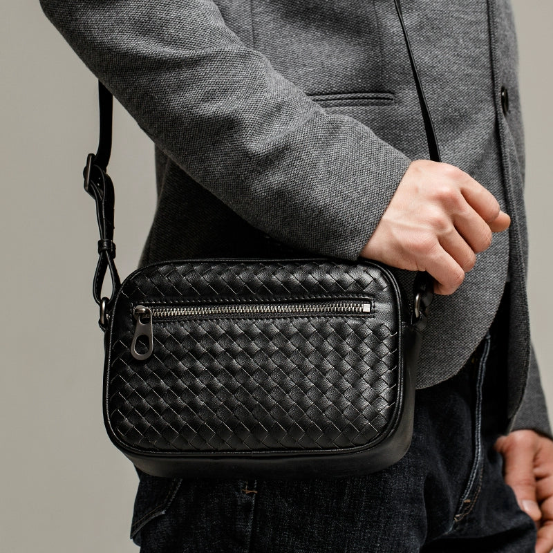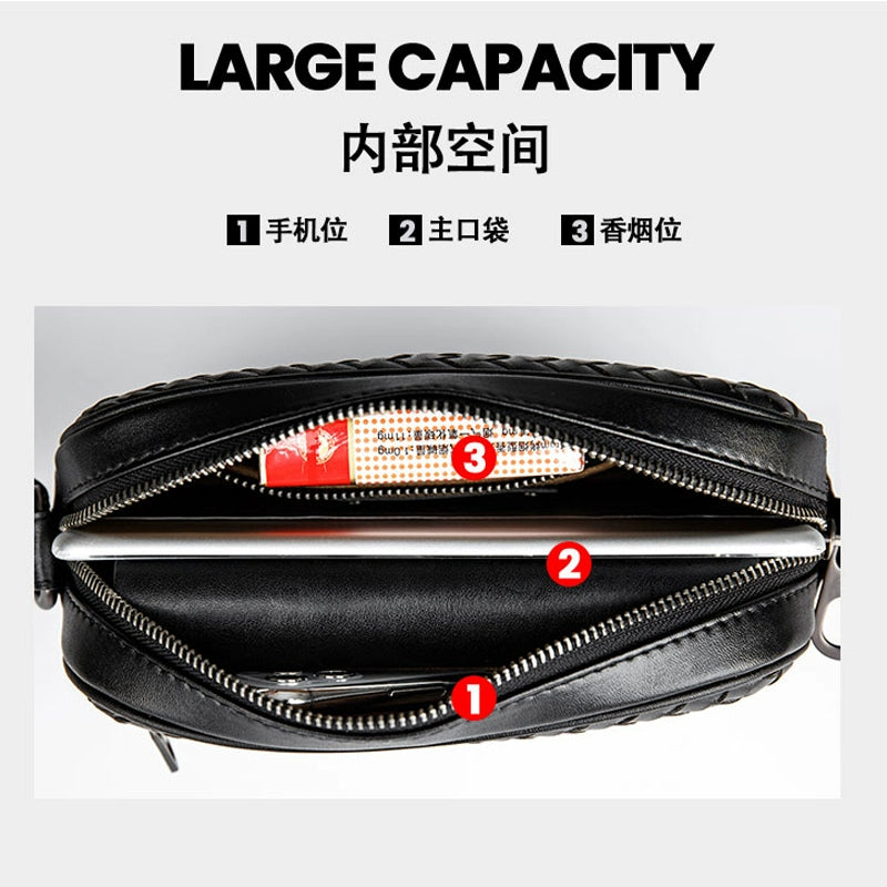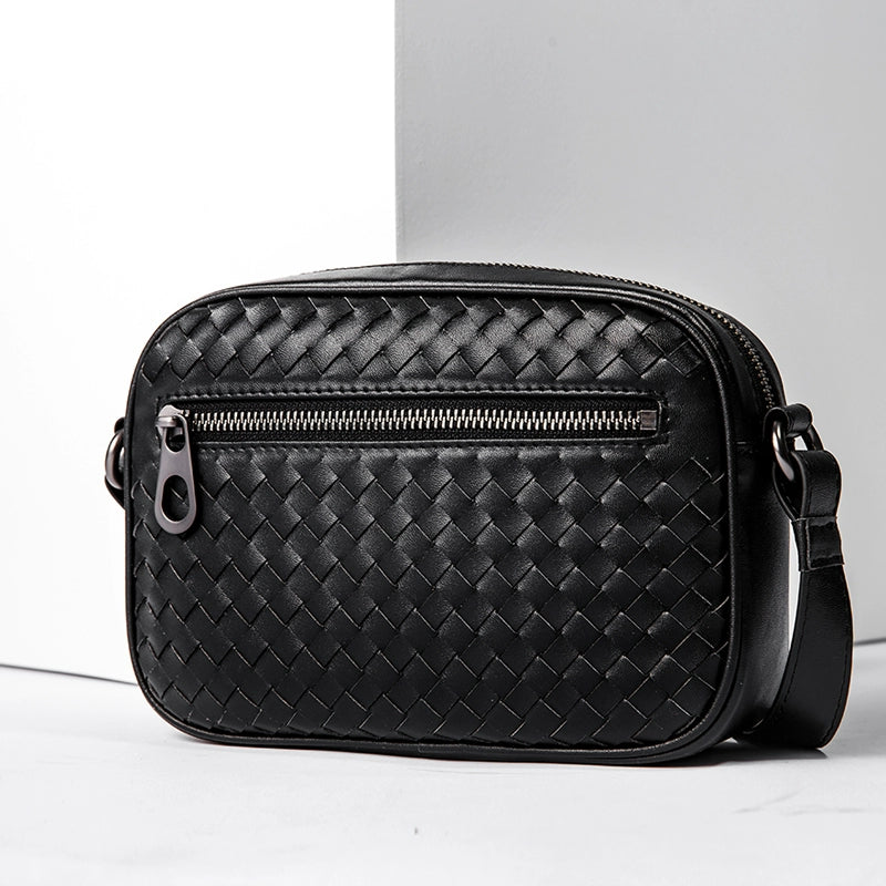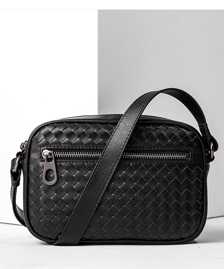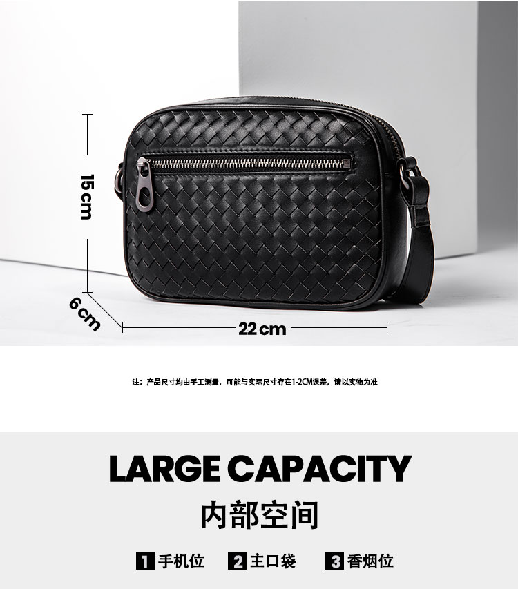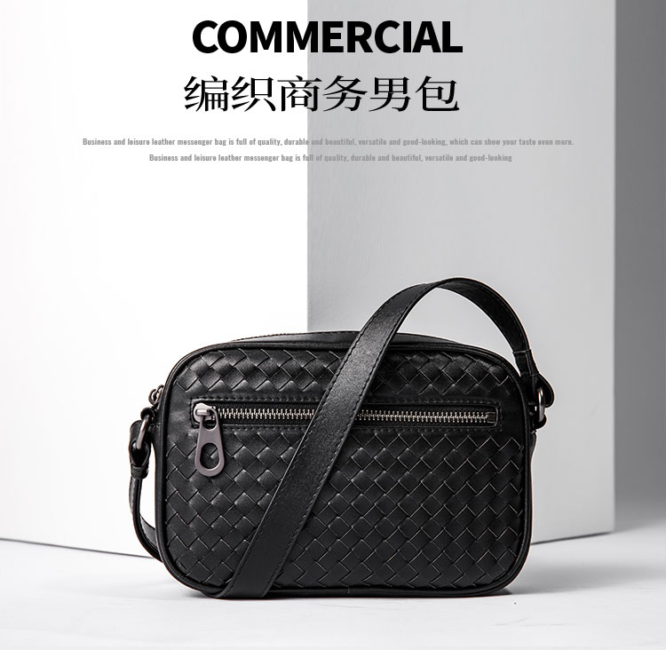 X&BV单肩包男真皮休闲编织男包横款牛皮时尚小背包男士斜挎包韩版