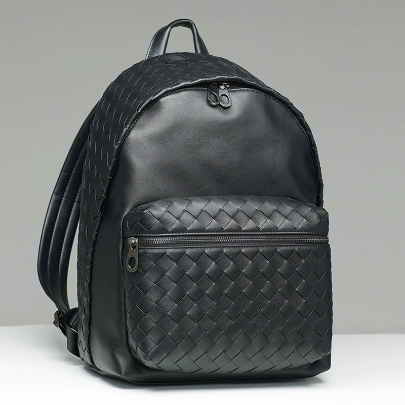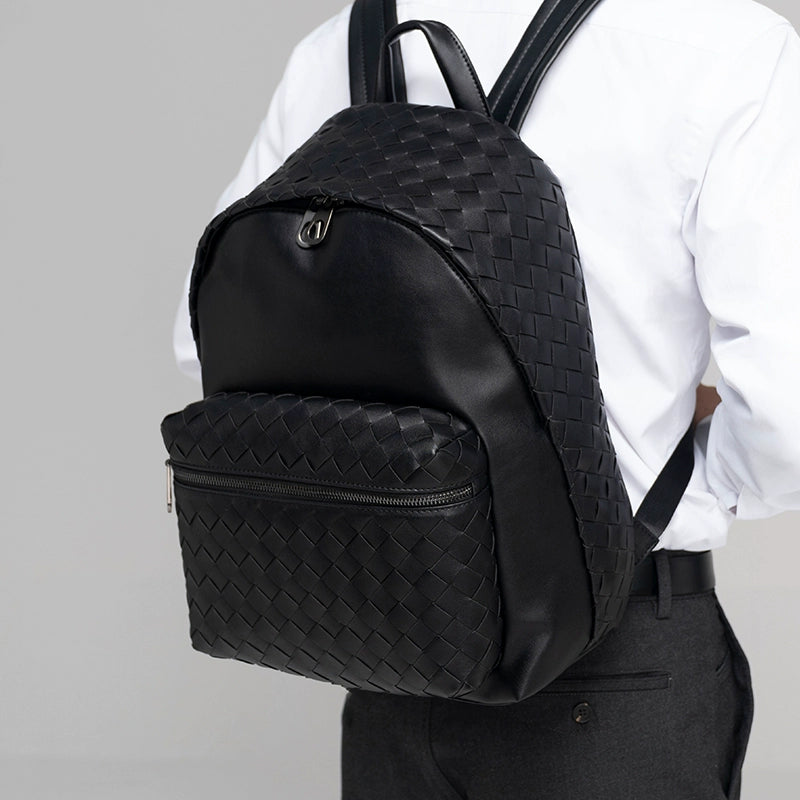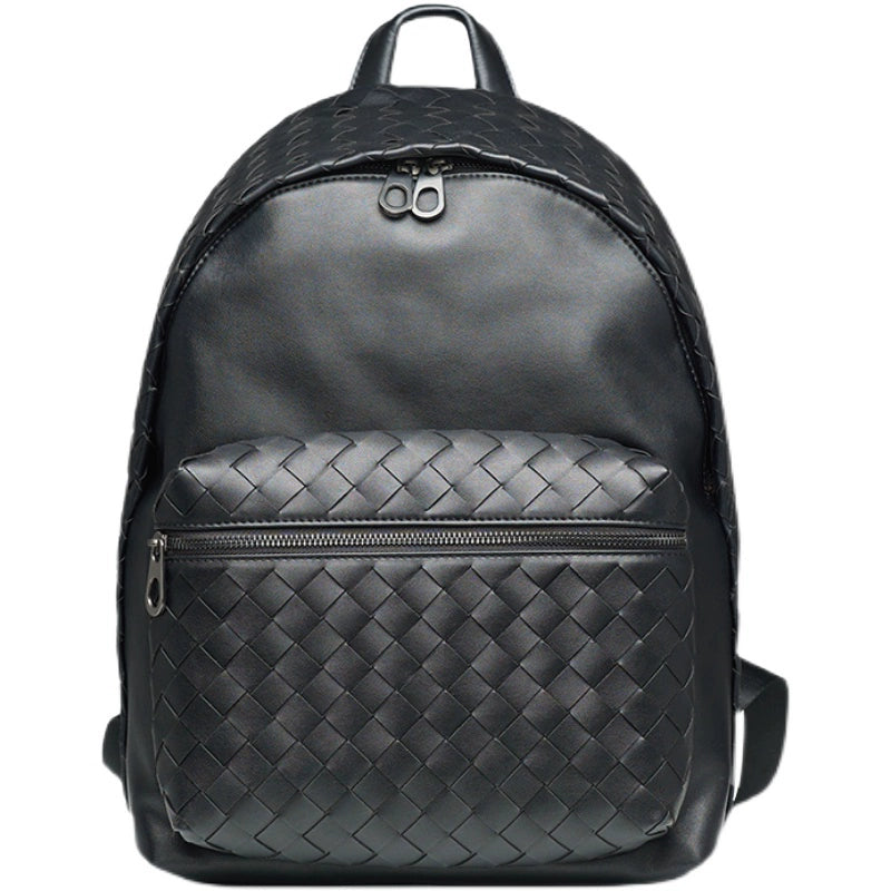x&bv双肩包男真皮商务休闲简约编织电脑书包旅行包大容量男士背包