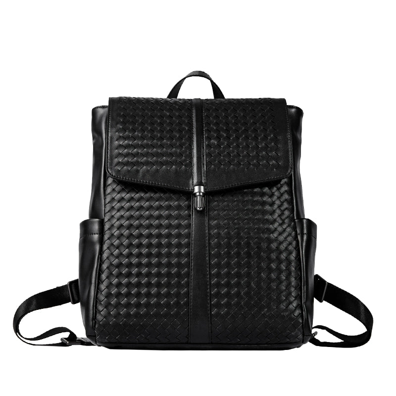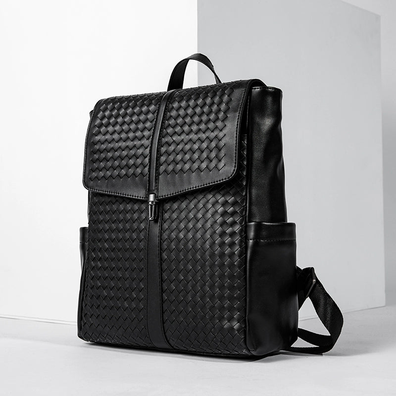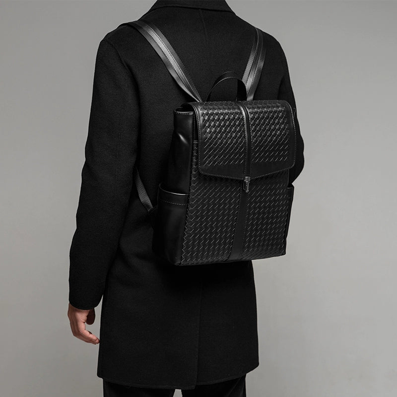 X&BV双肩包男真皮商务电脑包编织男包出差旅行背包时尚简约书包男