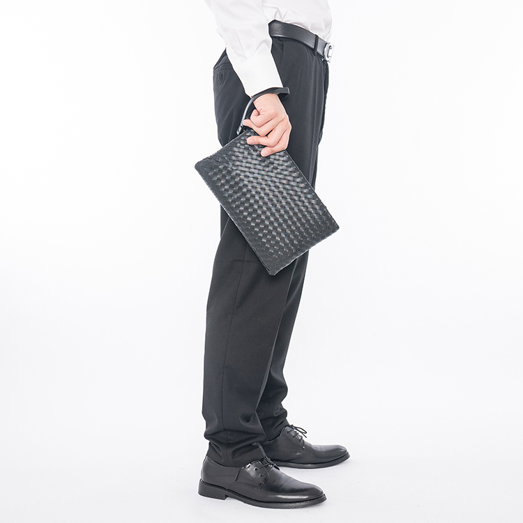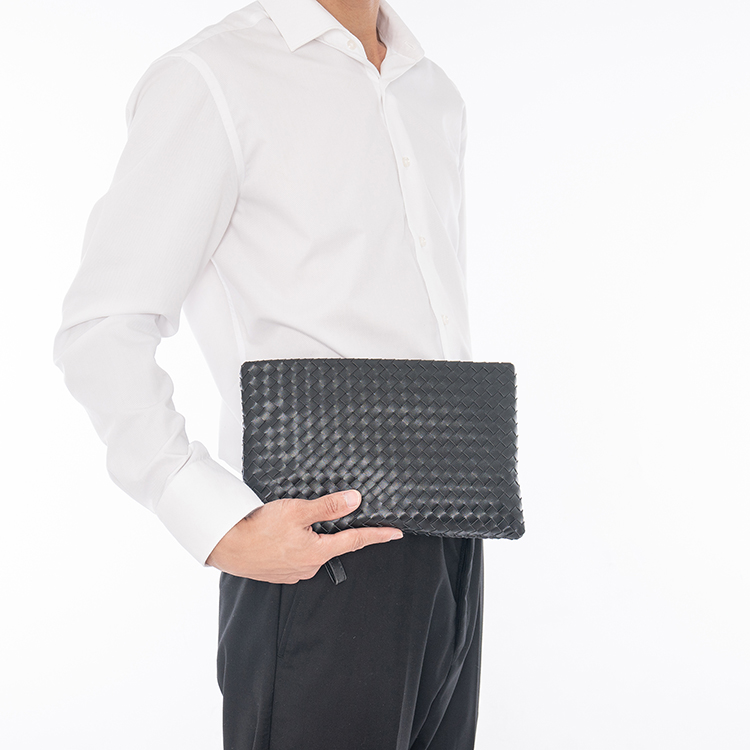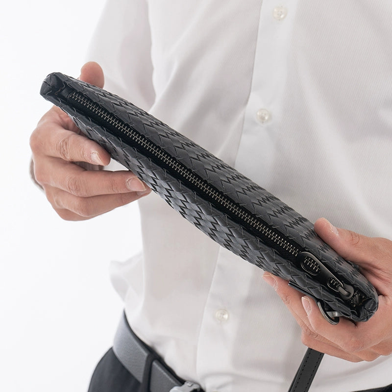 X&BV手包男真皮男士手拿包大容量商务休闲编织手抓包夹包信封包男