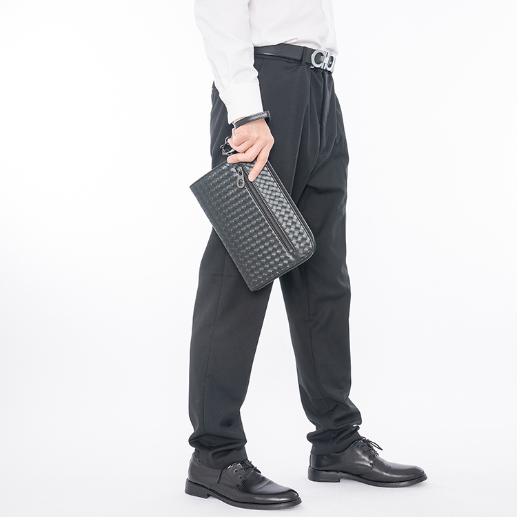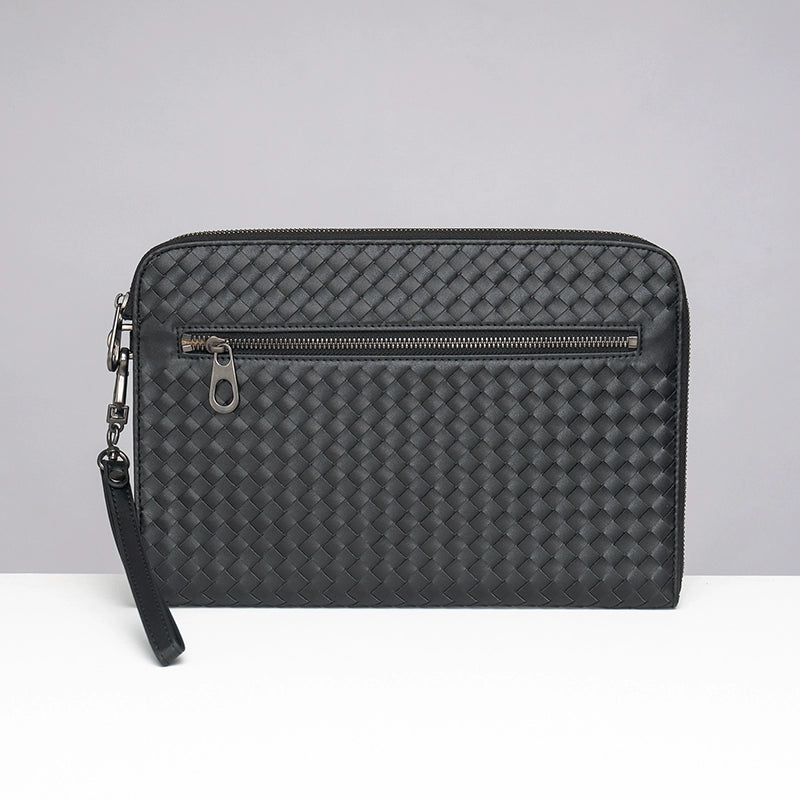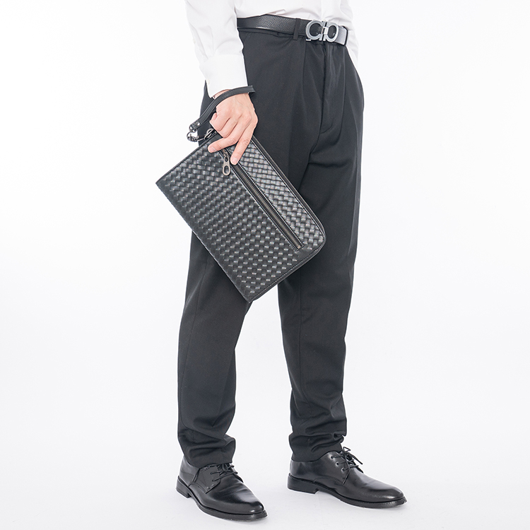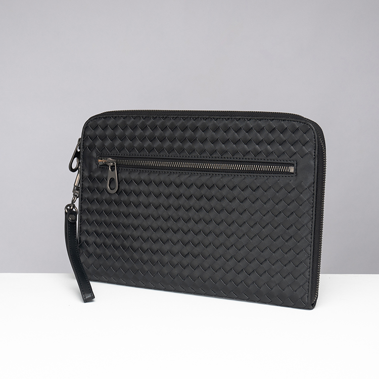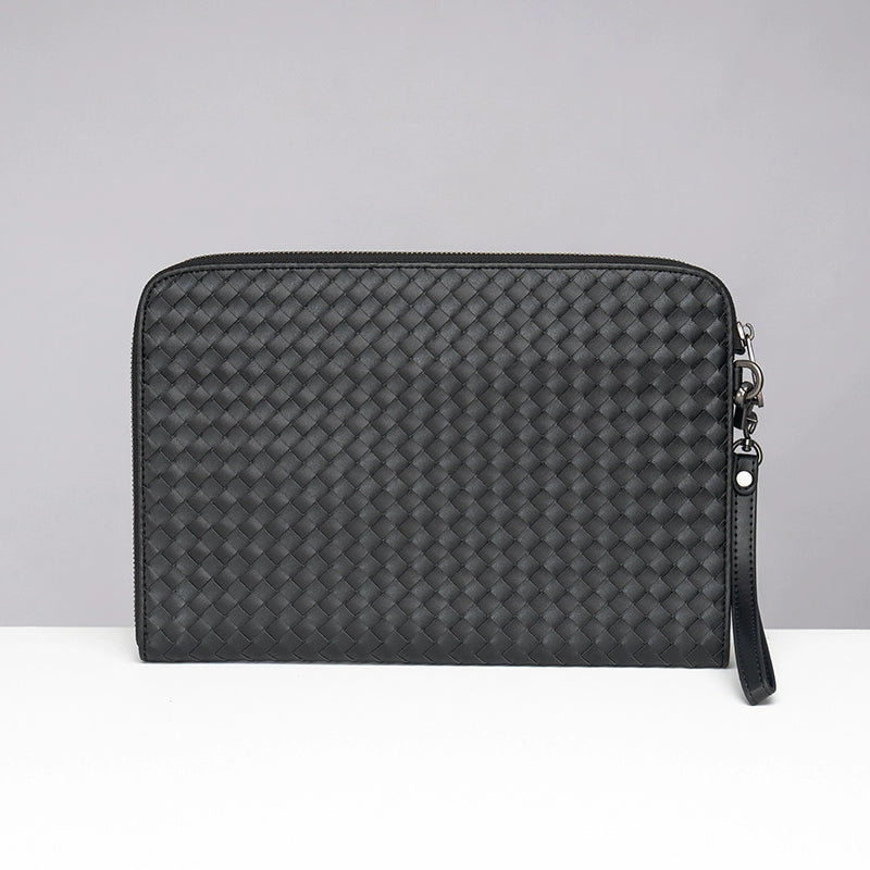 X&BV手拿包男真皮休闲大容量编织平板ipad包文件信封手包男商务潮