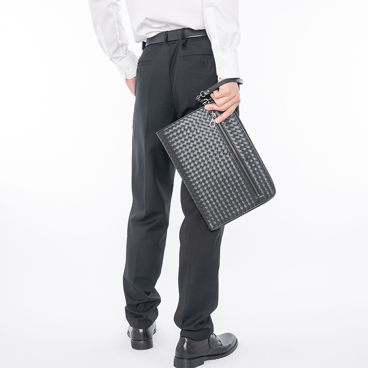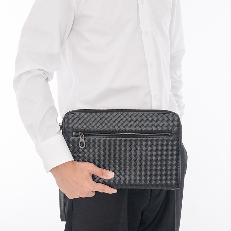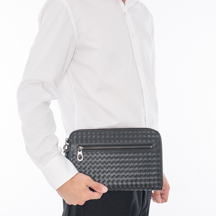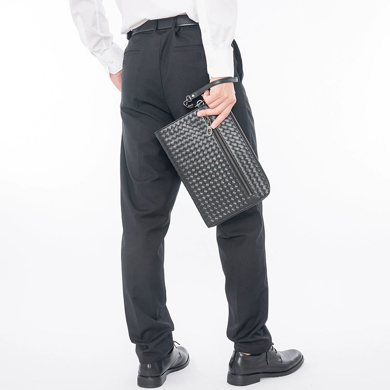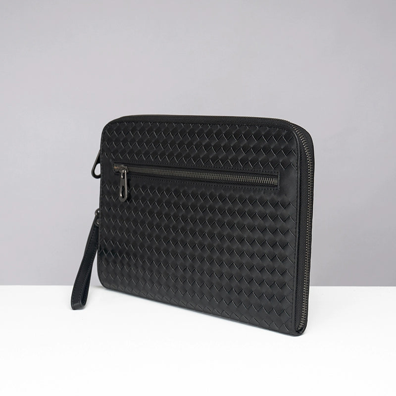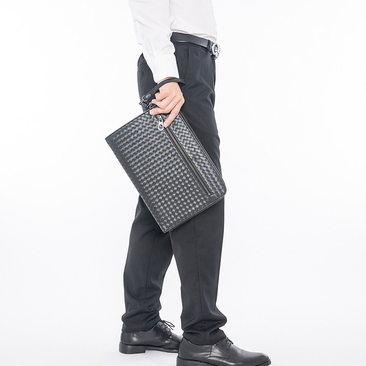 X&BV手拿包男真皮休闲大容量编织平板ipad包文件信封手包男商务潮