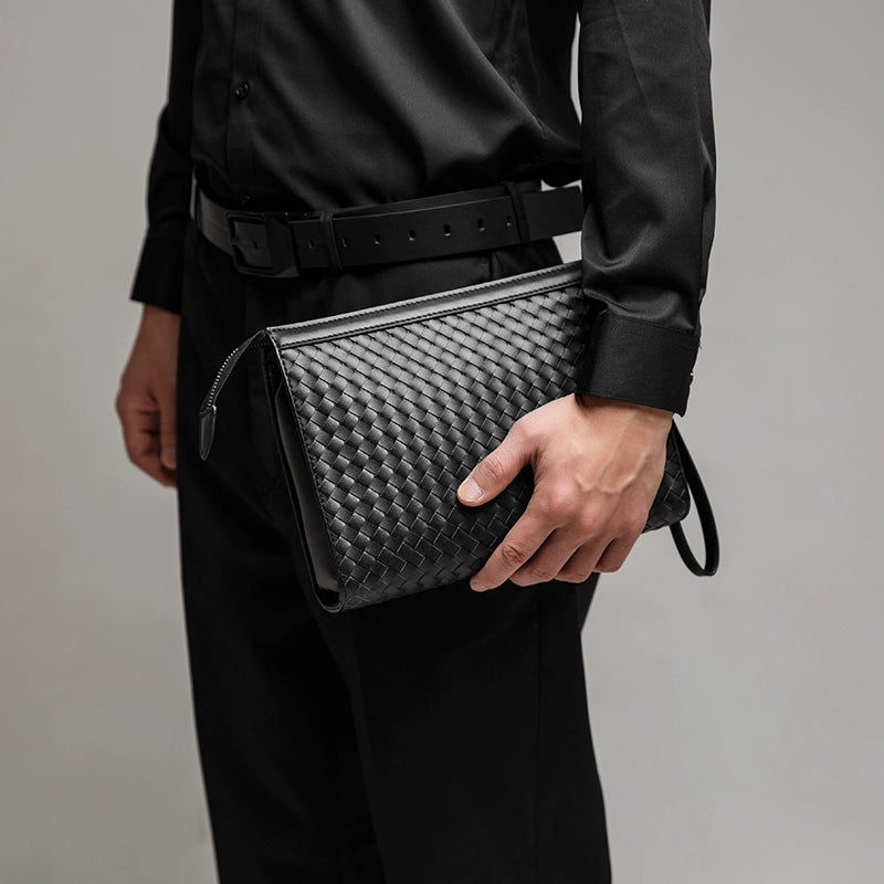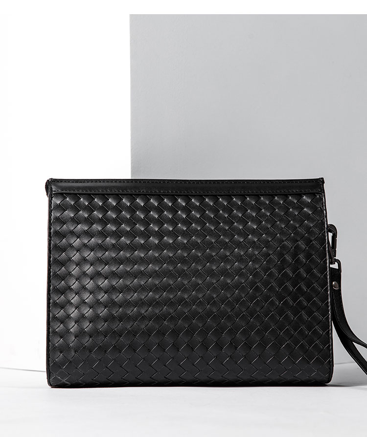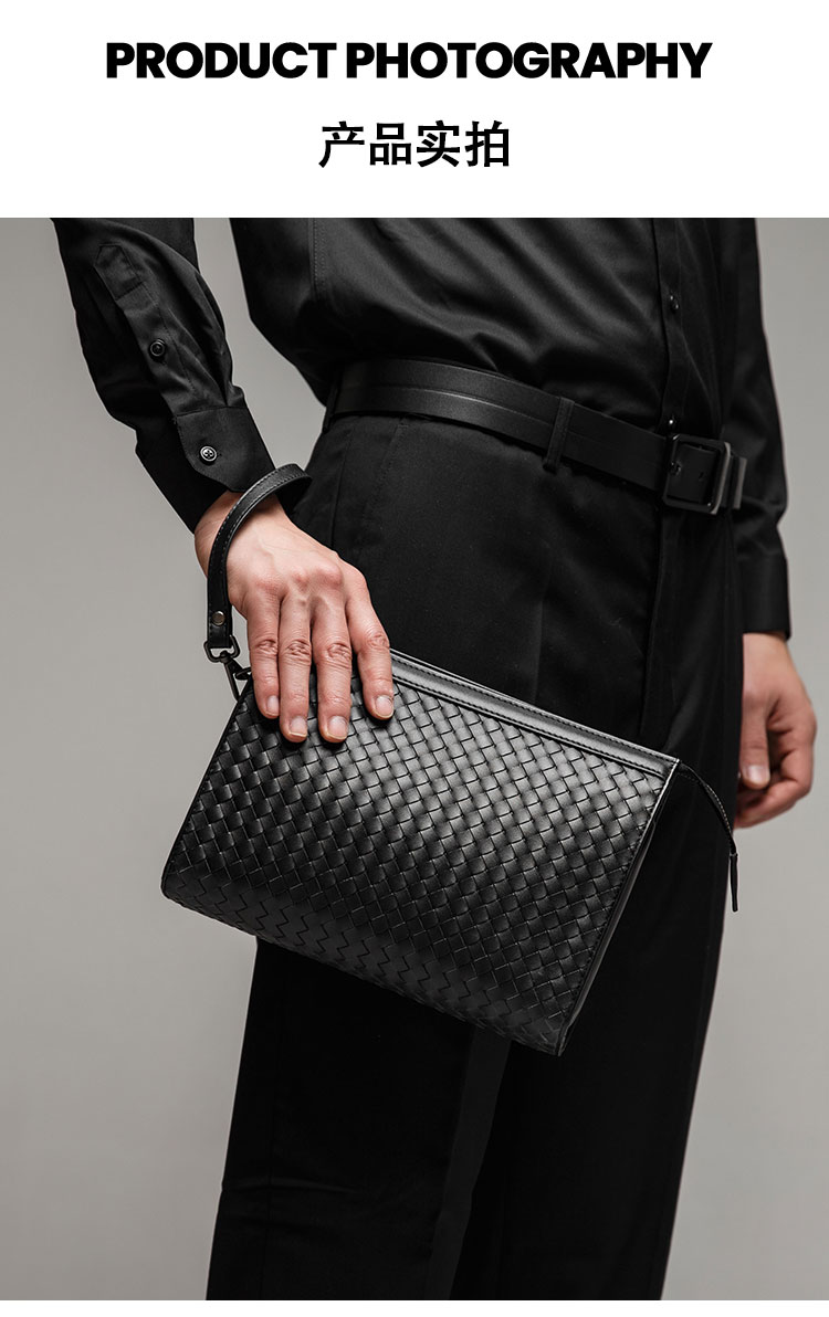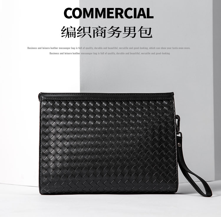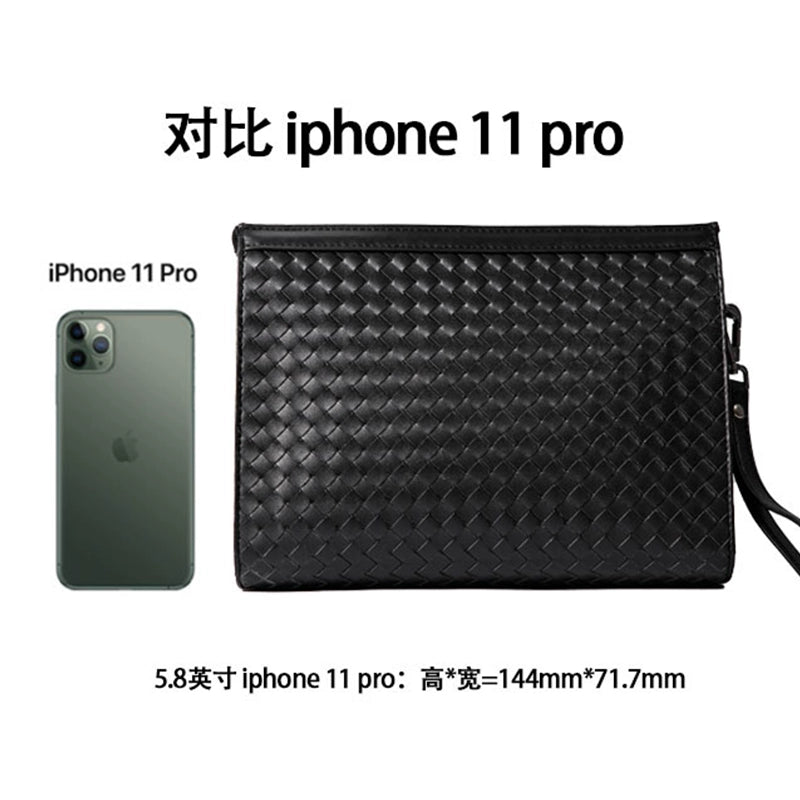 X&BV手拿包男真皮大容量商务休闲牛皮编织信封男包洗漱包男士手包