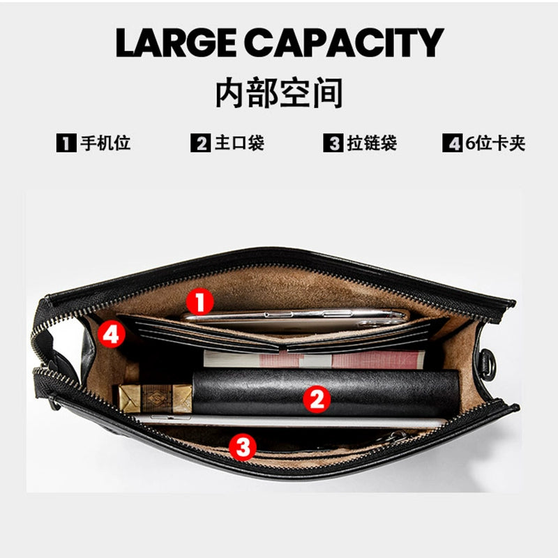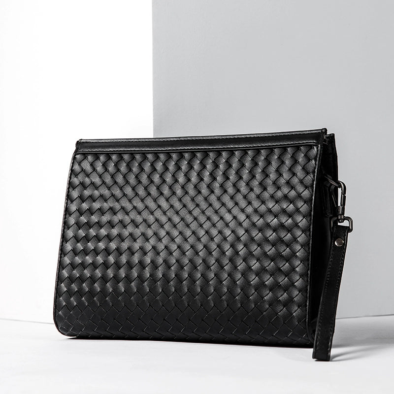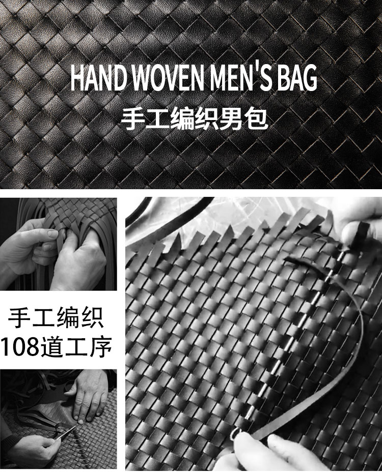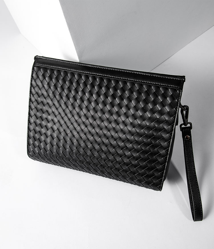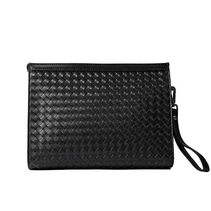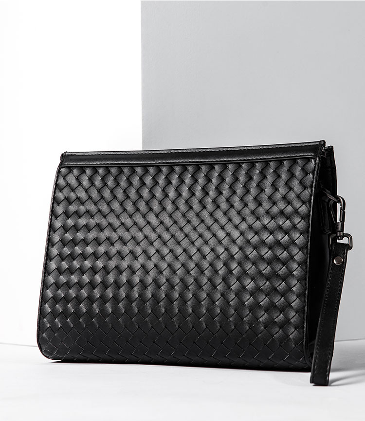 X&BV手拿包男真皮大容量商务休闲牛皮编织信封男包洗漱包男士手包