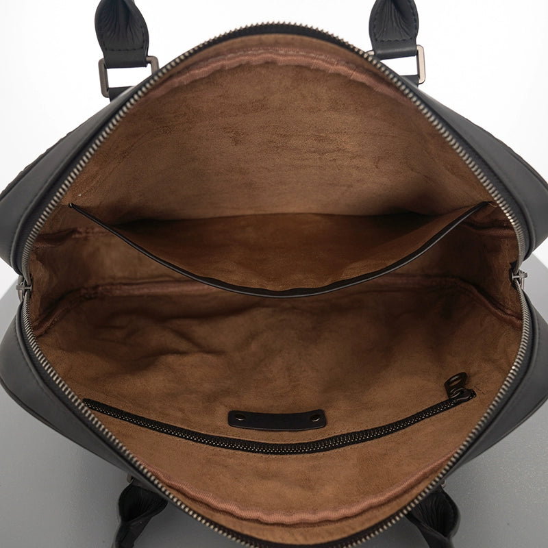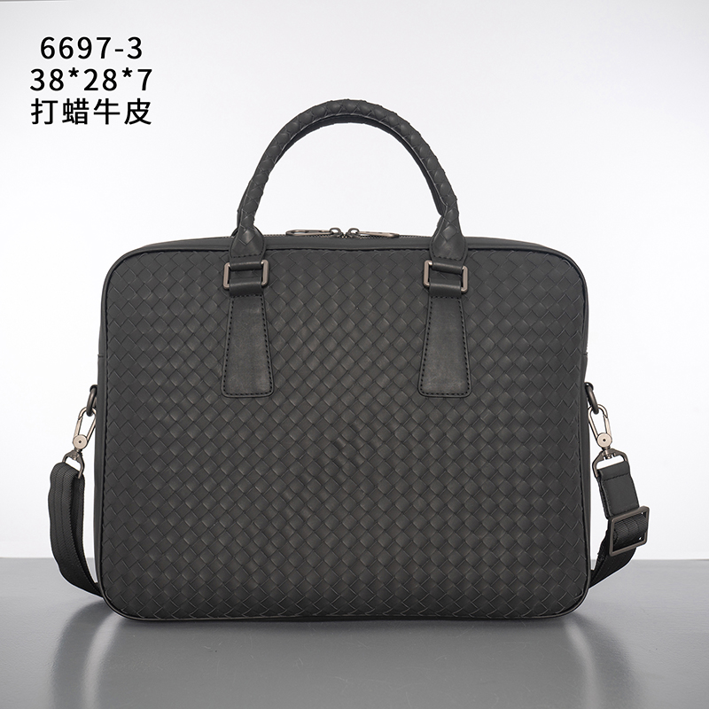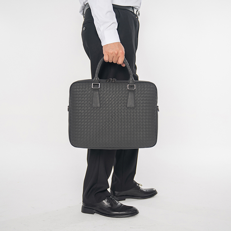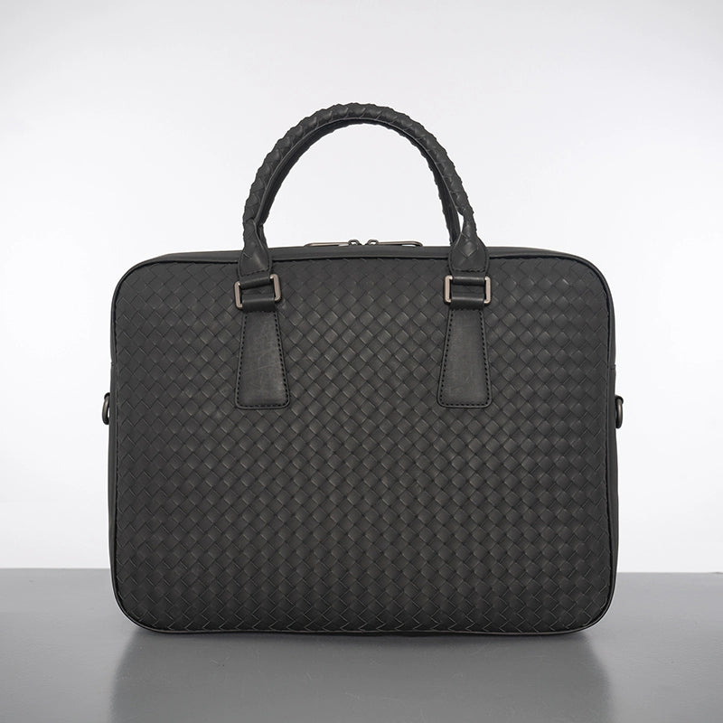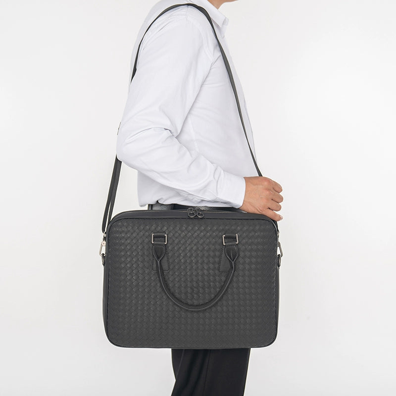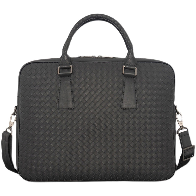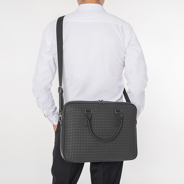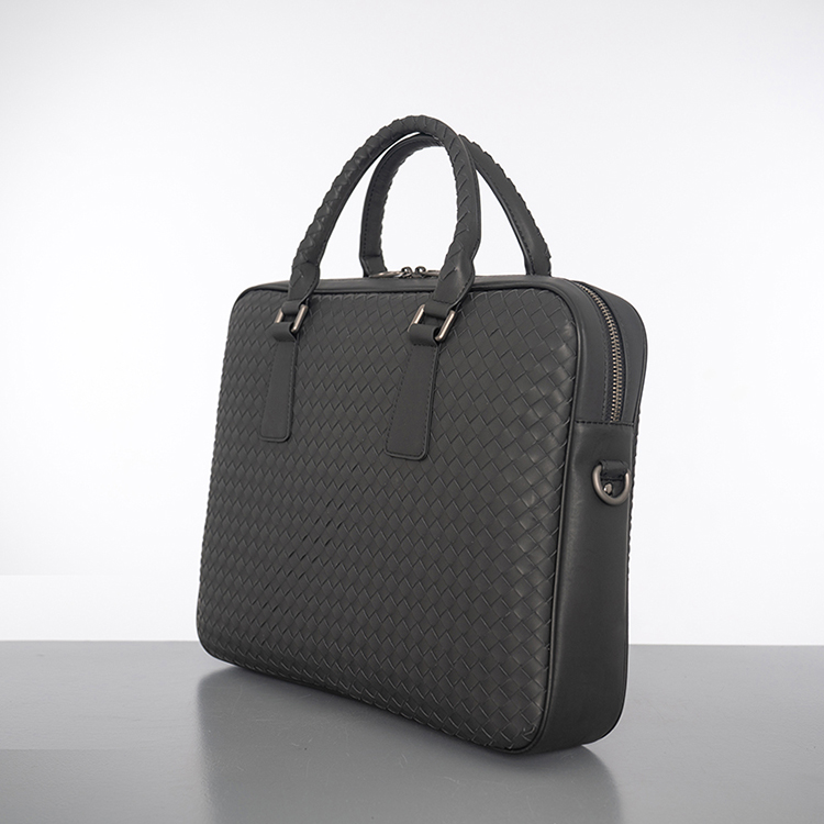 X&BV手提包男商务休闲公文包真皮编织青年电脑包时尚单肩斜挎包男