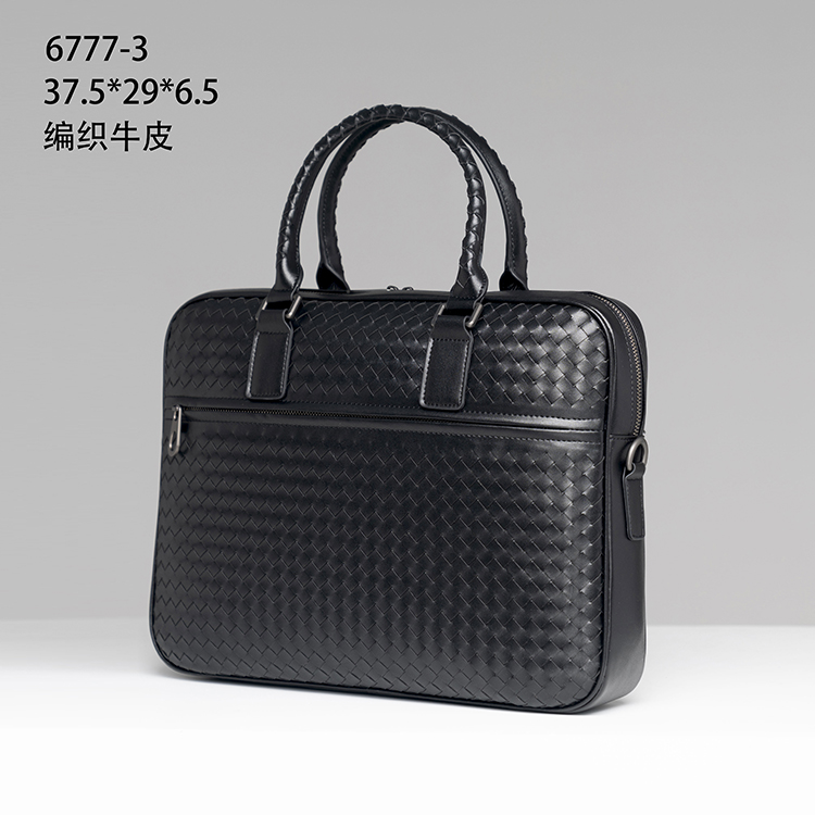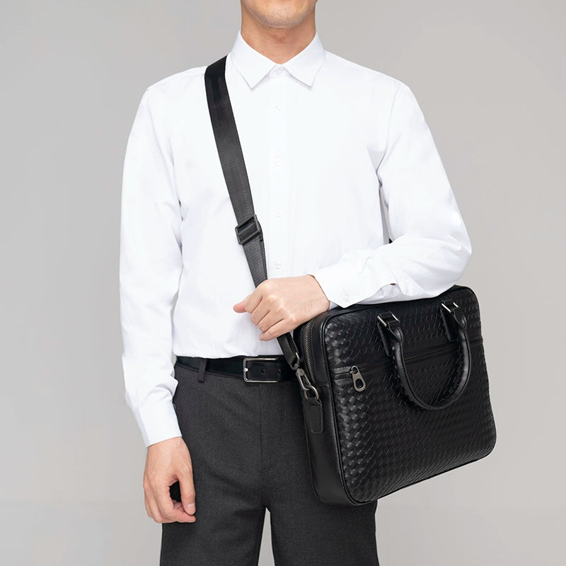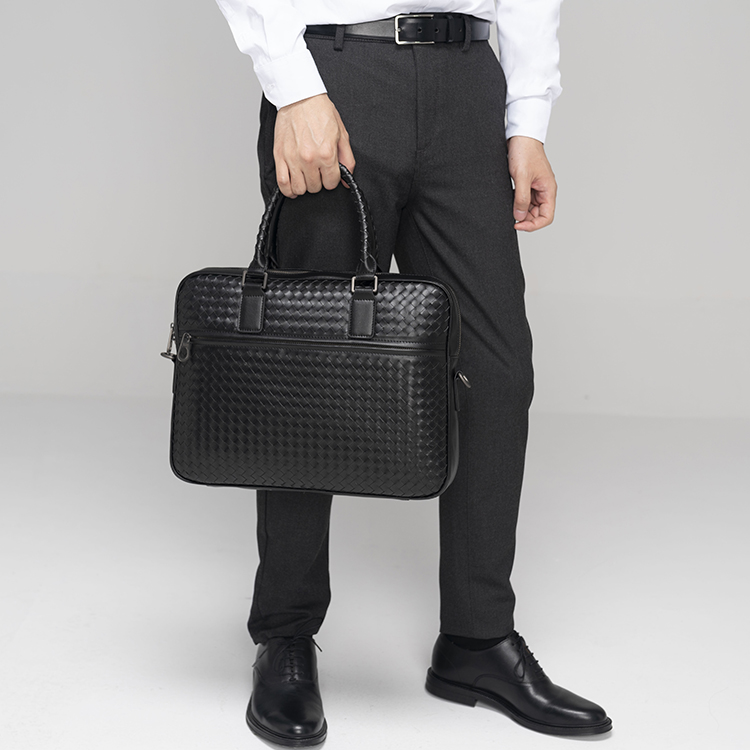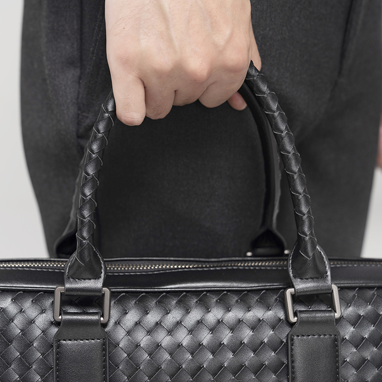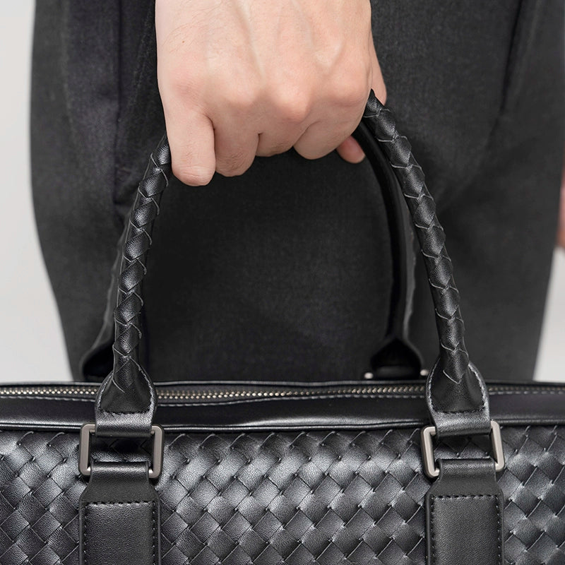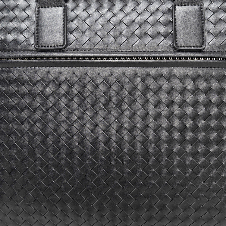 X&BV手提包男商务电脑包大容量编织男包单肩挎包包男士公文包真皮