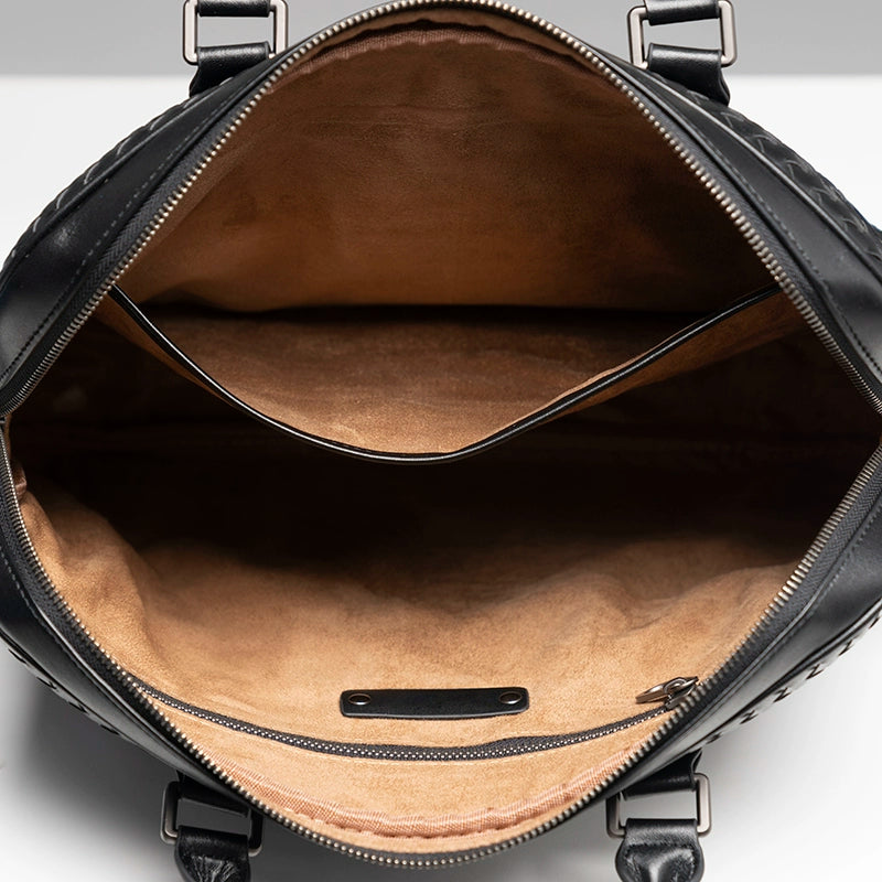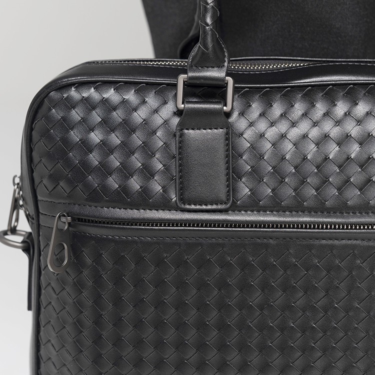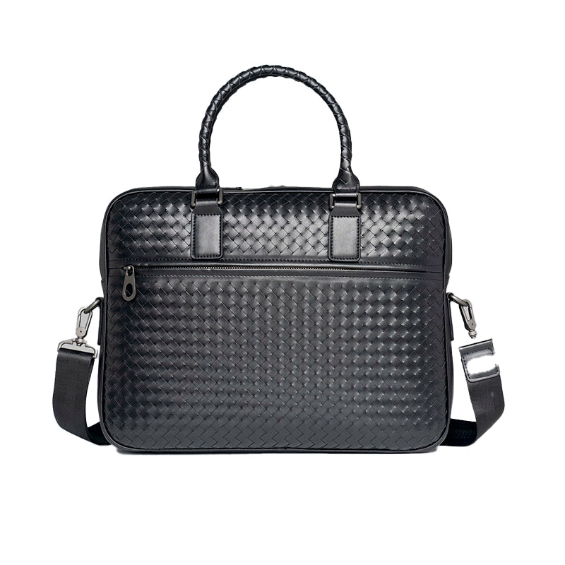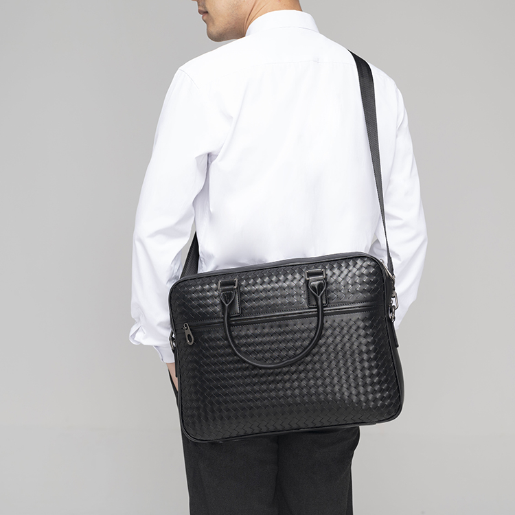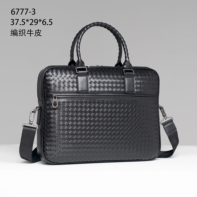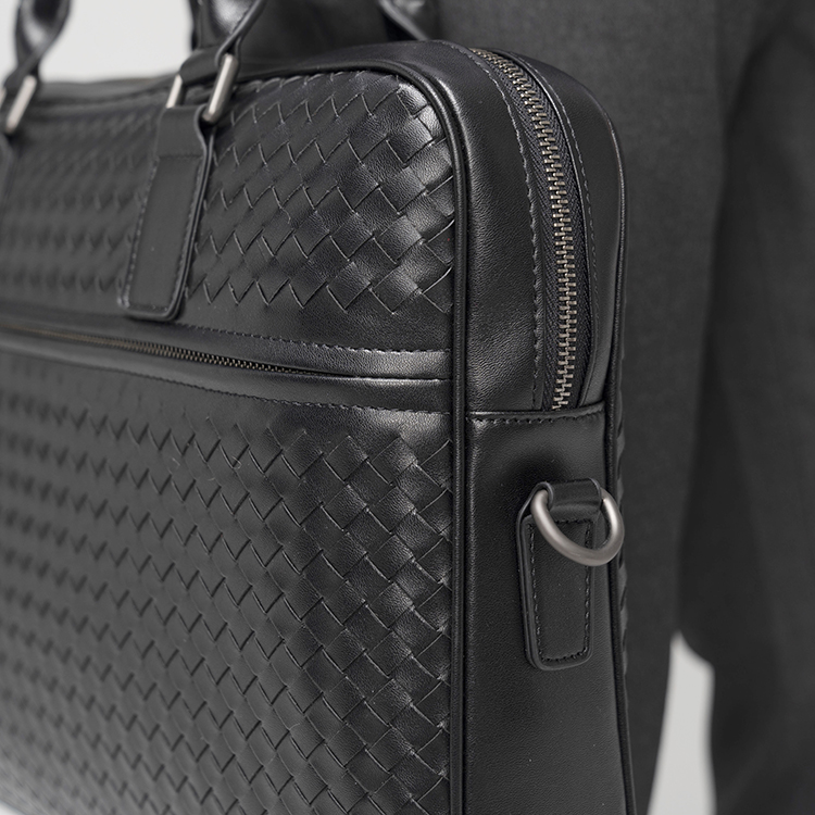 X&BV手提包男商务电脑包大容量编织男包单肩挎包包男士公文包真皮