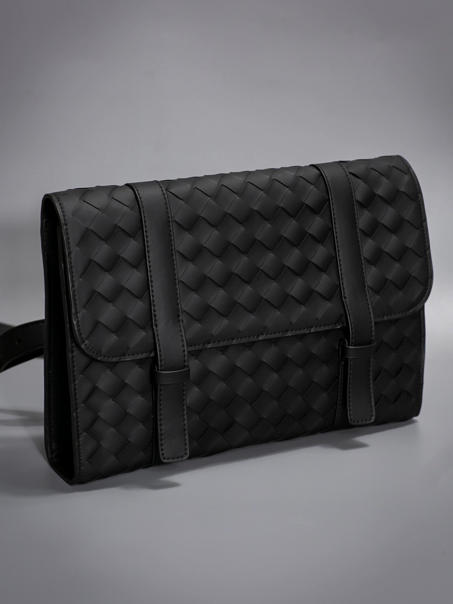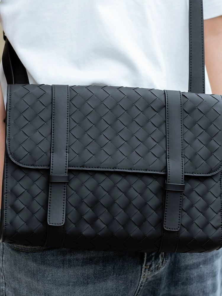 X&BV新款斜挎包男真皮编织商务休闲男士单肩包翻盖牛皮高级时尚牛